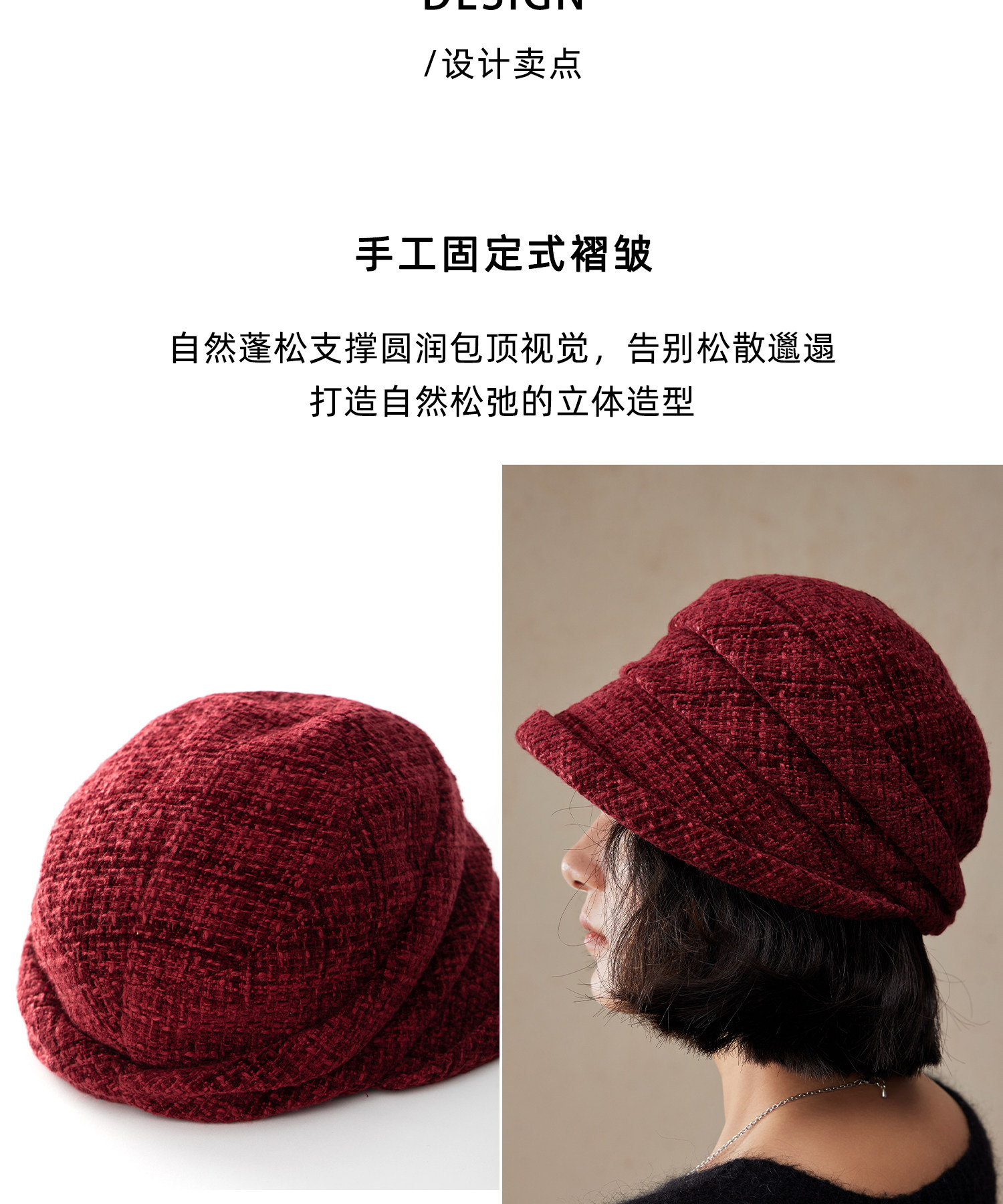 【南国の冬】厚手のベレー帽、プリーツ加工のレトロでおしゃれな帽子、秋冬の万能アイテム、女性向け新作、小顔効果あり
