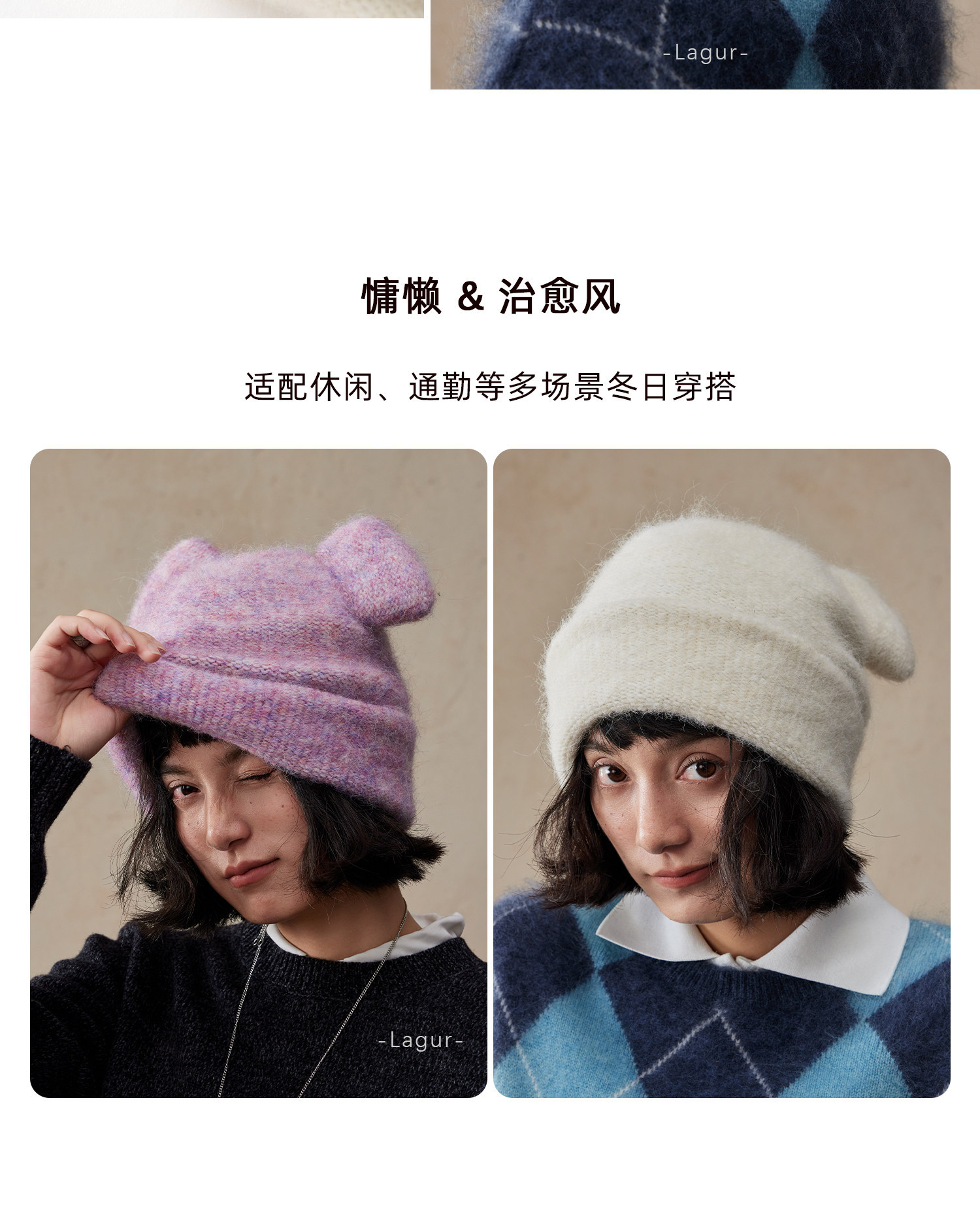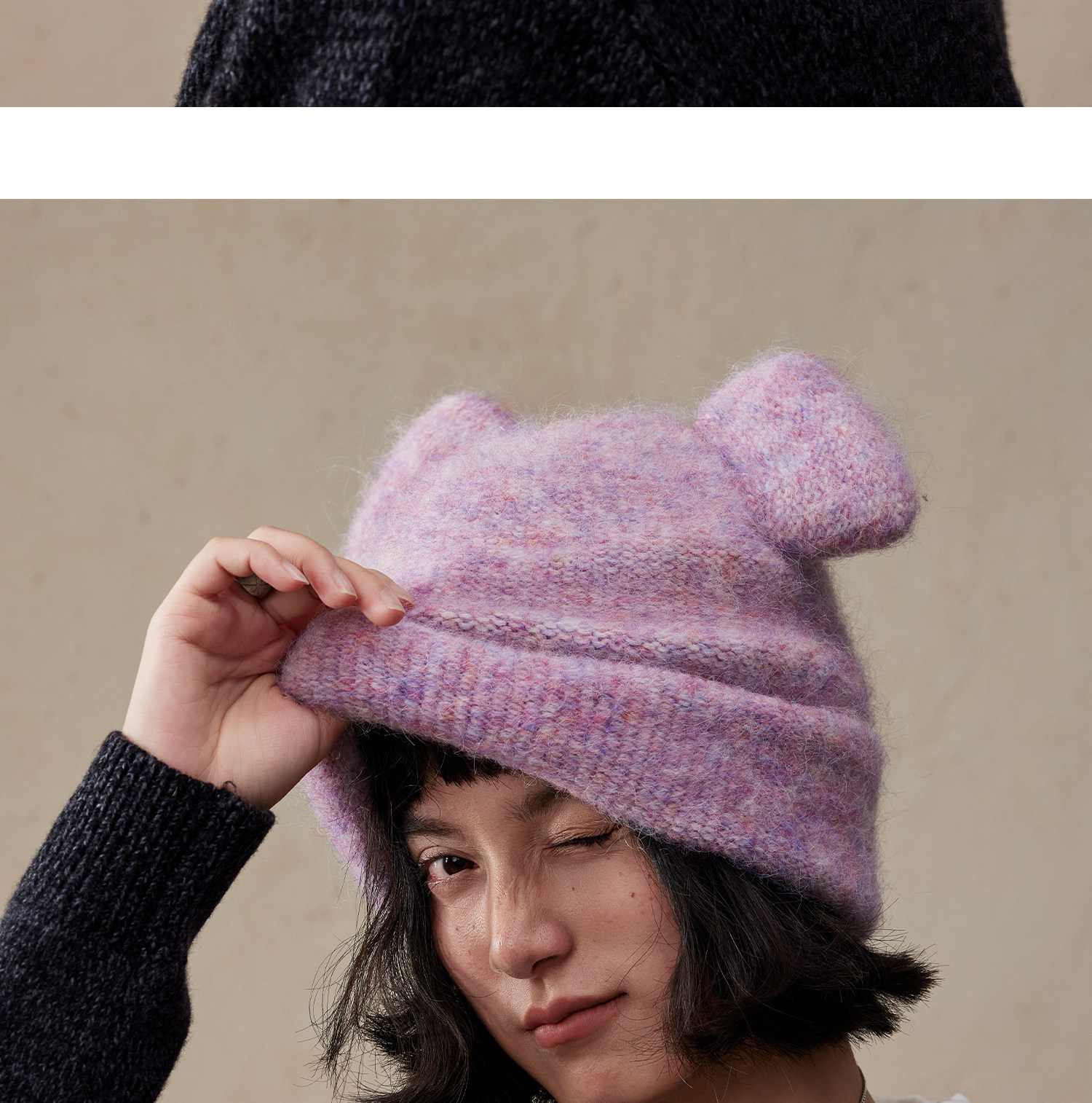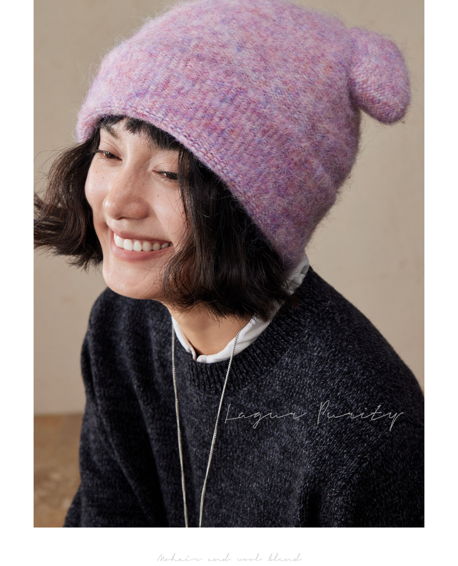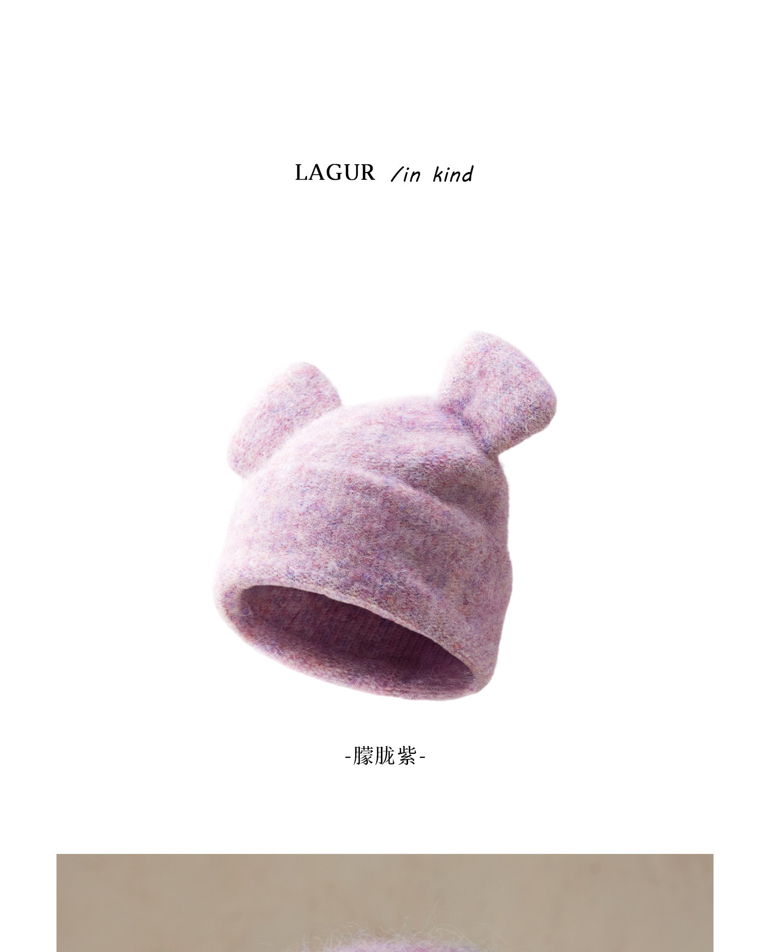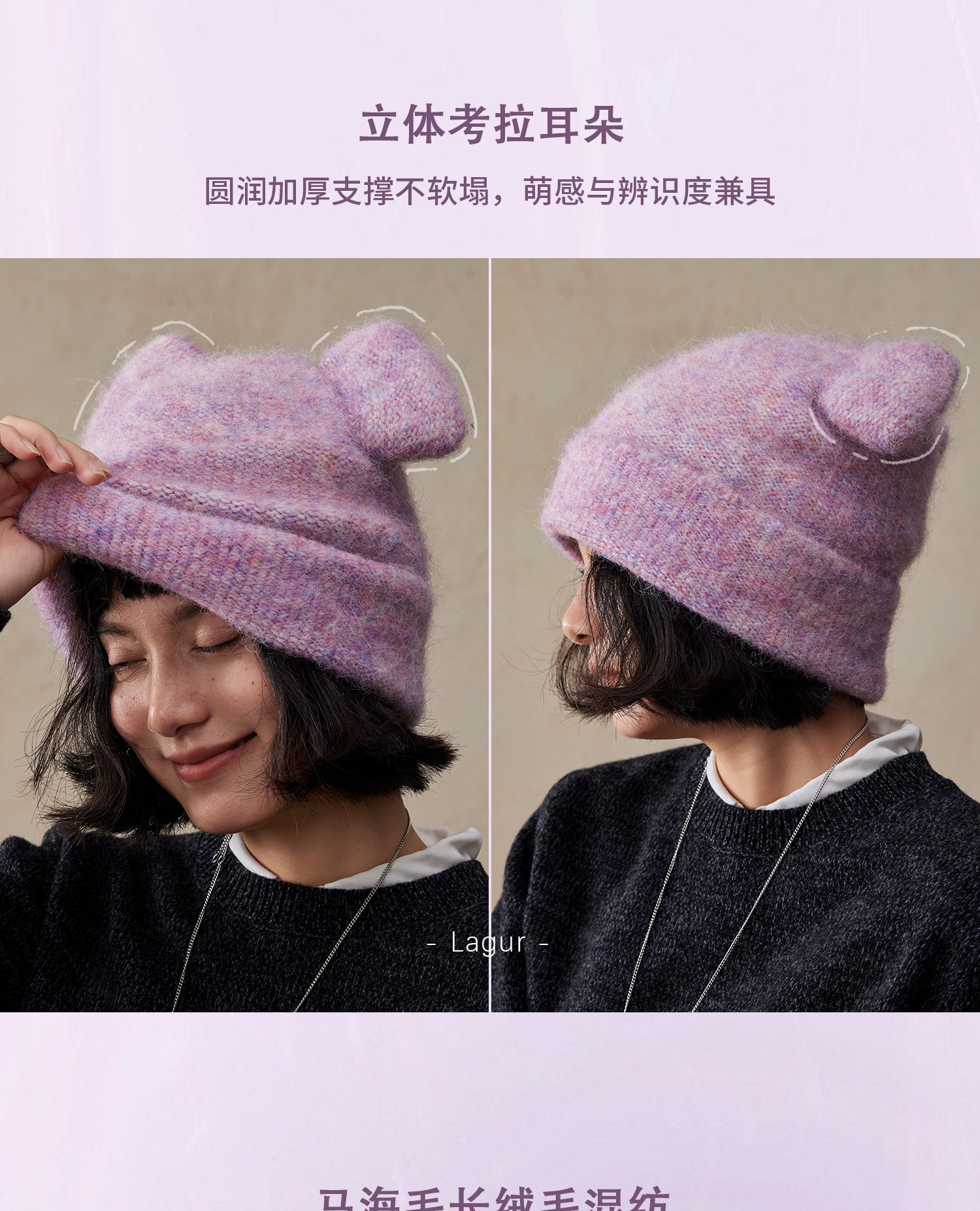 小考拉~慵懒&治愈紫色马海毛可爱减龄耳朵针织毛线帽保暖加厚帽子