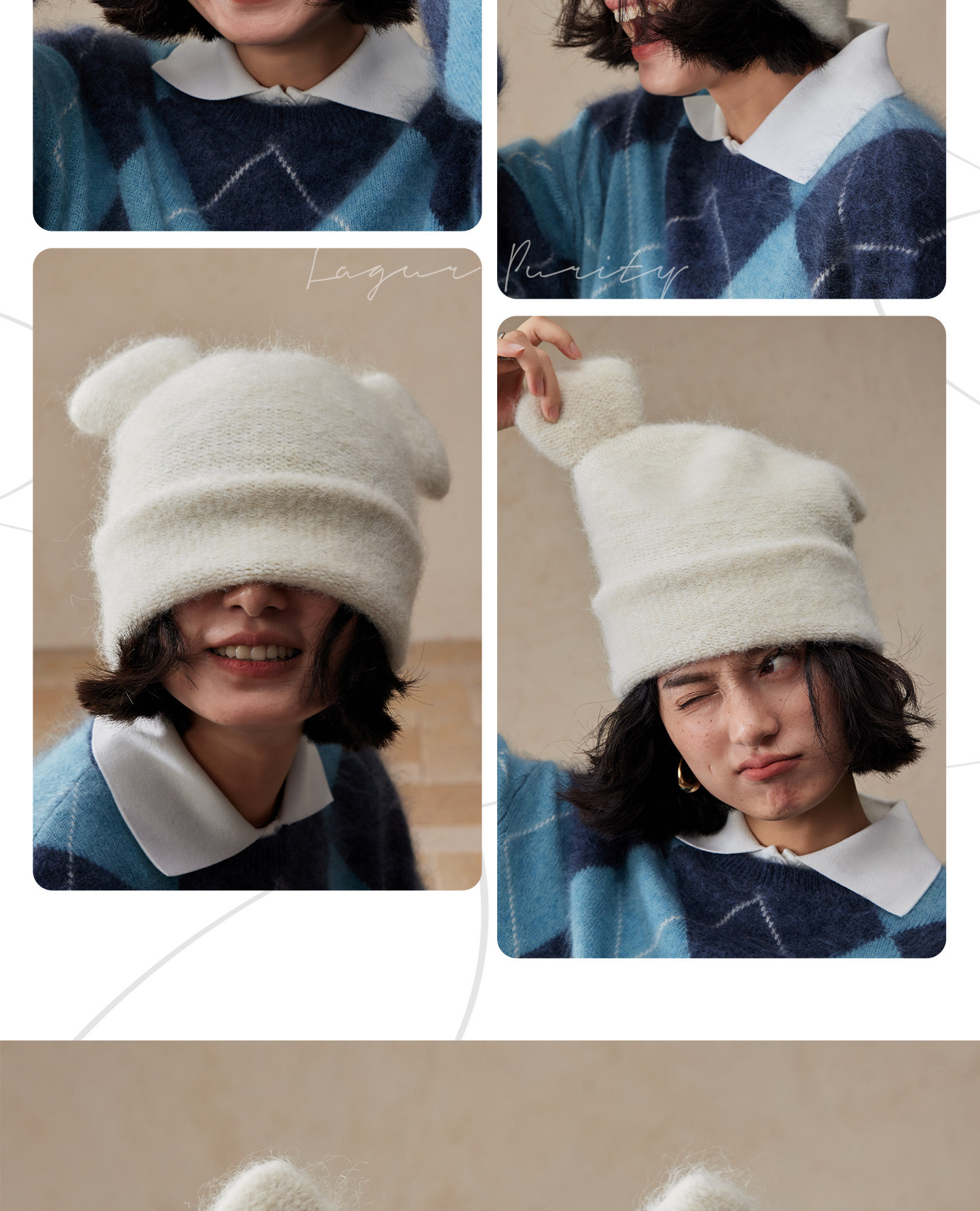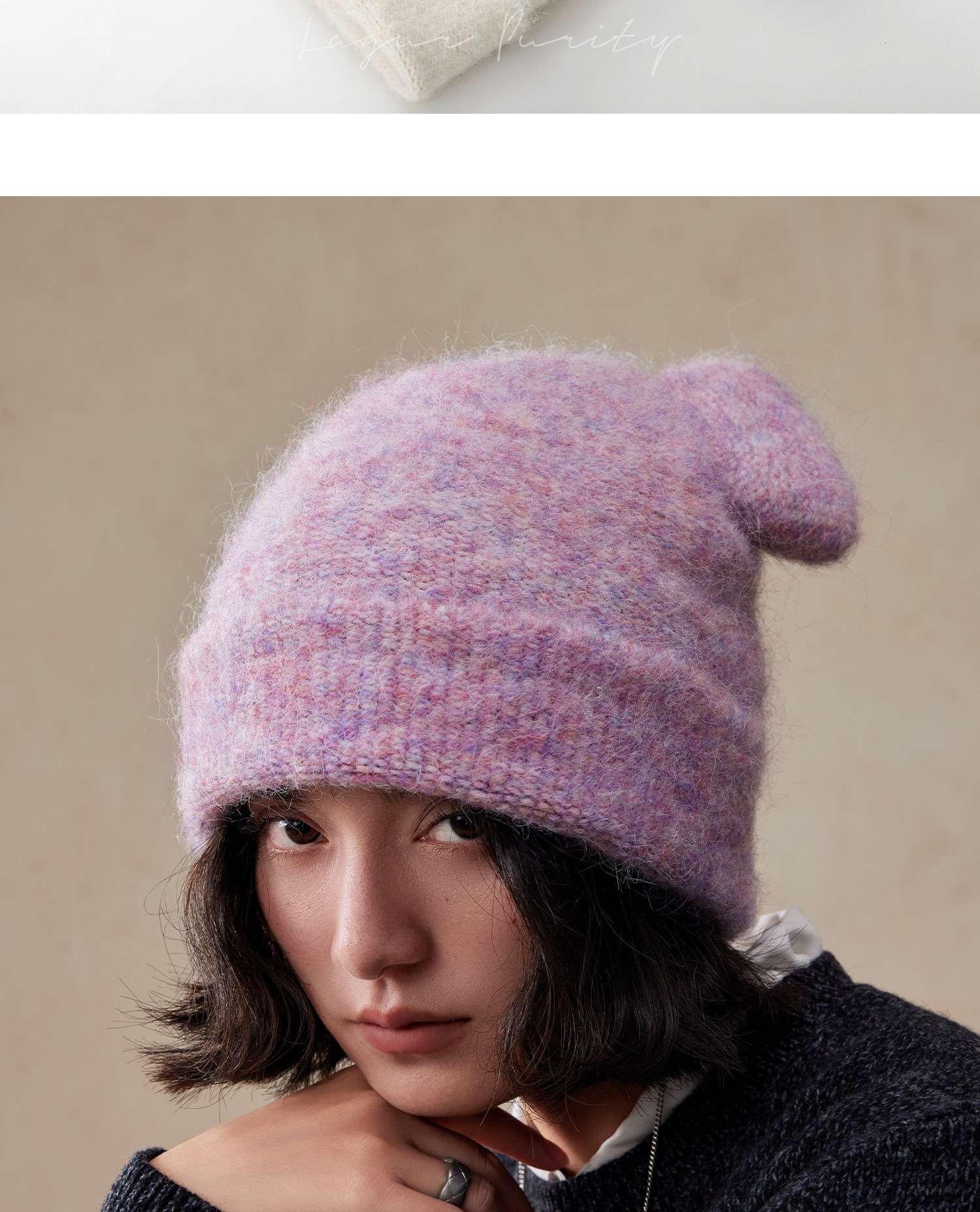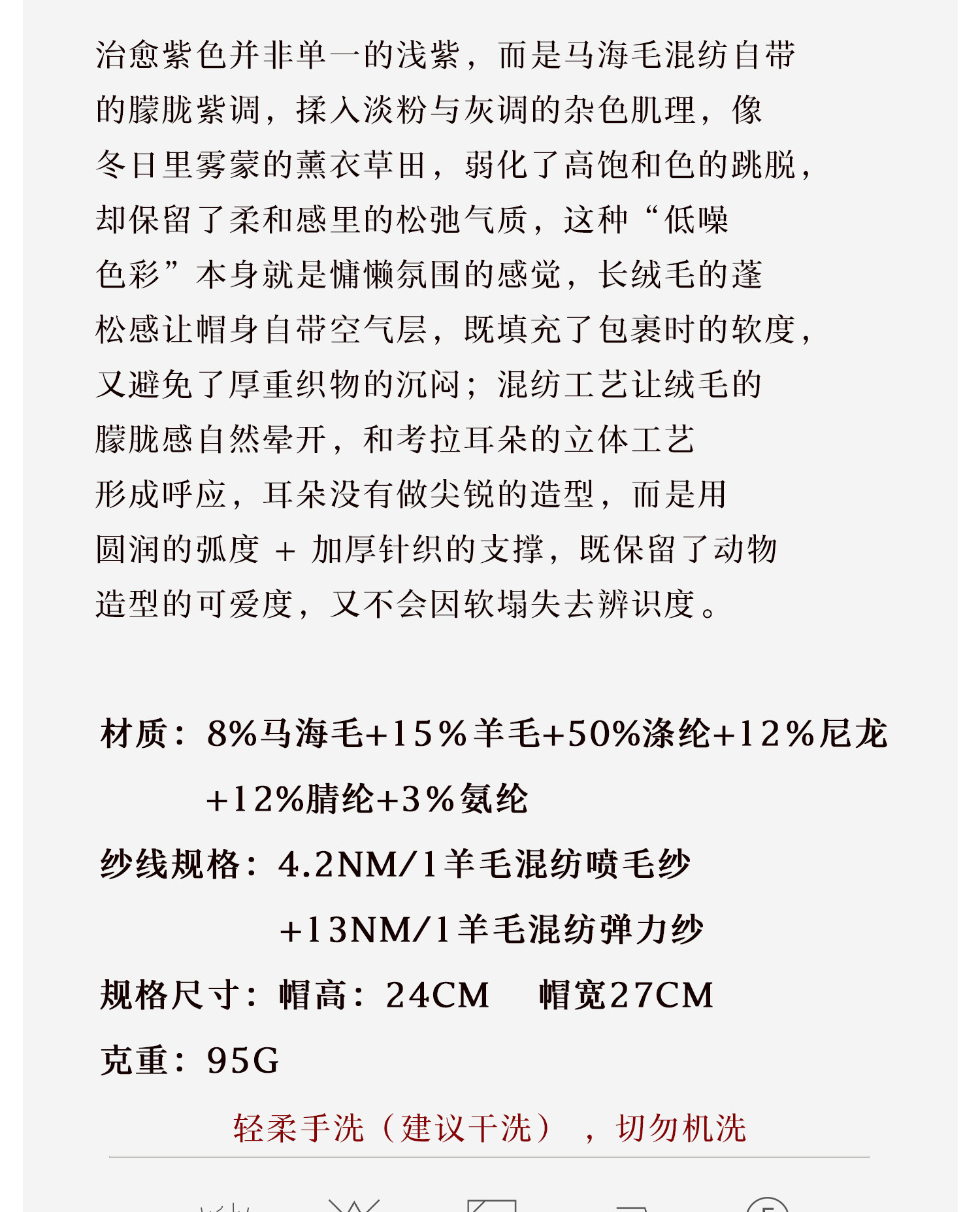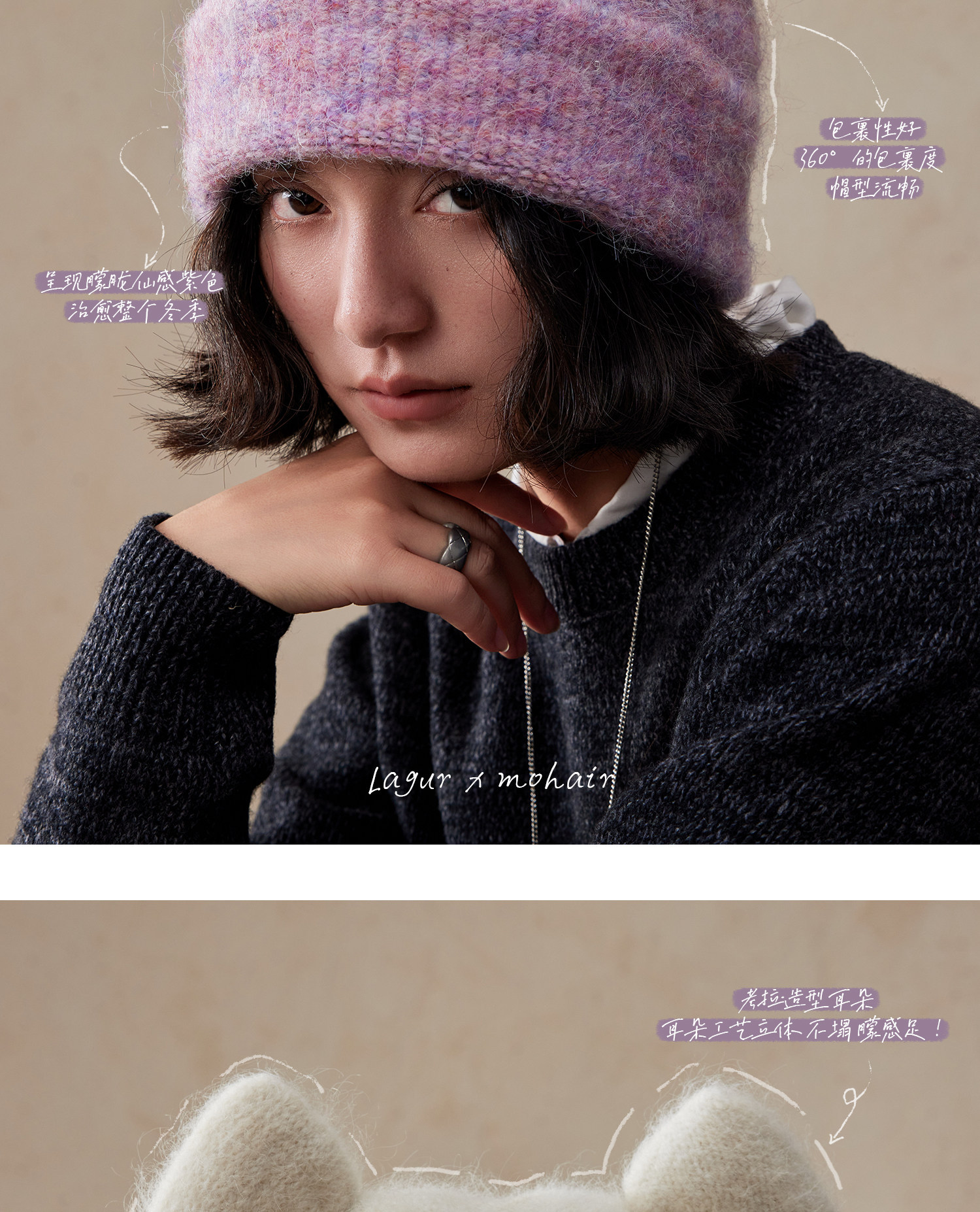 小考拉~慵懒&治愈紫色马海毛可爱减龄耳朵针织毛线帽保暖加厚帽子