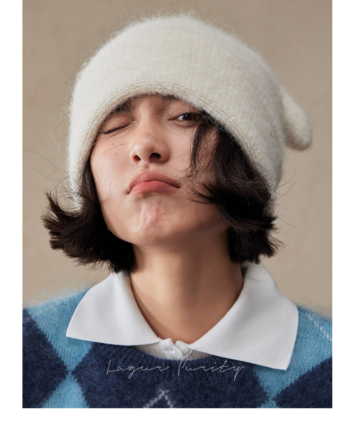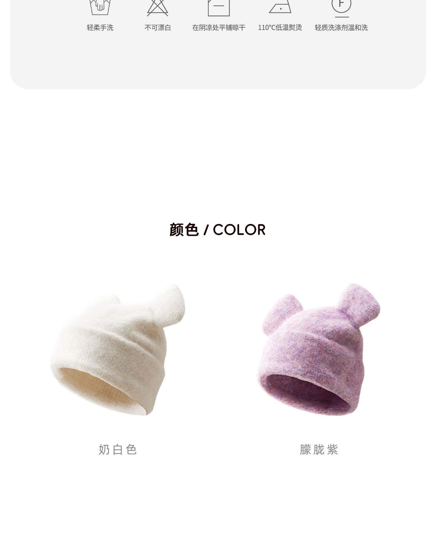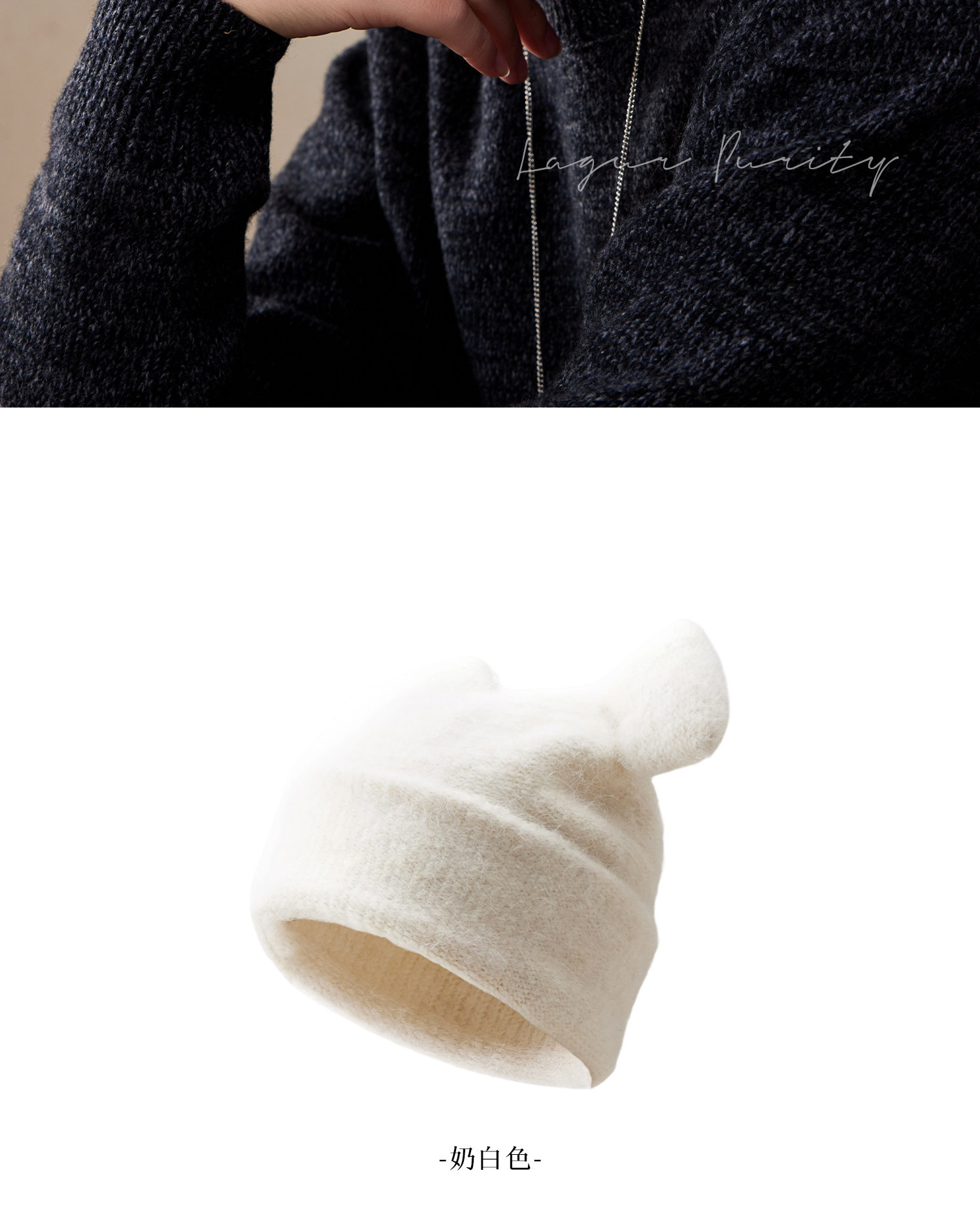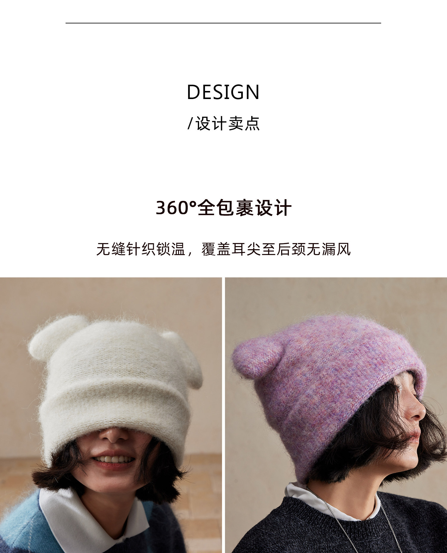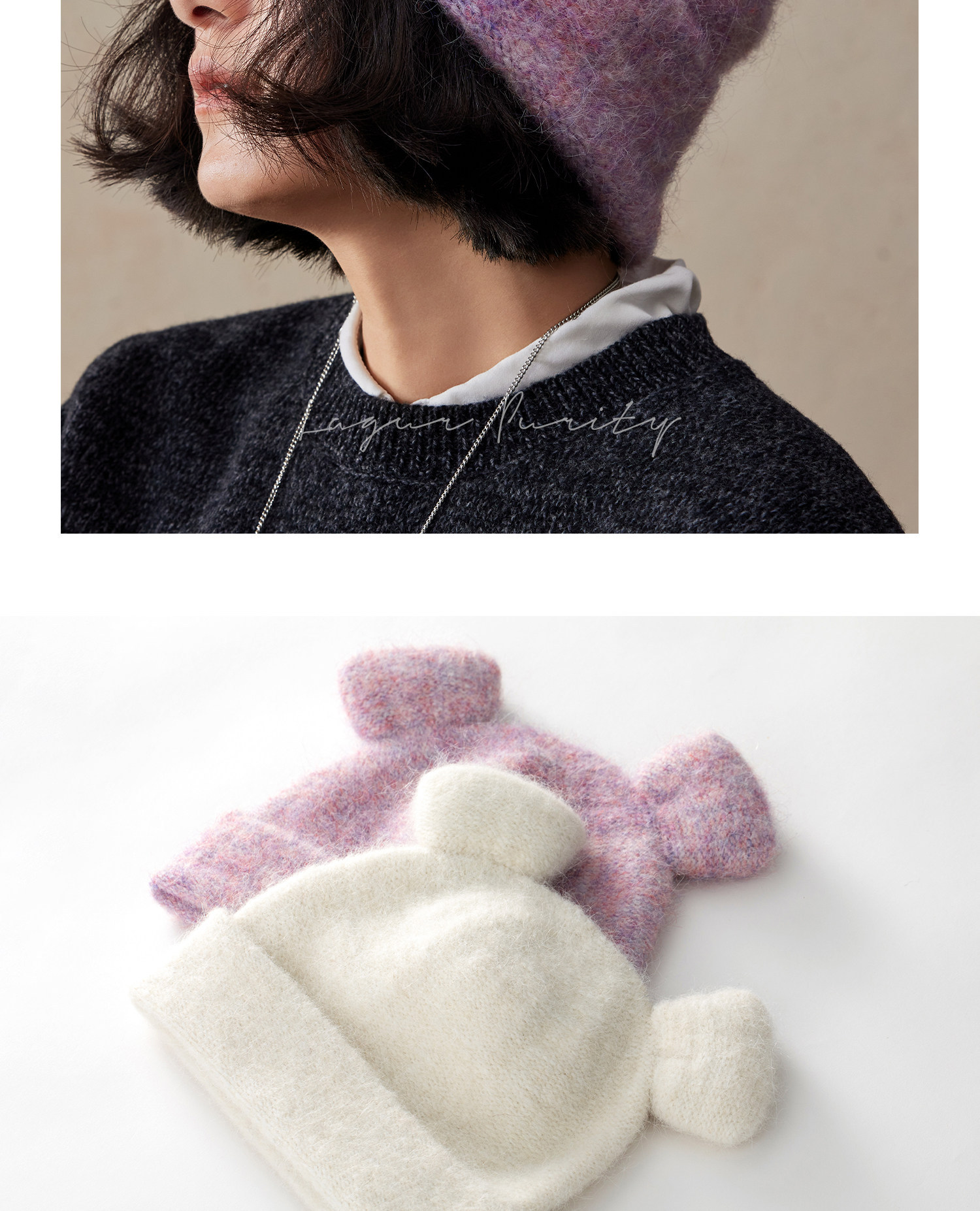 小考拉~慵懒&治愈紫色马海毛可爱减龄耳朵针织毛线帽保暖加厚帽子