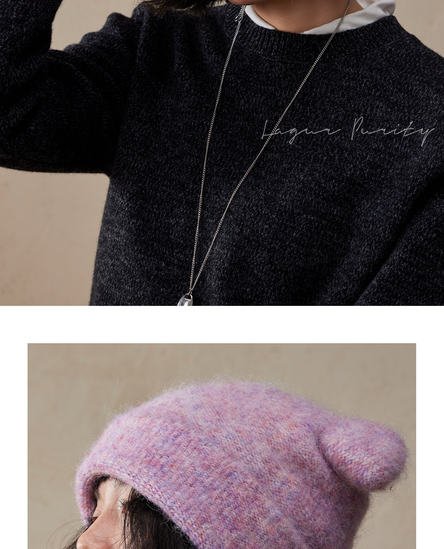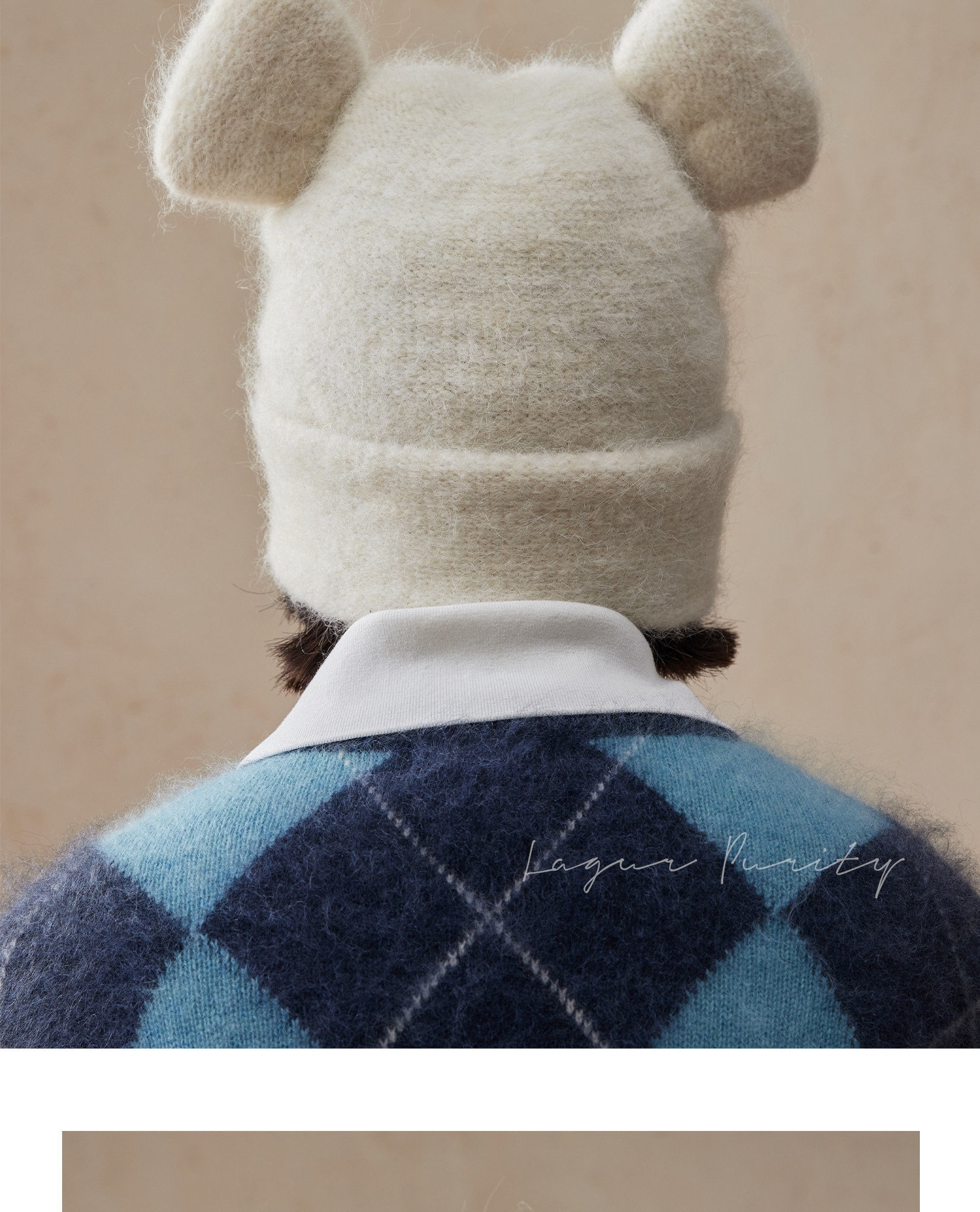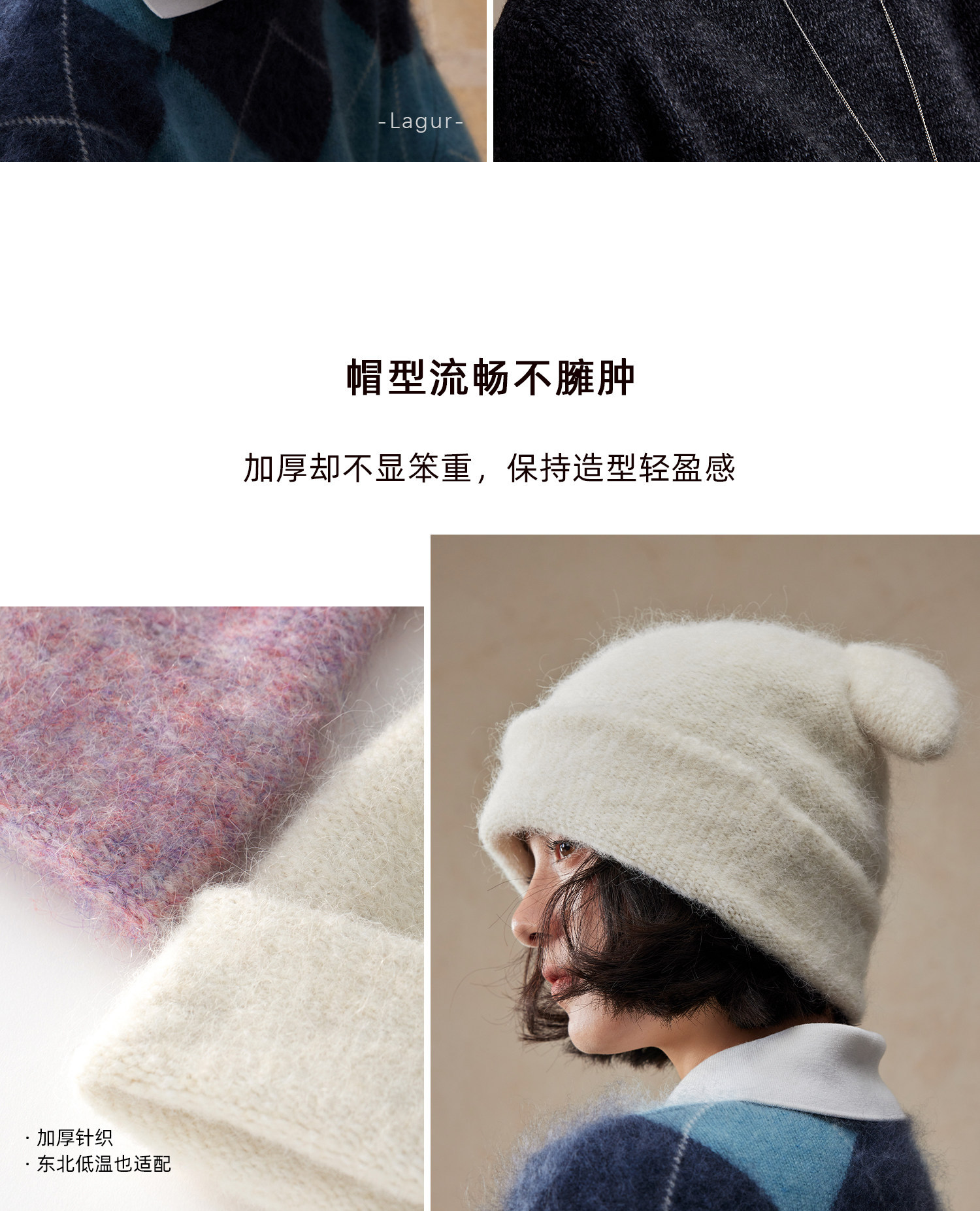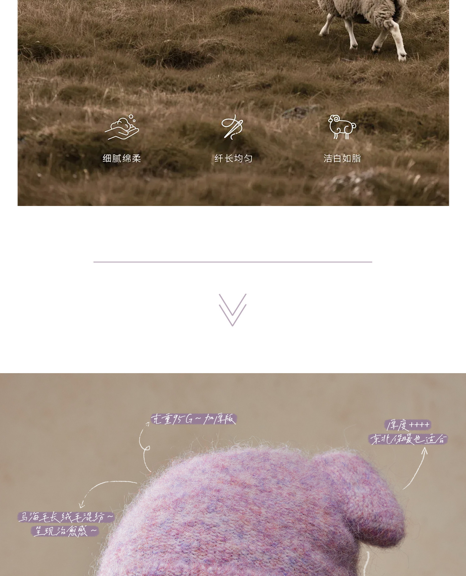小考拉~慵懒&治愈紫色马海毛可爱减龄耳朵针织毛线帽保暖加厚帽子