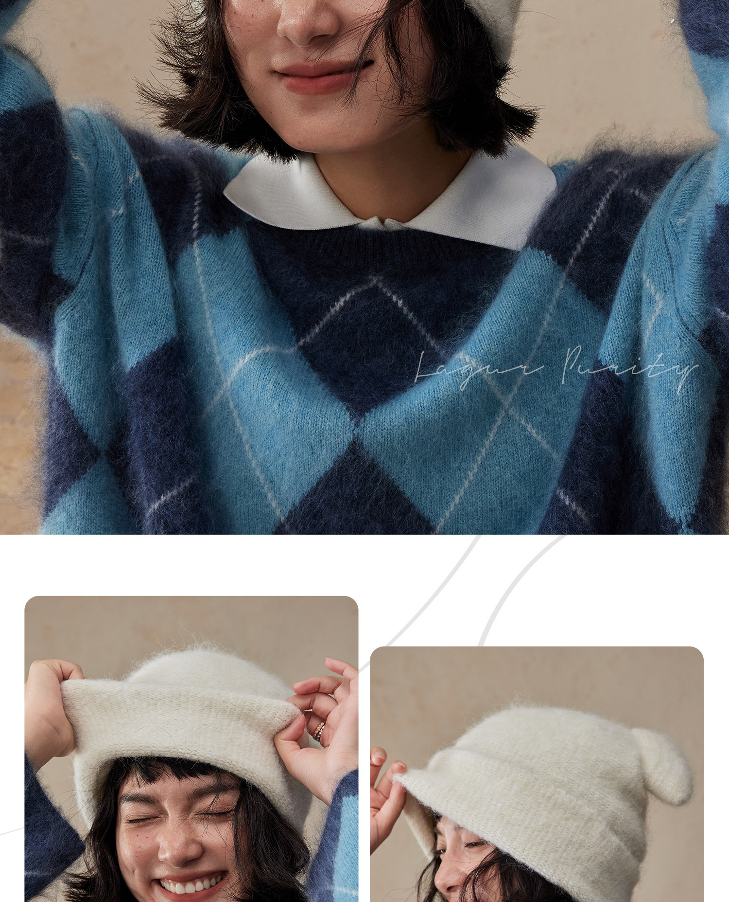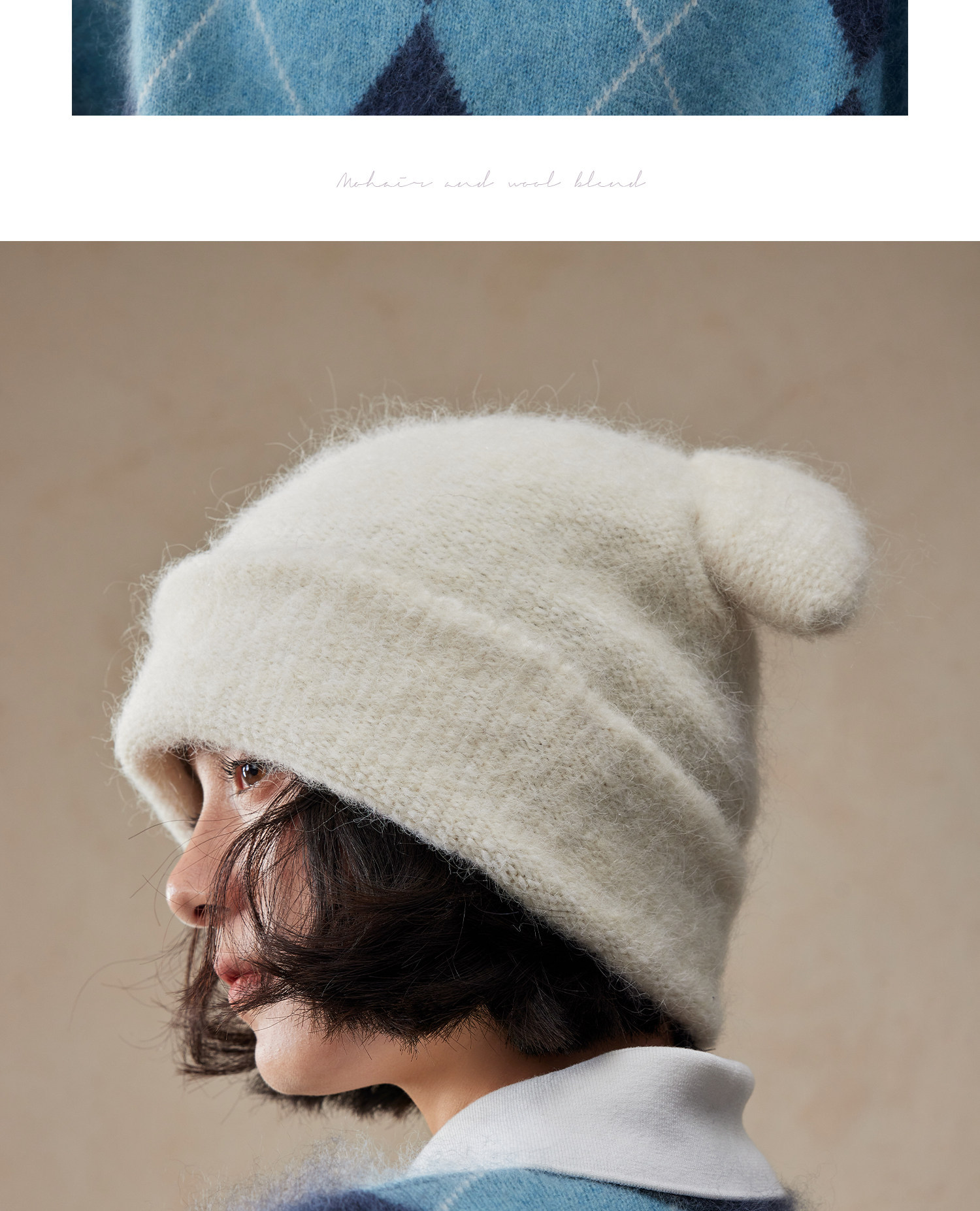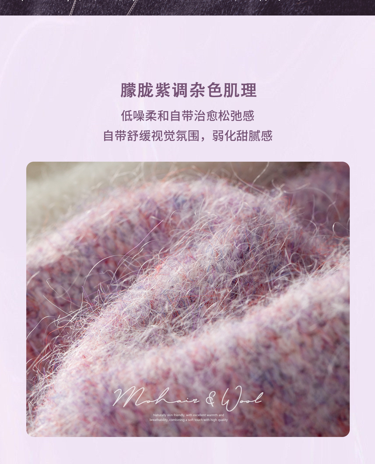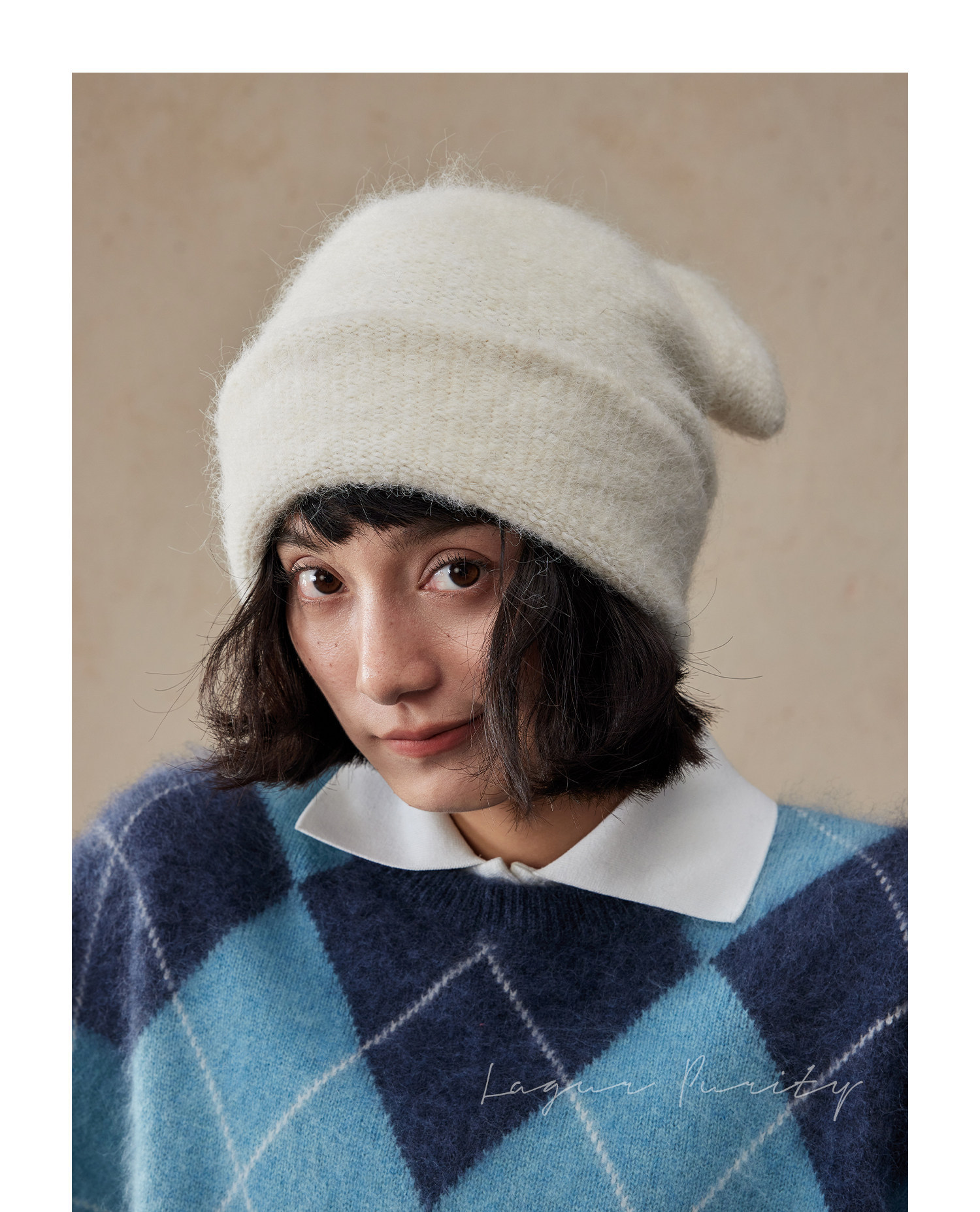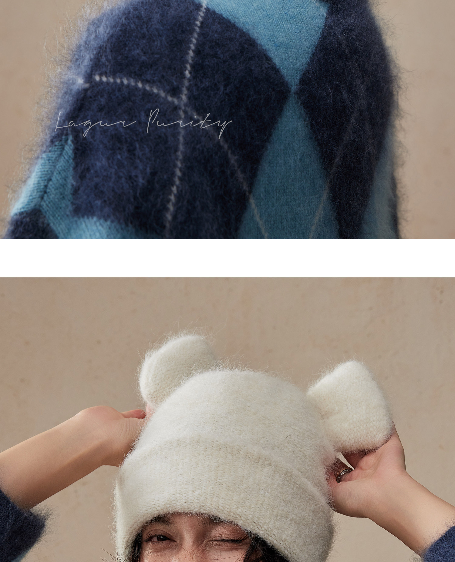 小考拉~慵懒&治愈紫色马海毛可爱减龄耳朵针织毛线帽保暖加厚帽子