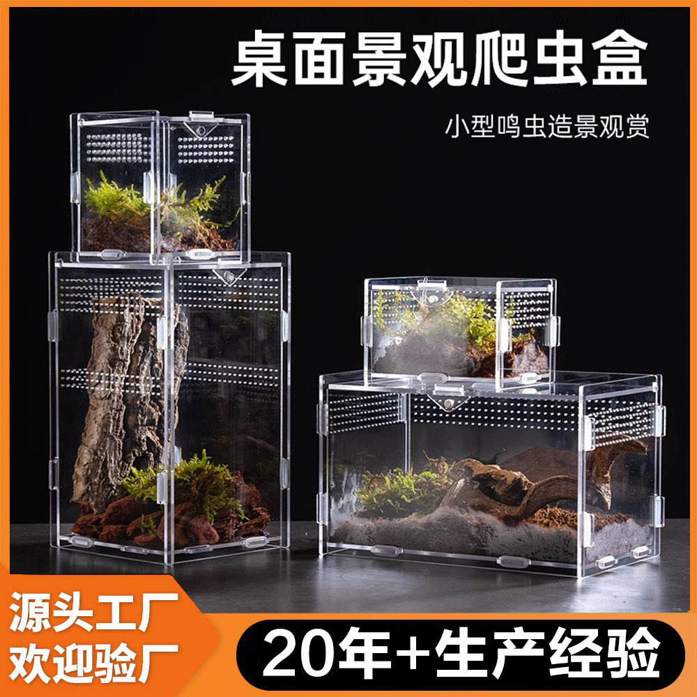 亚克力爬虫盒透明饲养盒蜘蛛雨林造景饲养箱爬宠居住装饰观赏盒子