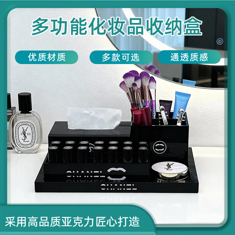 桌面多功能化妆品护肤品收纳盒简约轻奢亚克力口红化妆刷置物盒子