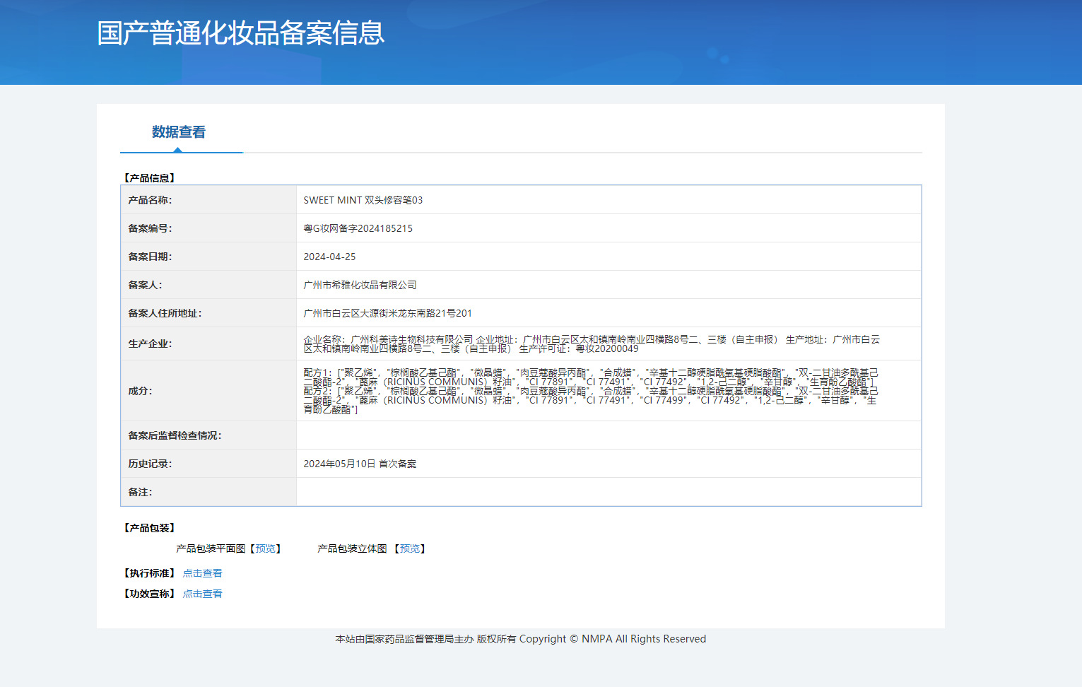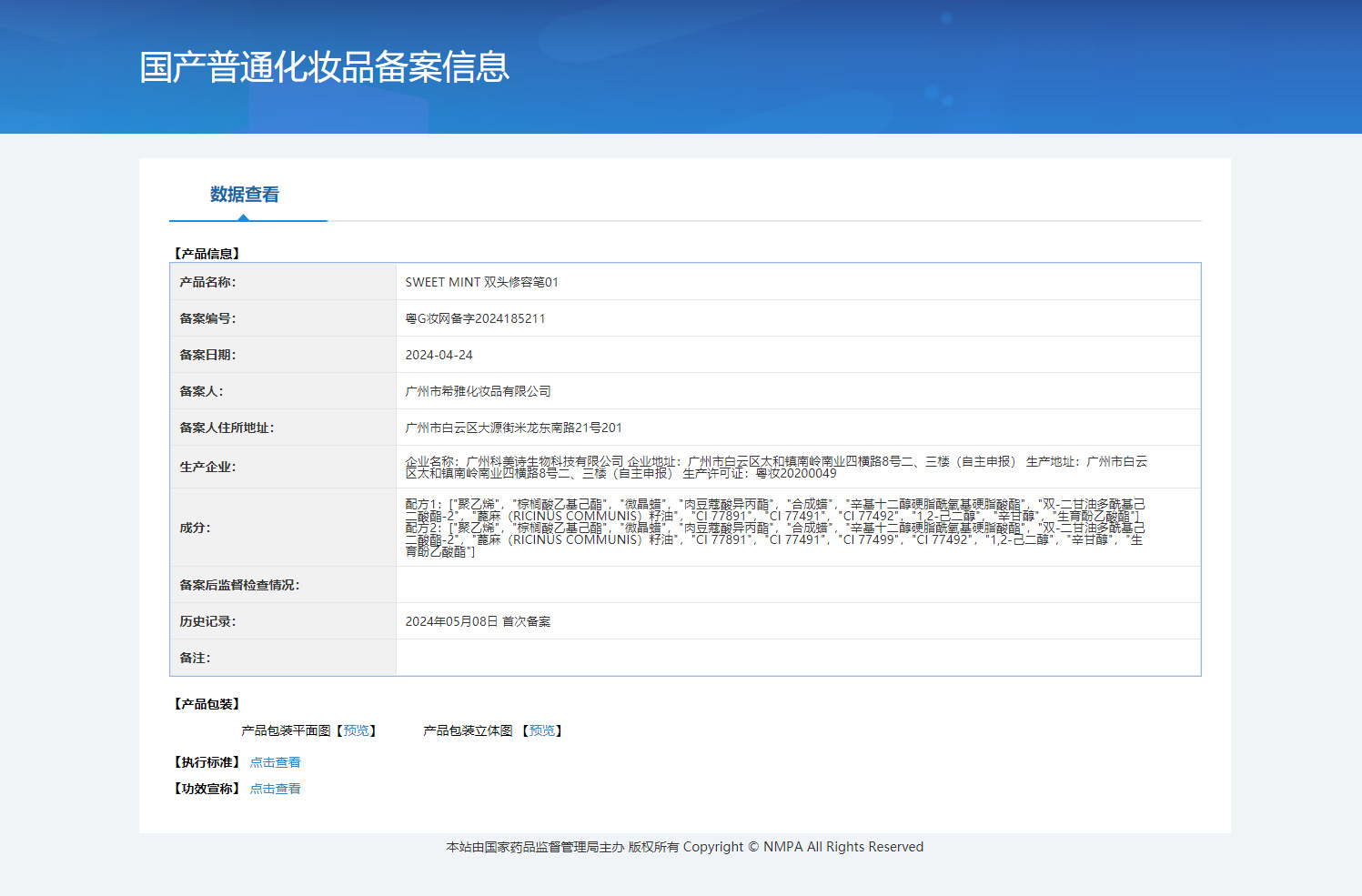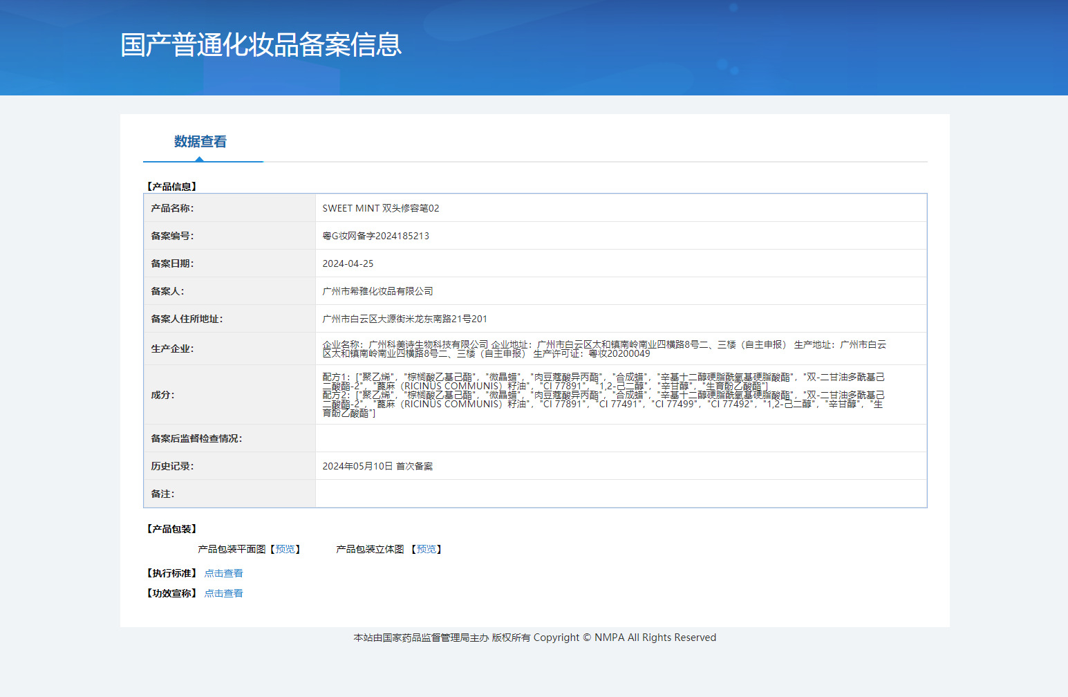 非特化妆品备案证号 粤G妆网备字2024185211