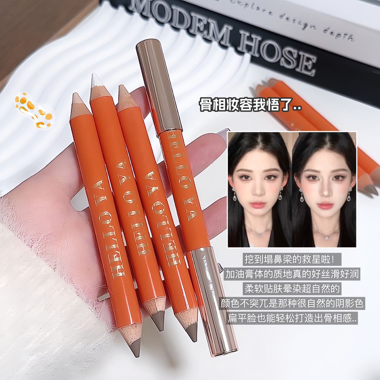 彩妆HelloYa双头修容笔哑光提亮面部阴影立体鼻影高光修容一体棒