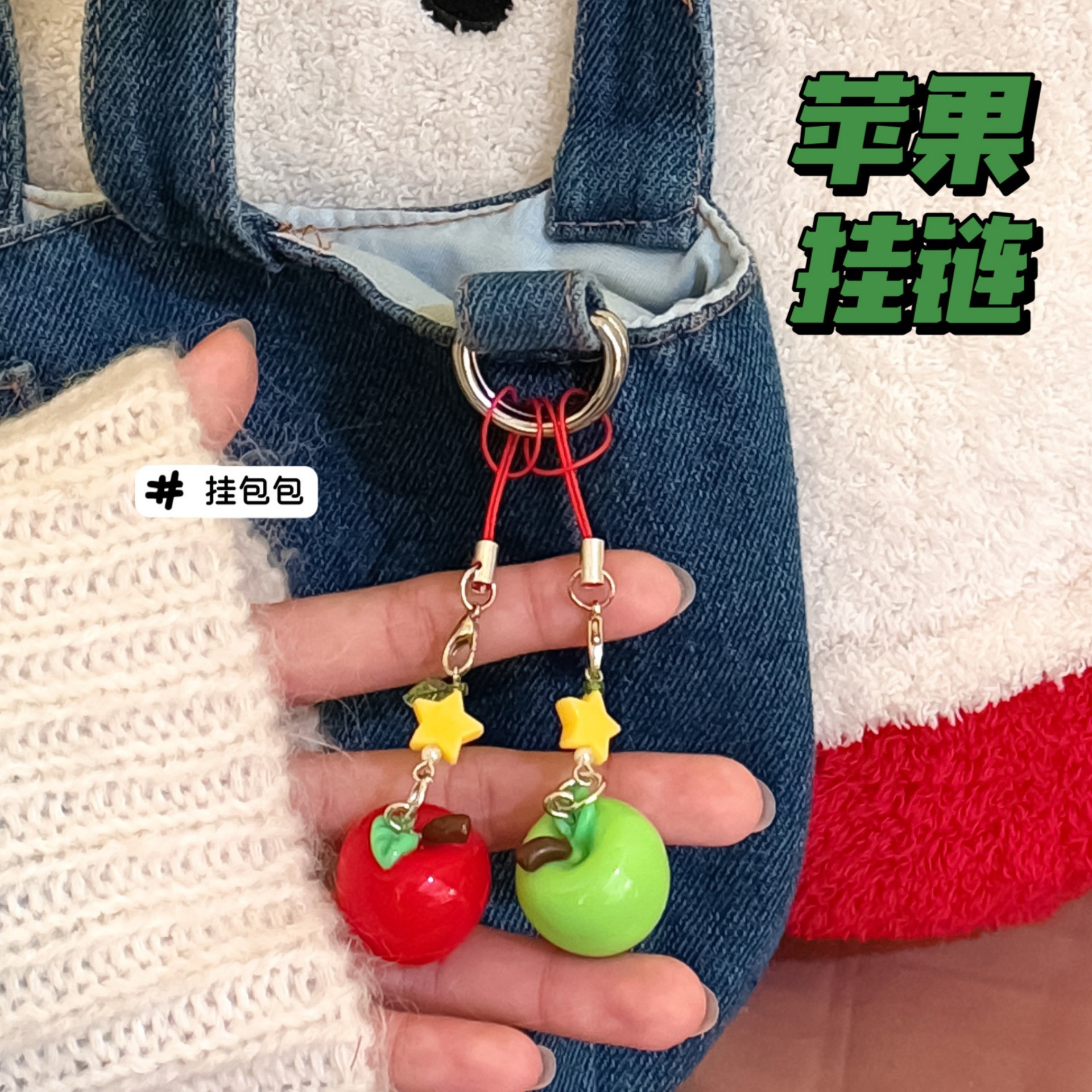 新款创意可爱立体苹果挂件少女手机壳挂链钥匙扣背包装饰挂坠配饰