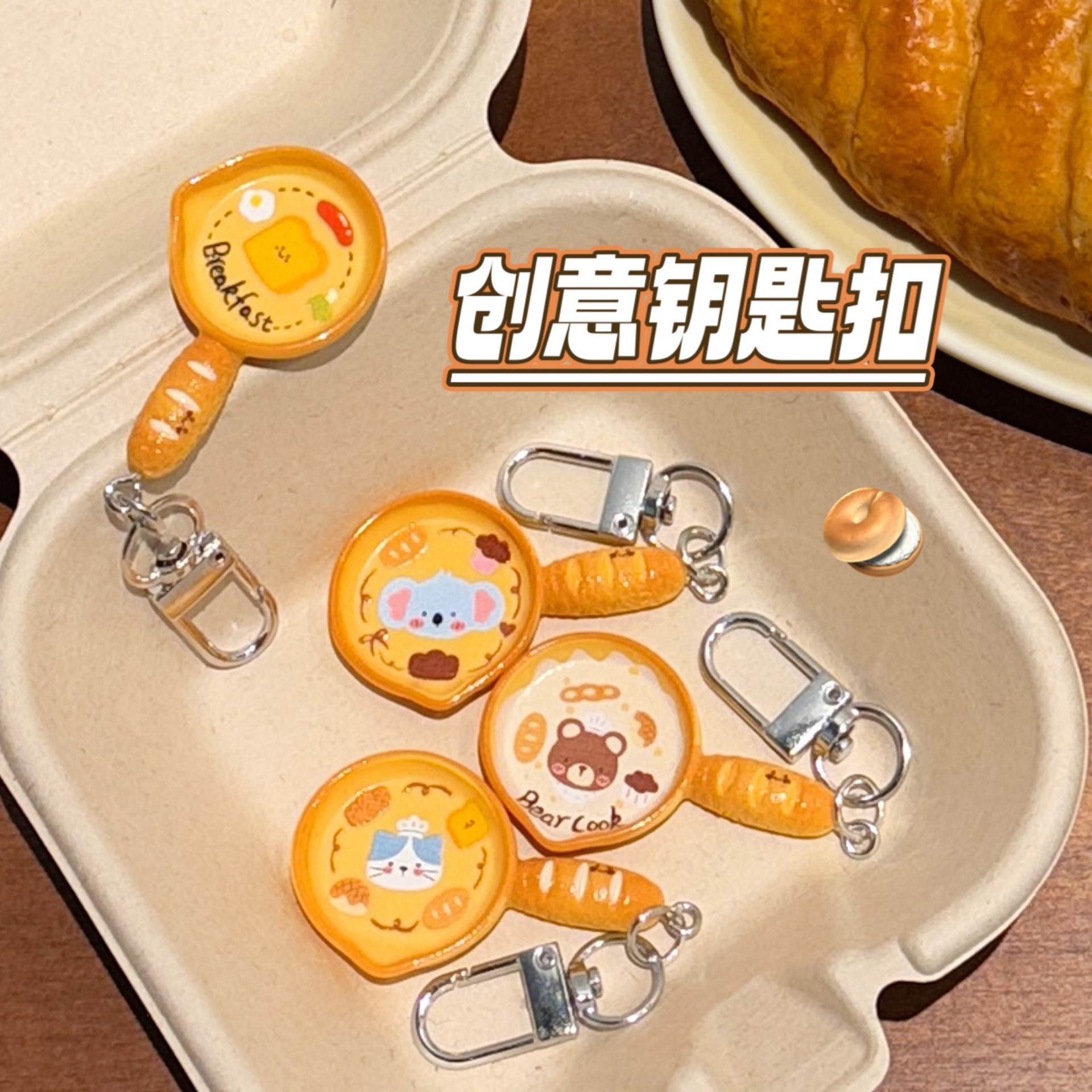 可爱卡通面包平底锅钥匙扣立体挂件食玩装饰挂饰少女心背包小挂坠