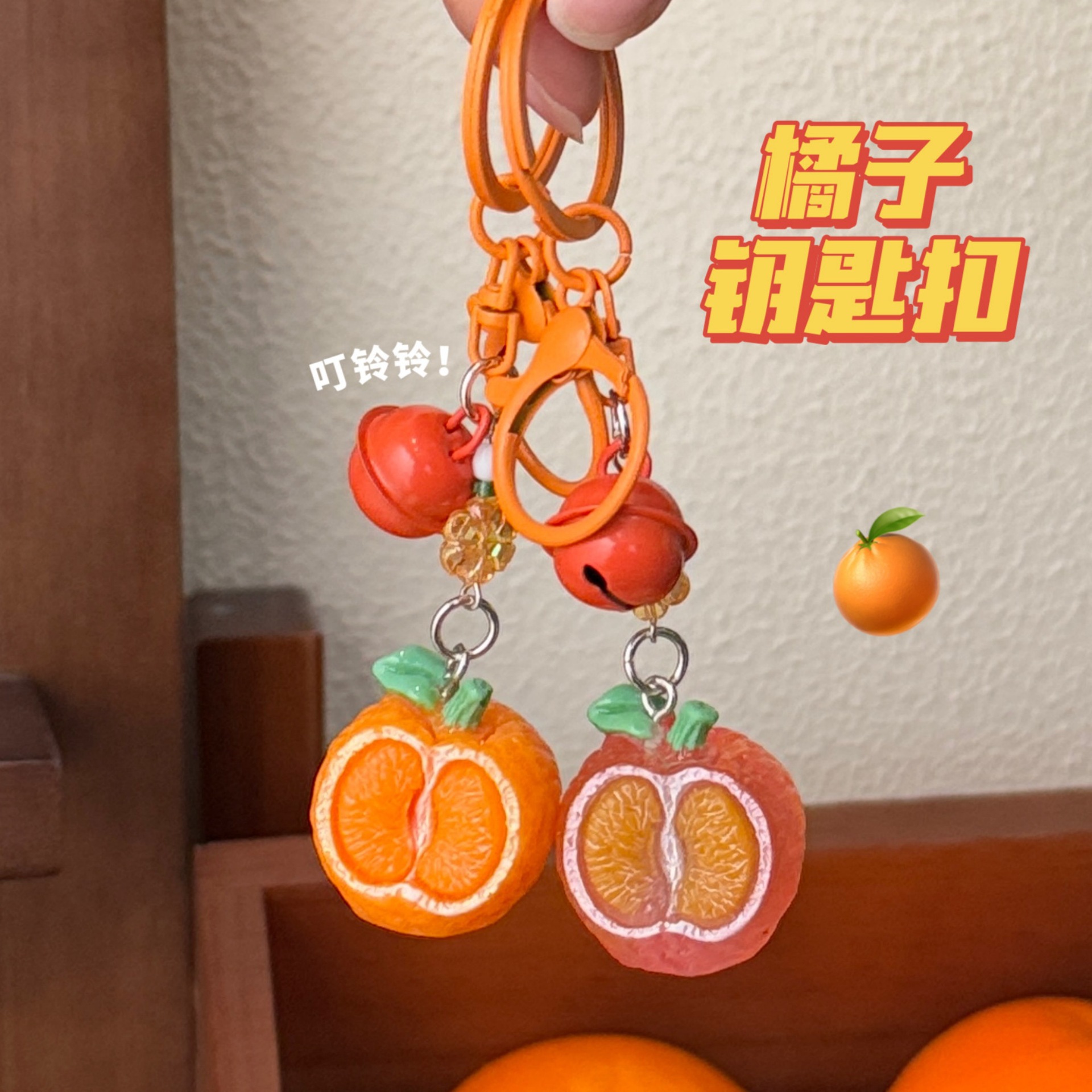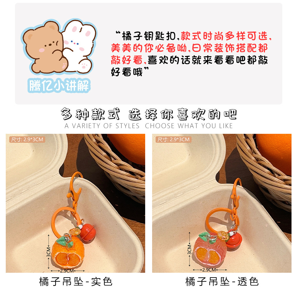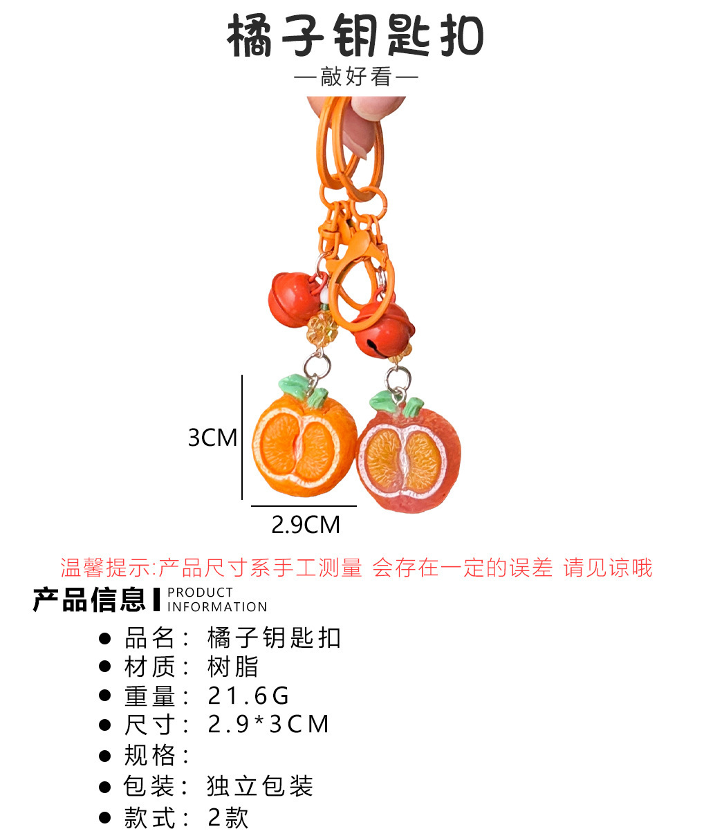 立体橘子钥匙扣挂件创意铃铛吊坠饰品背包装饰挂饰情侣小配饰批发