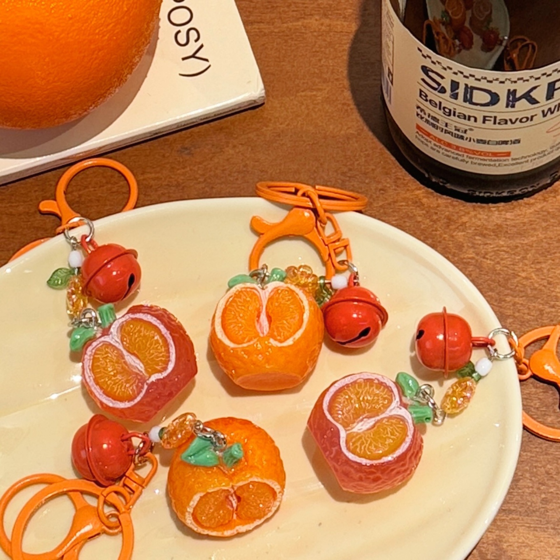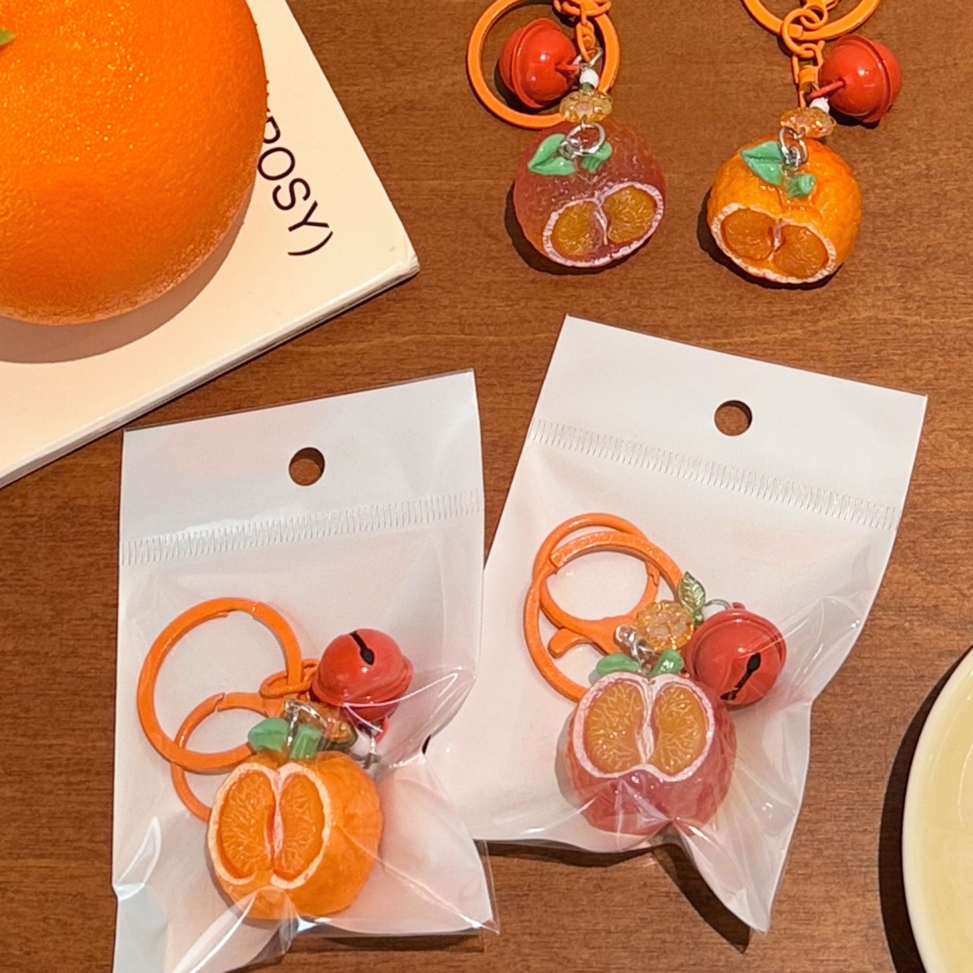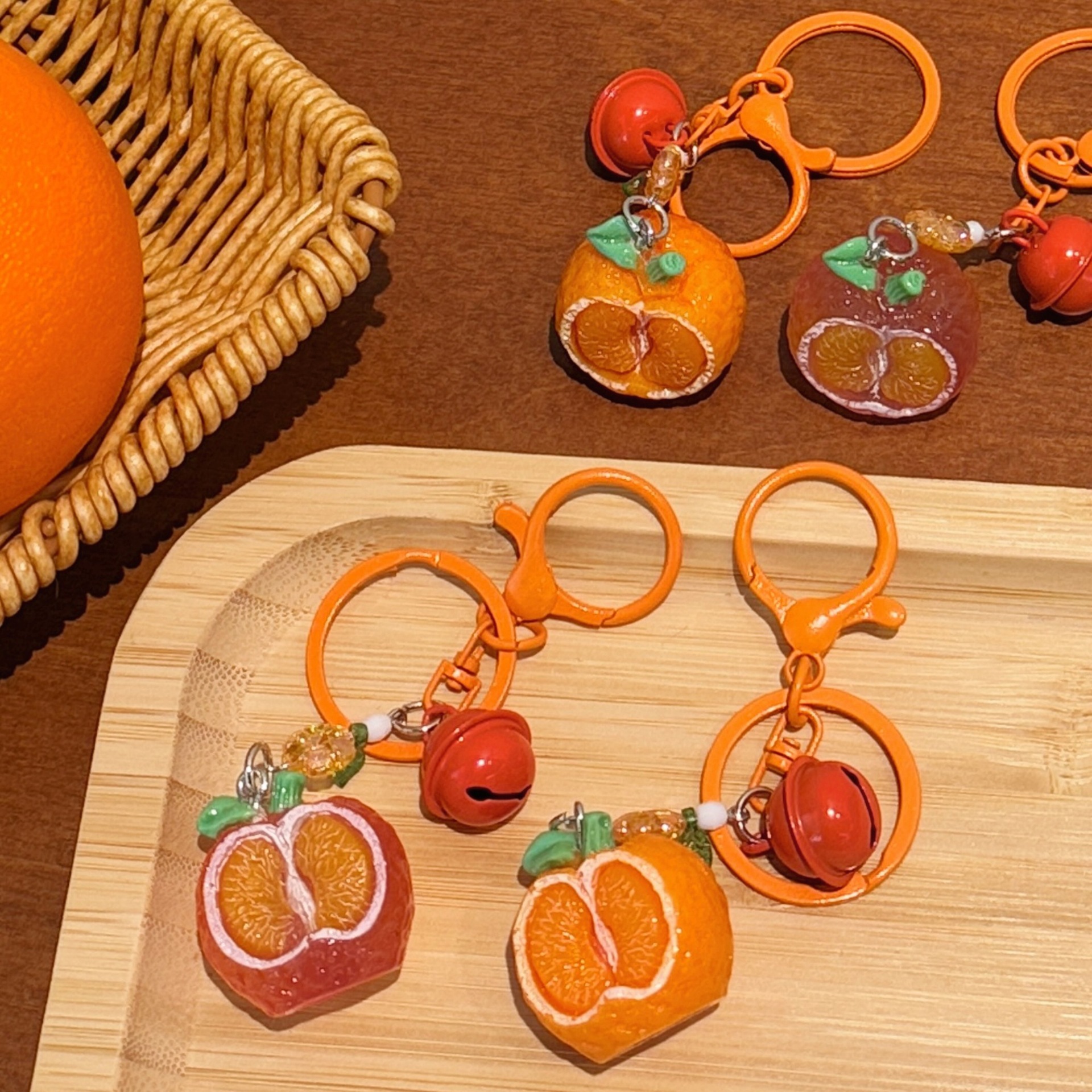 立体橘子钥匙扣挂件创意铃铛吊坠饰品背包装饰挂饰情侣小配饰批发