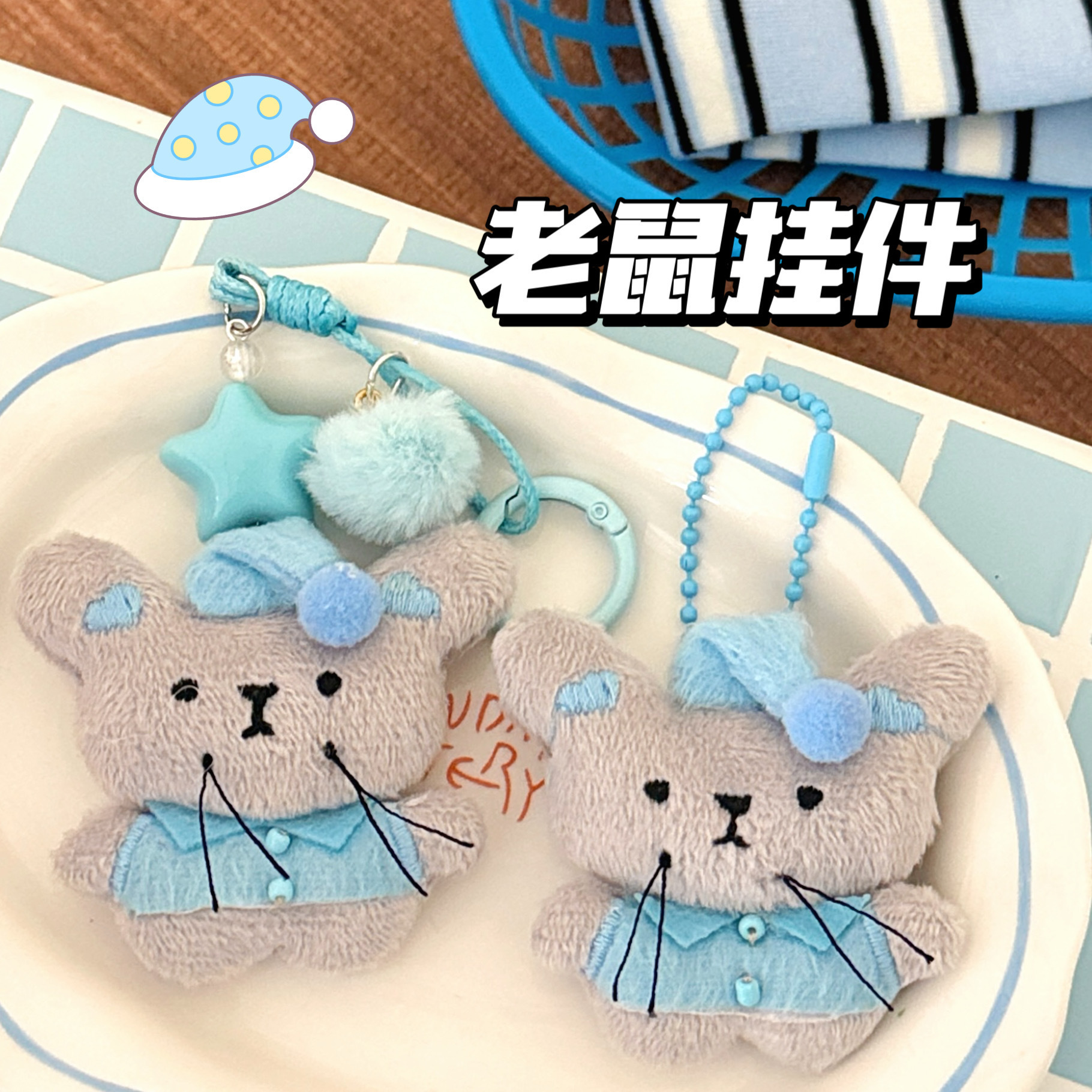 新款可爱睡衣鼠鼠公仔挂件少女钥匙扣包包装饰挂饰百搭小挂坠批发