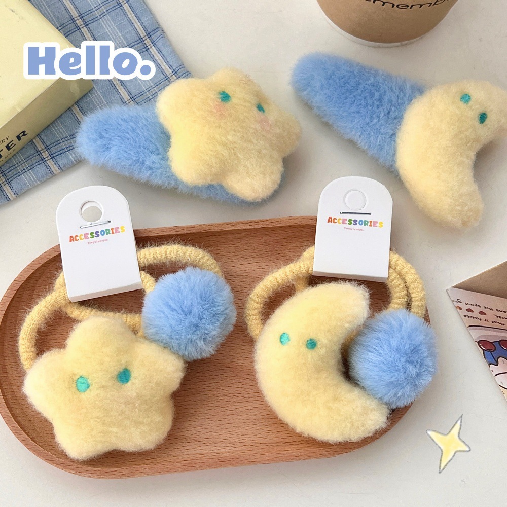 新商品の可愛い乳黄星の月の髪は紐の毛の絨毛のbbを挟んで前髪を挟みます。