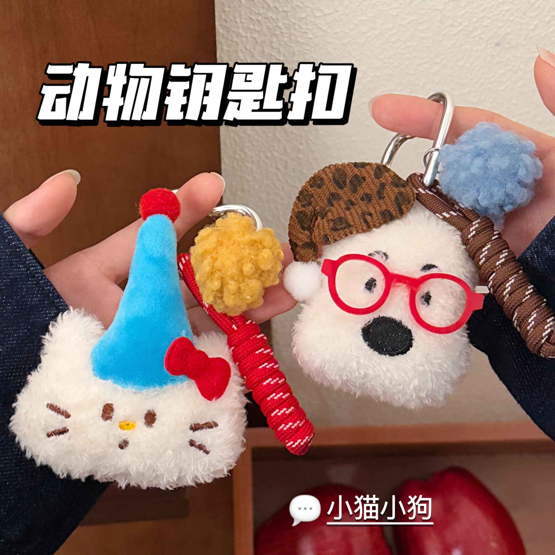 腾亿原创可爱卡通猫狗公仔钥匙扣挂件少女心背包装饰挂坠玩偶批发
