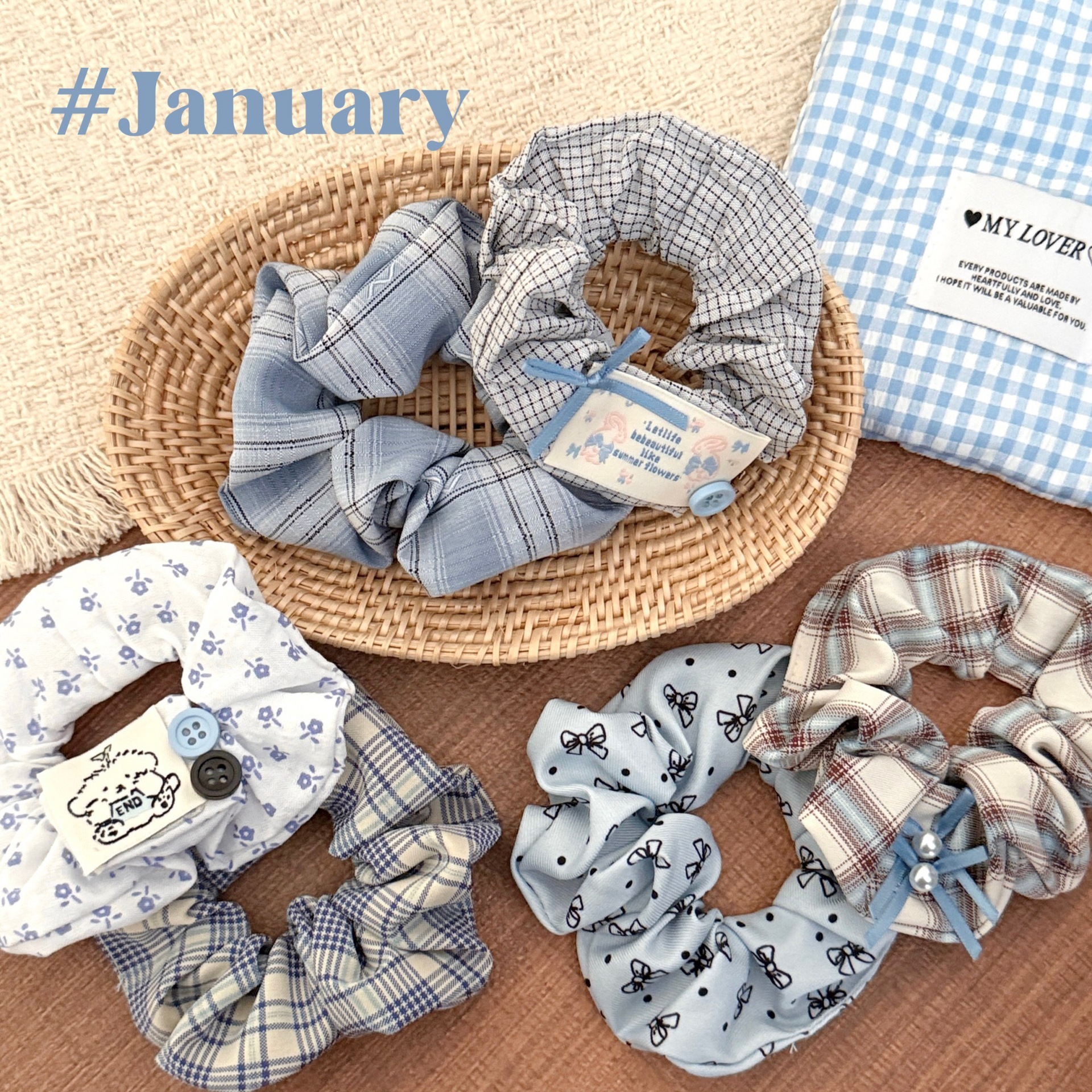 蓝色系蝴蝶结百搭大肠发圈少女扎马尾头绳大号丸子头盘发皮筋批发