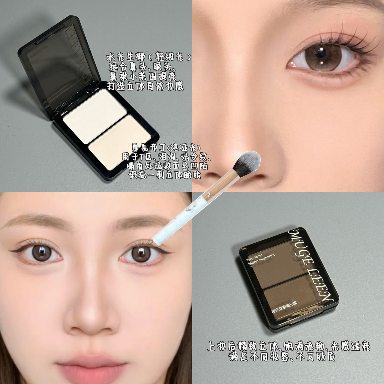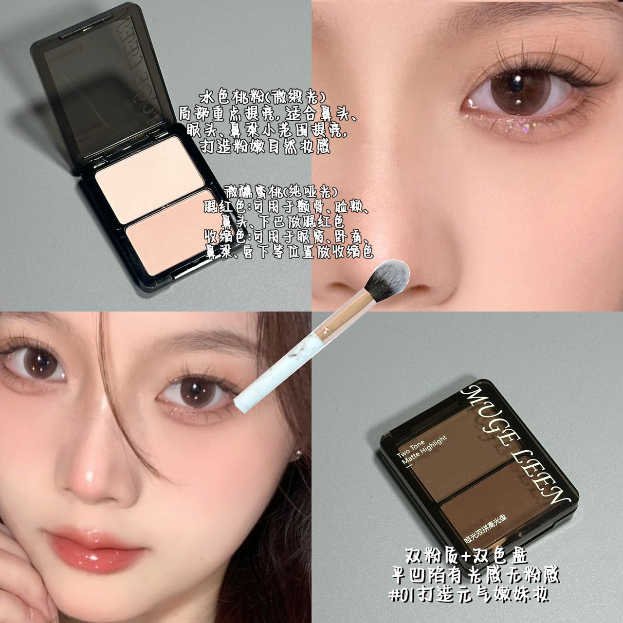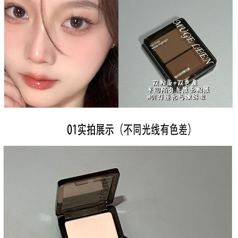 MUGELEEN哑光高光双拼提亮鼻影高光阴影腮红一体盘哑面双拼高光盘