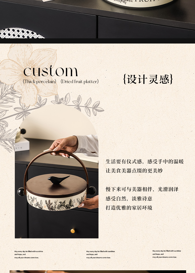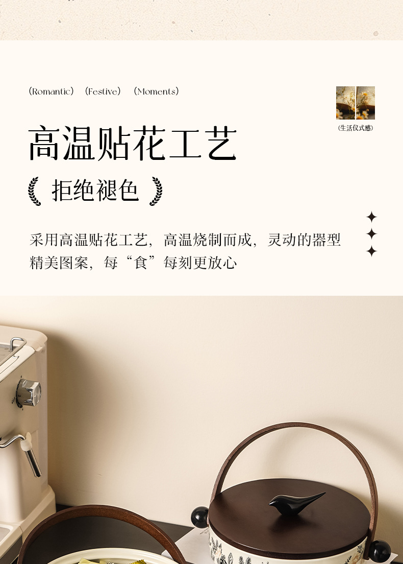 新年糖果盒家用带盖竹木山雀中古风陶瓷干果盘高级感零食坚果盒子
