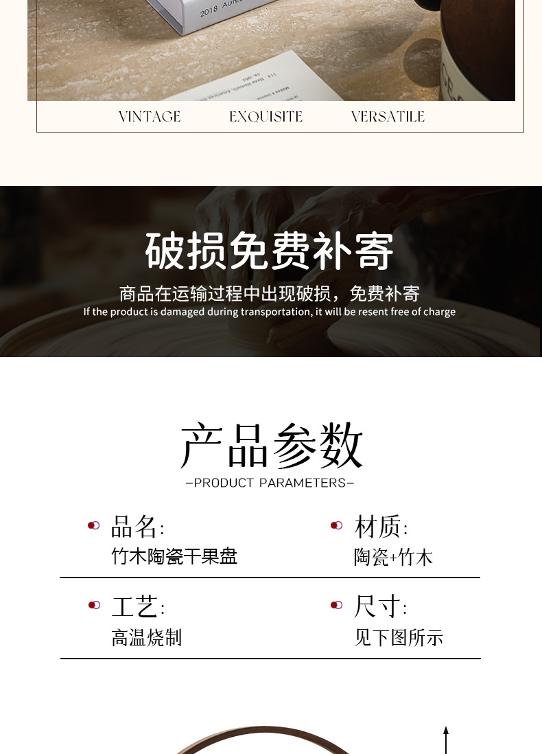 随沐复古陶瓷果盘茶几家用零食干果收纳盘糖果摆放盘点心盘坚果盒