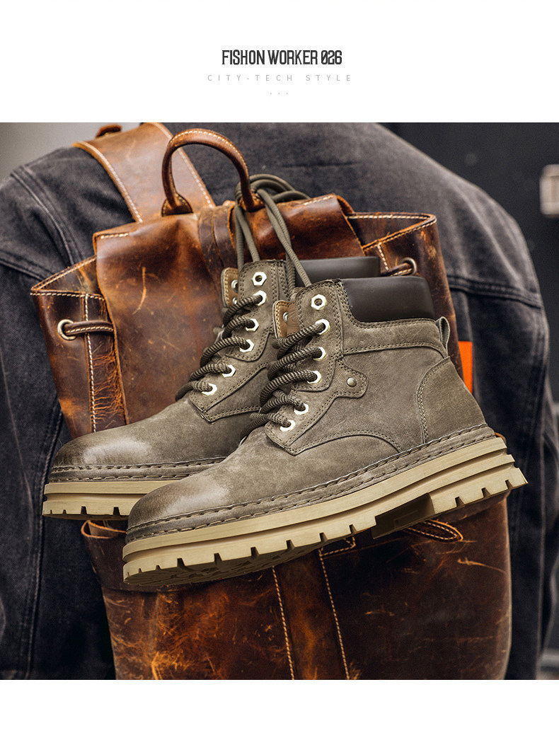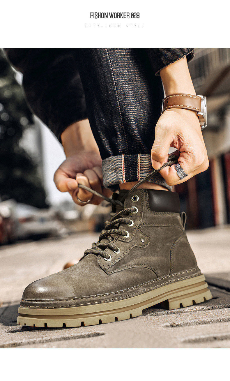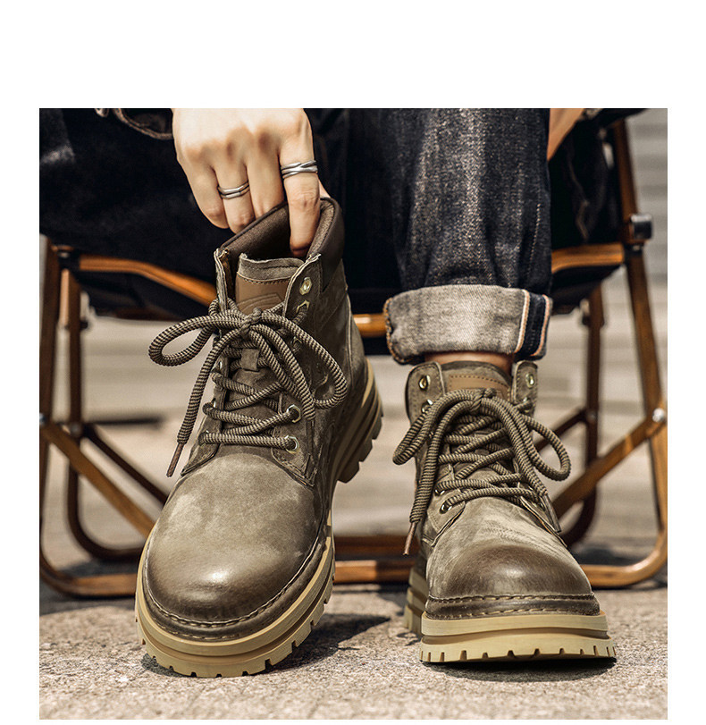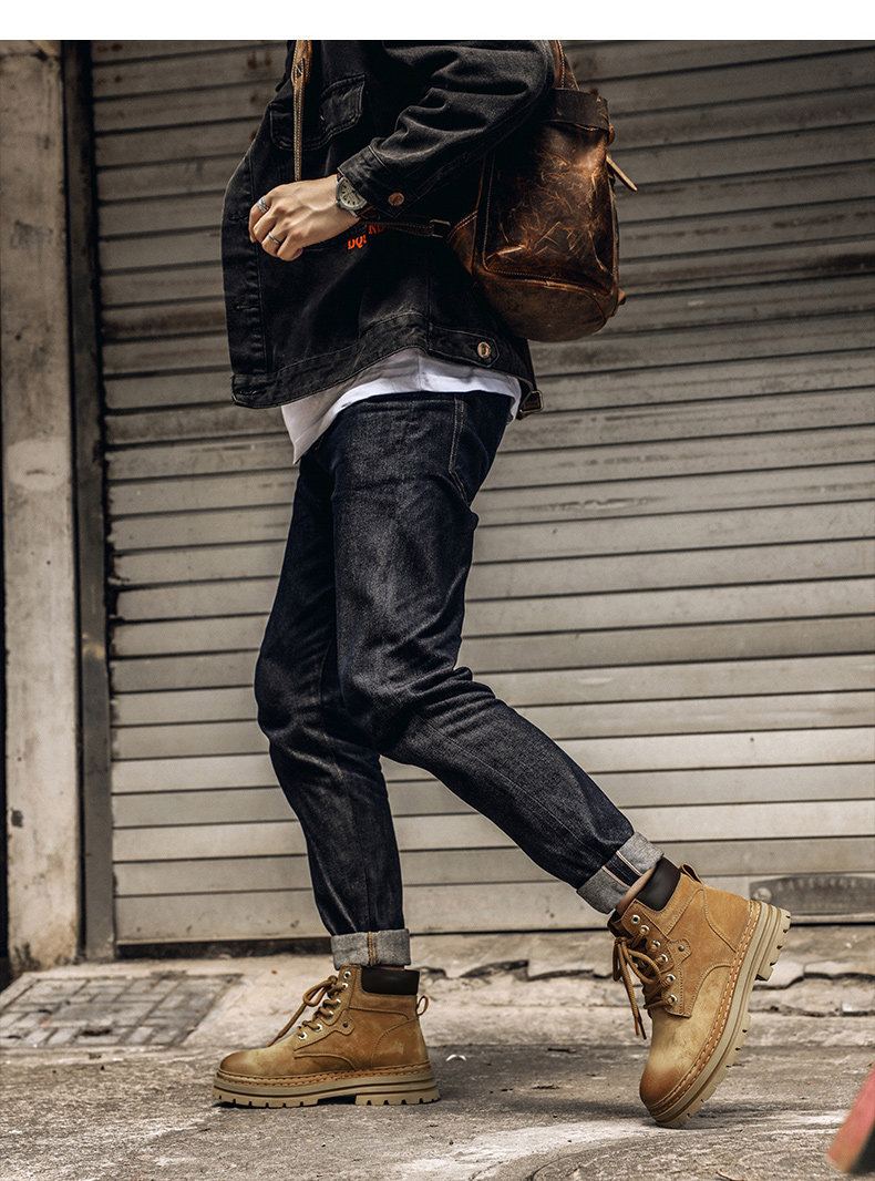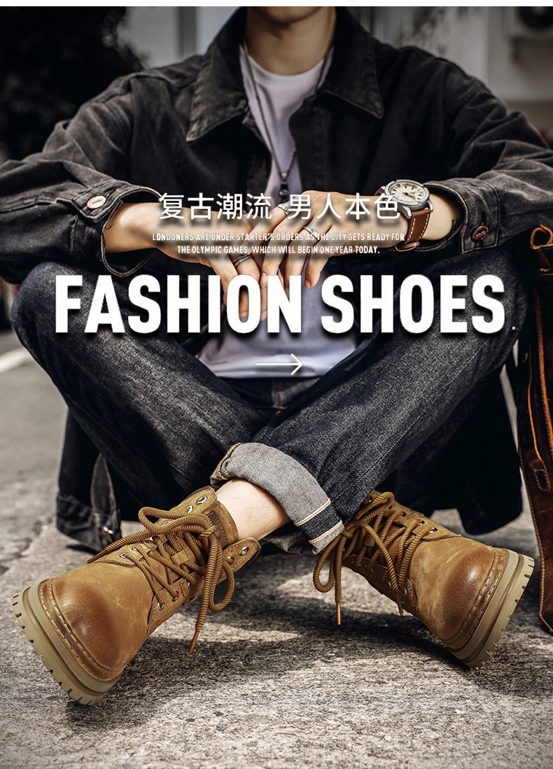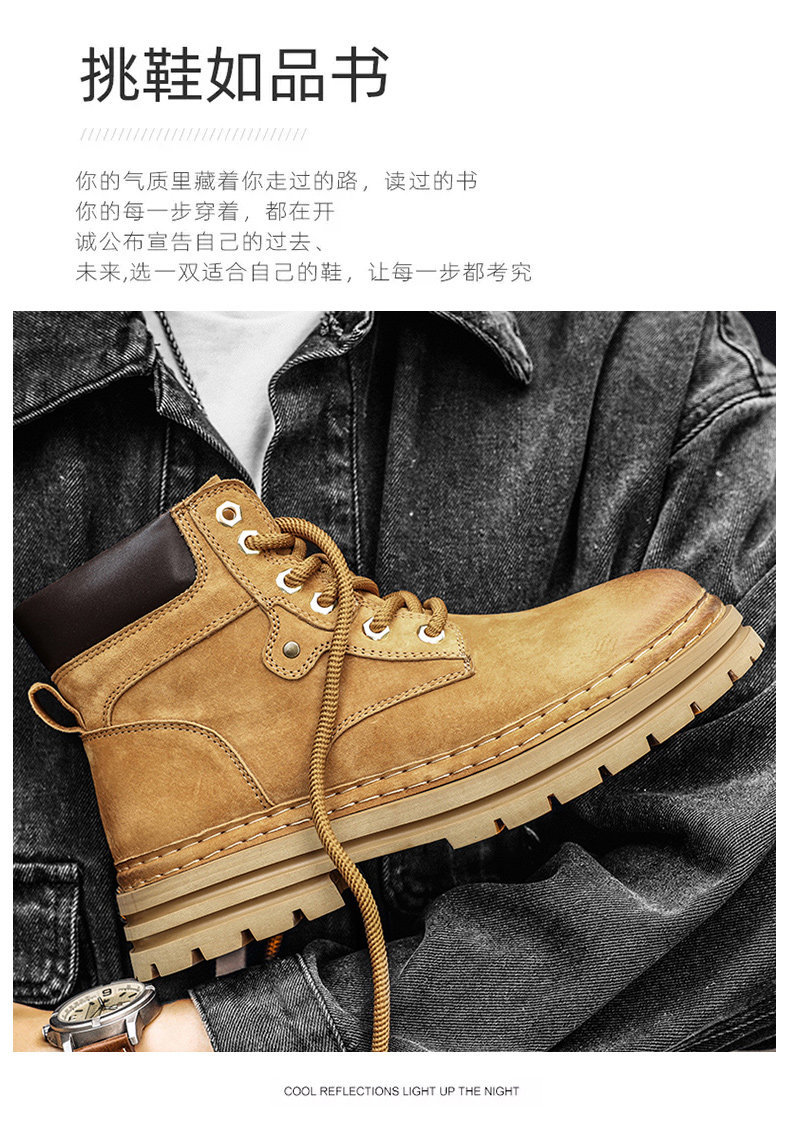 木林森高帮鞋男冬季琥珀流光工装马丁靴中帮休闲皮鞋复古厚底板鞋