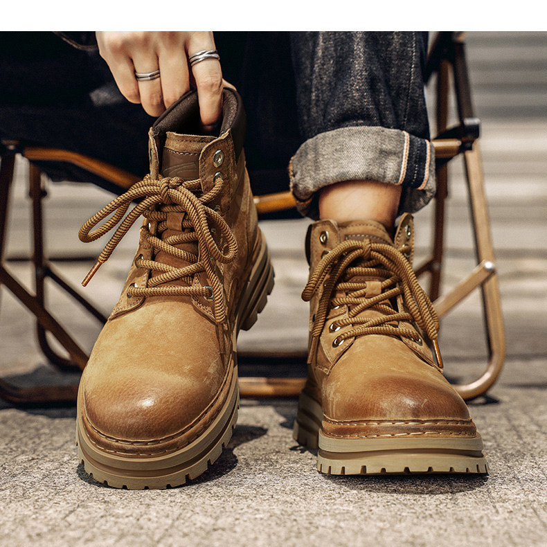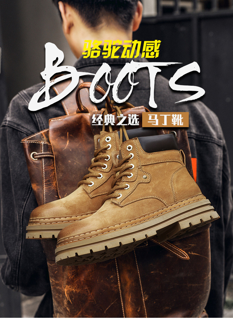 德国骆驼动感马丁靴男2025秋冬新款黄文高帮工装鞋英伦厚底大黄靴