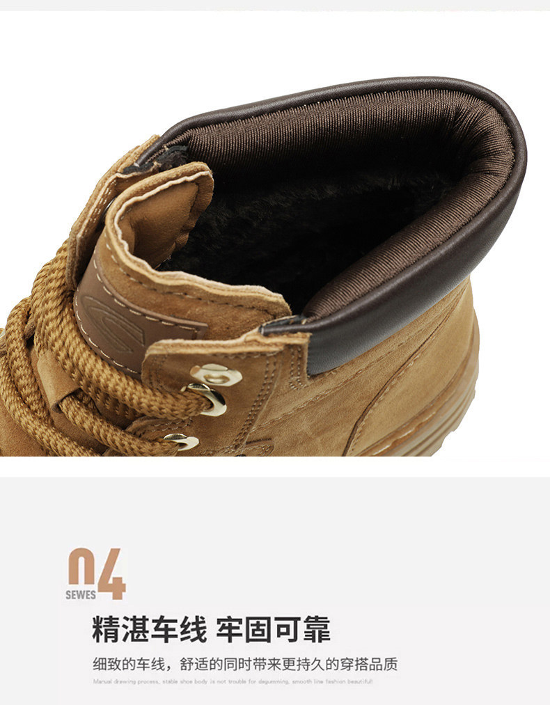 德国骆驼动感马丁靴男款冬季黑色羊毛真皮高帮棉鞋加绒保暖雪地靴
