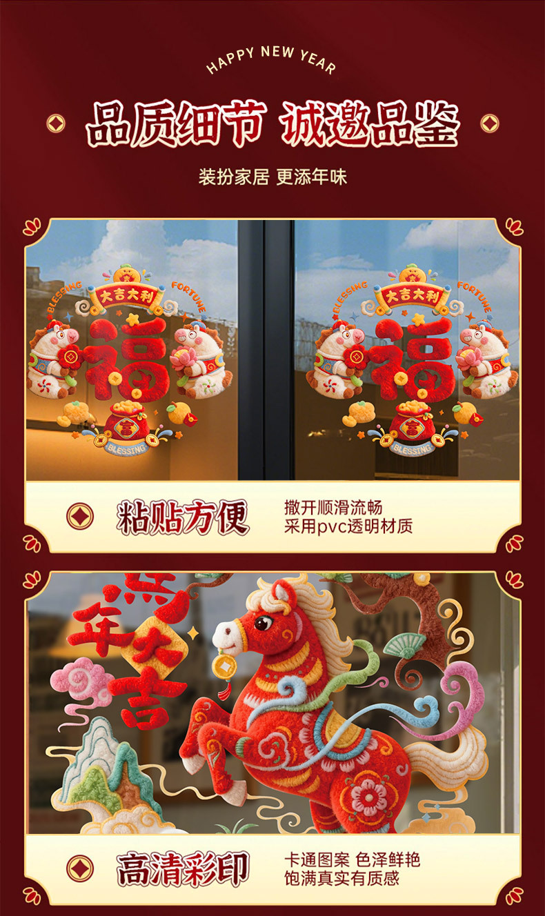 新年5D仿毛绒窗花(加厚款)(揭下不留痕)马年大吉(一张装),新年5D仿毛绒窗花(加厚款)(揭下不留痕)狮来运转(一张装),新年5D仿毛绒窗花(加厚款)(揭下不留痕)马到成功(一张装),新年5D仿毛绒窗花(加厚款)(揭下不留痕)大吉大利(一张装),新年5D仿毛绒窗花(加厚款)(揭下不留痕)五福临门(一张装),新年5D仿毛绒窗花(加厚款)(揭下不留痕)马上发财(一张装),新年5D仿毛绒窗花(加厚款)(揭下不留痕)2026(一张装),新年5D仿毛绒窗花(加厚款)(揭下不留痕)马年大吉HAPPY(一张装),新年5D仿毛绒窗花(加厚款)(揭下不留痕)新年快乐(一张装),新年5D仿毛绒窗花(加厚款)(揭下不留痕)马年大吉(一对装),新年5D仿毛绒窗花(加厚款)(揭下不留痕)狮来运转(一对装),新年5D仿毛绒窗花(加厚款)(揭下不留痕)马到成功(一对装),新年5D仿毛绒窗花(加厚款)(揭下不留痕)大吉大利(一对装),新年5D仿毛绒窗花(加厚款)(揭下不留痕)五福临门(一对装),新年5D仿毛绒窗花(加厚款)(揭下不留痕)马上发财(一对装),新年5D仿毛绒窗花(加厚款)(揭下不留痕)狮来运转+马年大吉(一对装),新年5D仿毛绒窗花(加厚款)(揭下不留痕)大吉大利+五福临门(一对装),新年5D仿毛绒窗花(加厚款)(揭下不留痕)马上发财+马到成功(一对装),新年5D仿毛绒窗花(加厚款)(揭下不留痕)2026+马年大吉(一对装),新年5D仿毛绒窗花(加厚款)(揭下不留痕)2026+新年快乐(一对装),新年5D仿毛绒窗花(加厚款)(揭下不留痕)马年大吉+新年快乐(一对装)