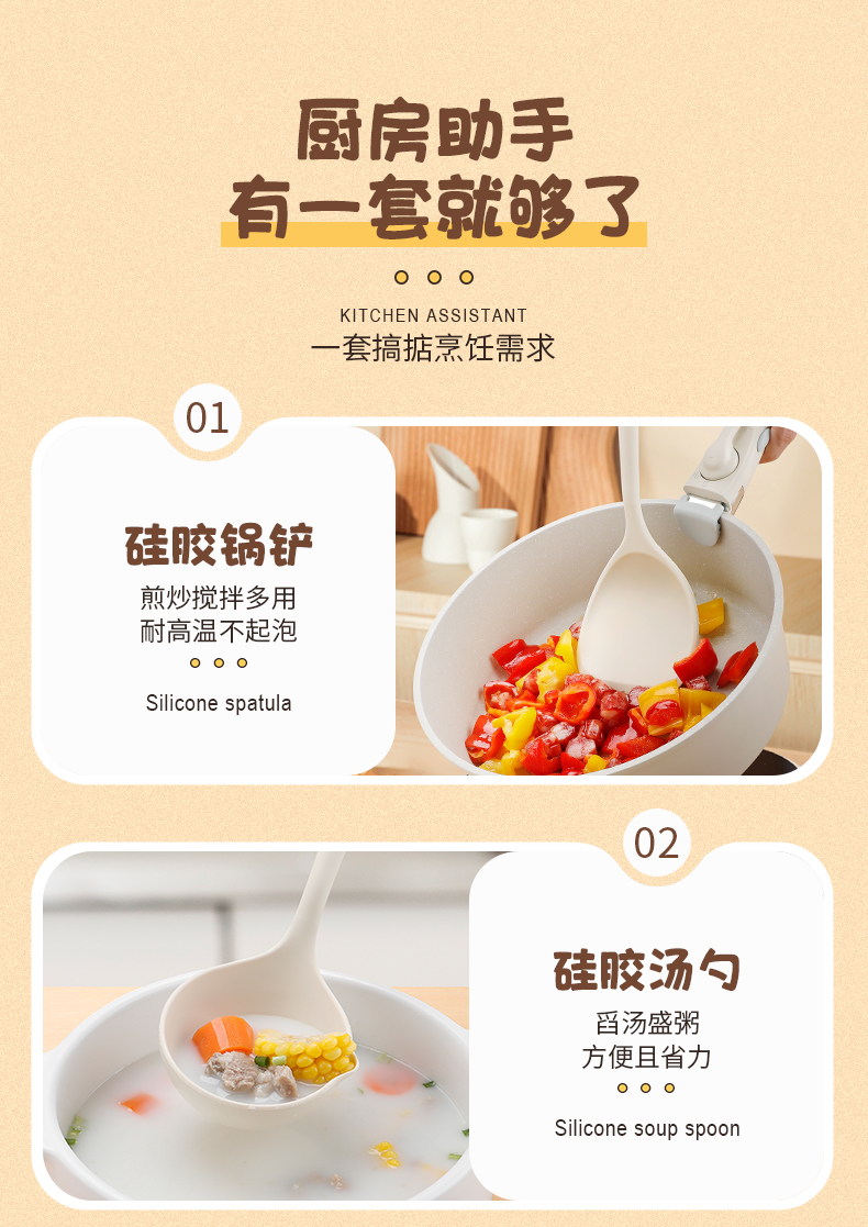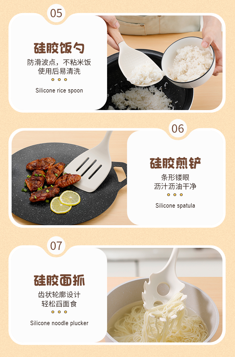 新しいセットのシリカゲル鍋シャベルスプーン台所用品調理器具食品級耐高温家庭用セット代理卸売り