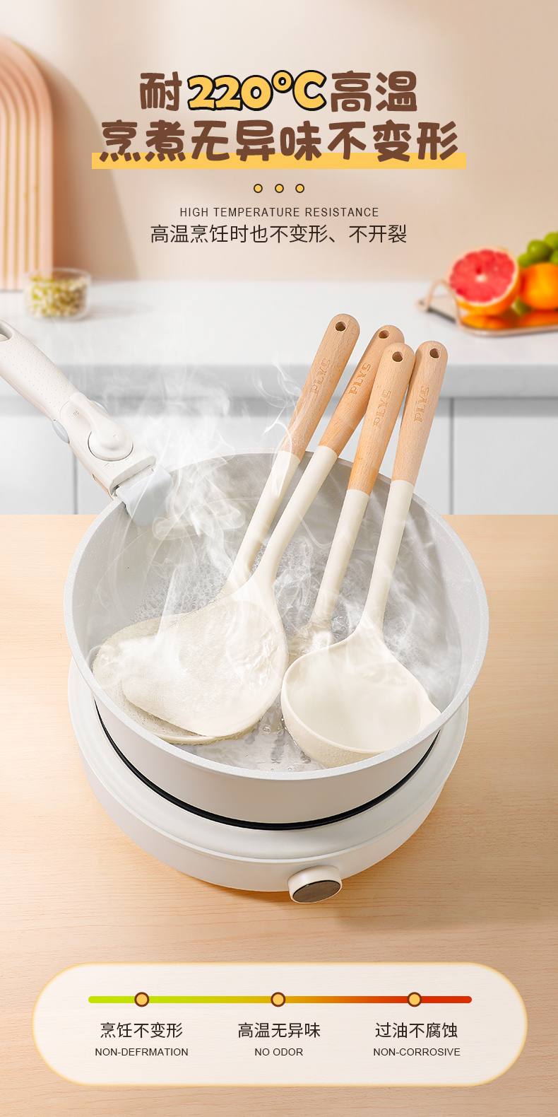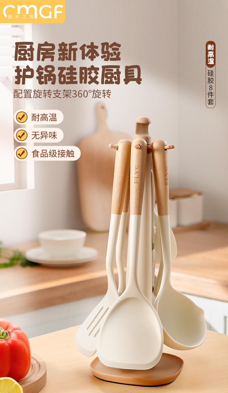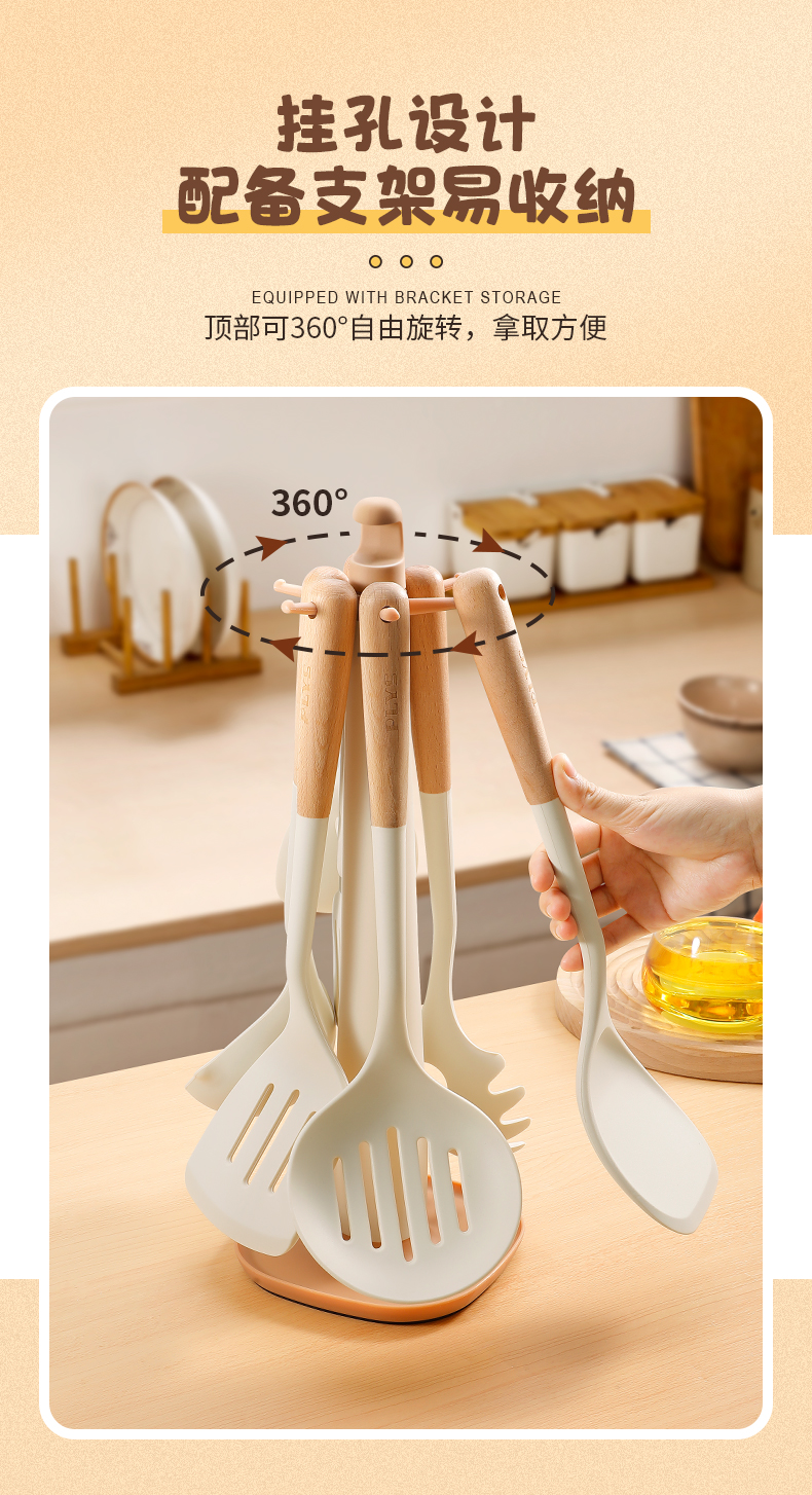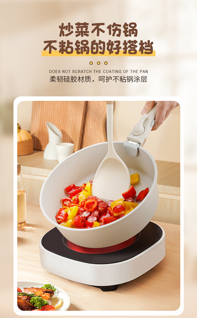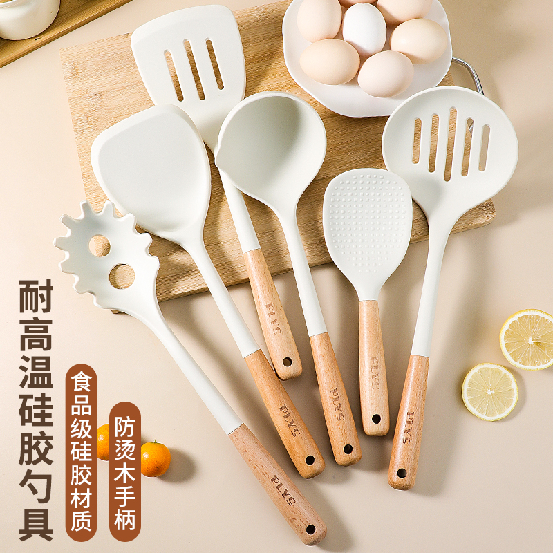 クロスボーダー木柄シリカゲル調理器具シリカゲルシャベルスプーン炒め料理鍋シャベルキッチンキッチンスプーン調理調理器具シャベルセット