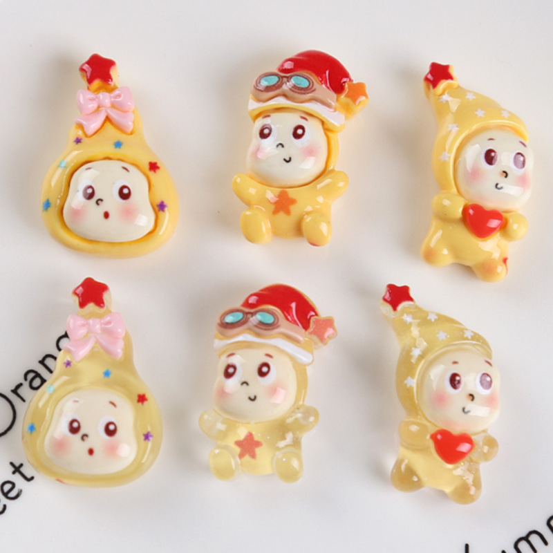 diy奶油胶星星人卡通可爱月亮 发饰发夹贴片手作自制挂件树脂配件