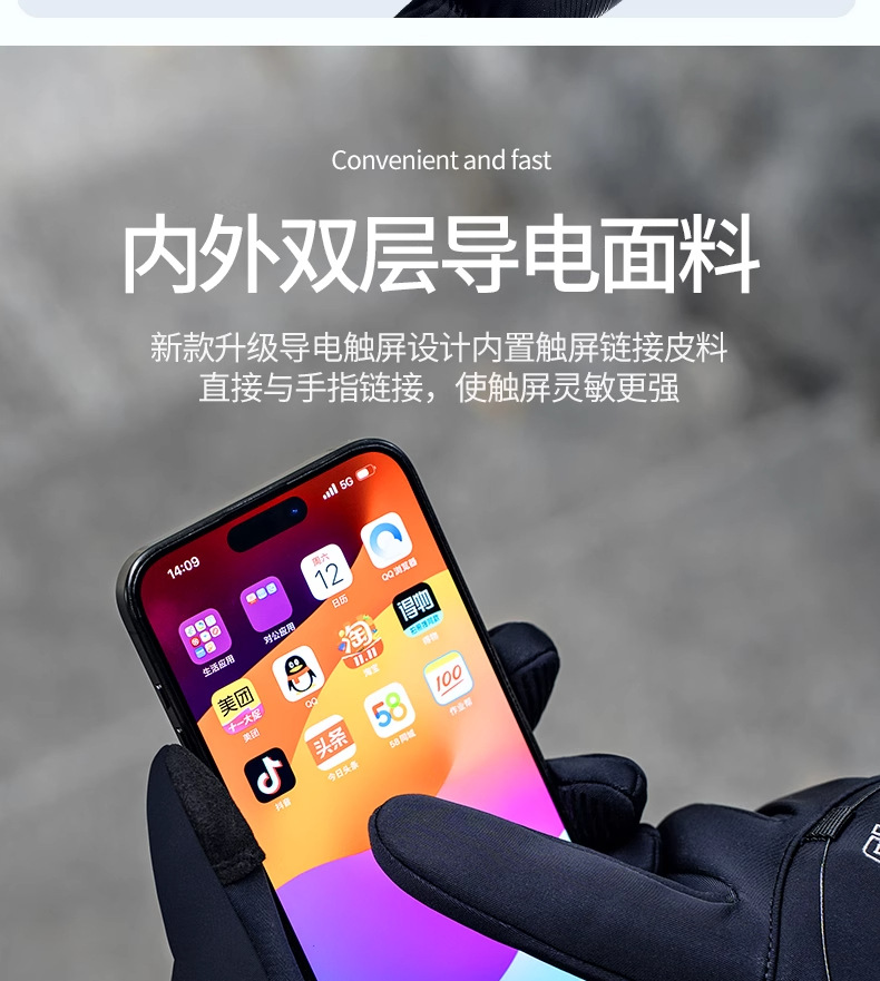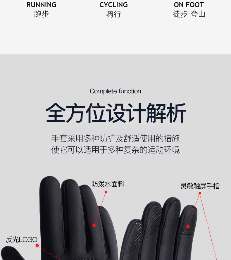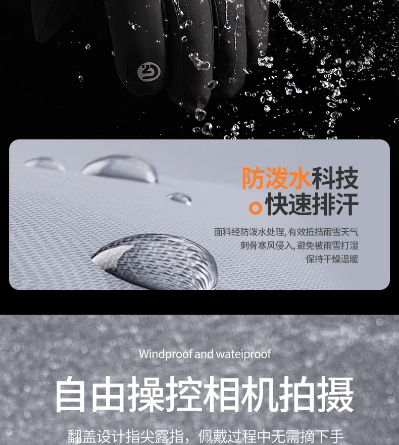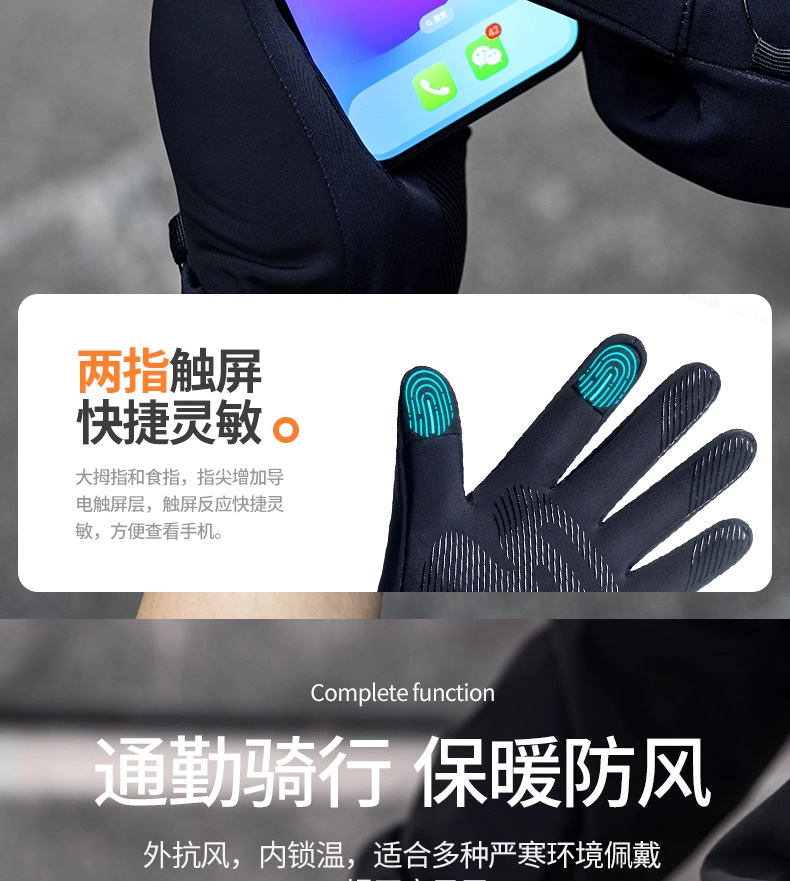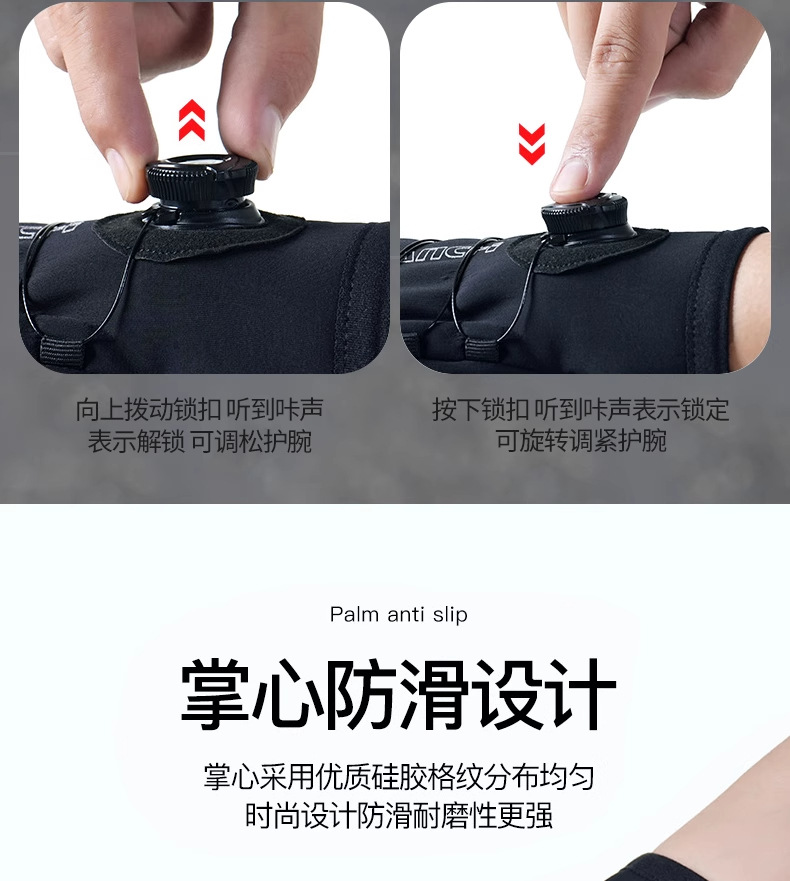 户外骑行手套 运动触屏手套加厚防滑防风防水旋钮调节运动手套