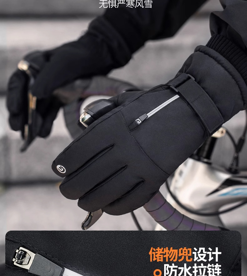 冬季保暖骑行手套男士加绒触屏防水防风摩托车健身户外运动手套冬