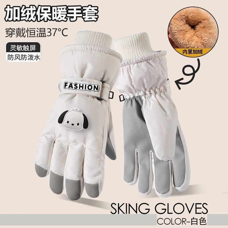 滑雪保暖手套女士秋冬季加绒加厚骑电车防风防水卡通可爱触屏手套