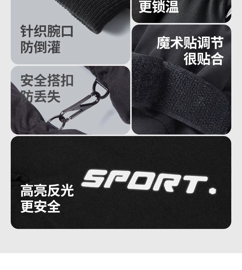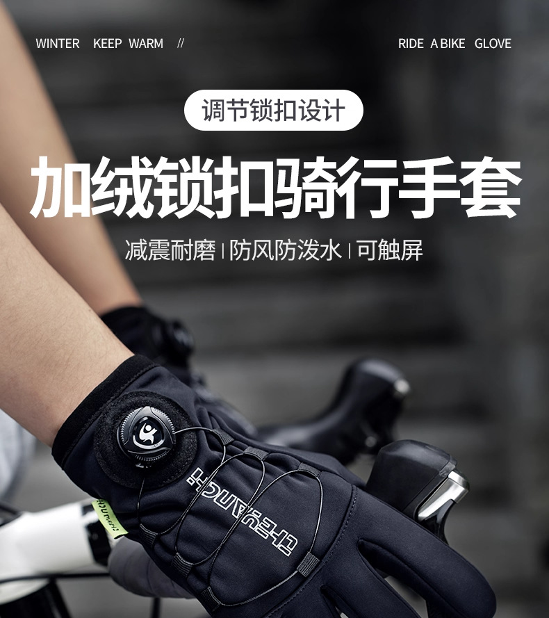 锁扣骑行手套男女冬季户外运动登山滑雪加绒保暖防风防水防滑触屏