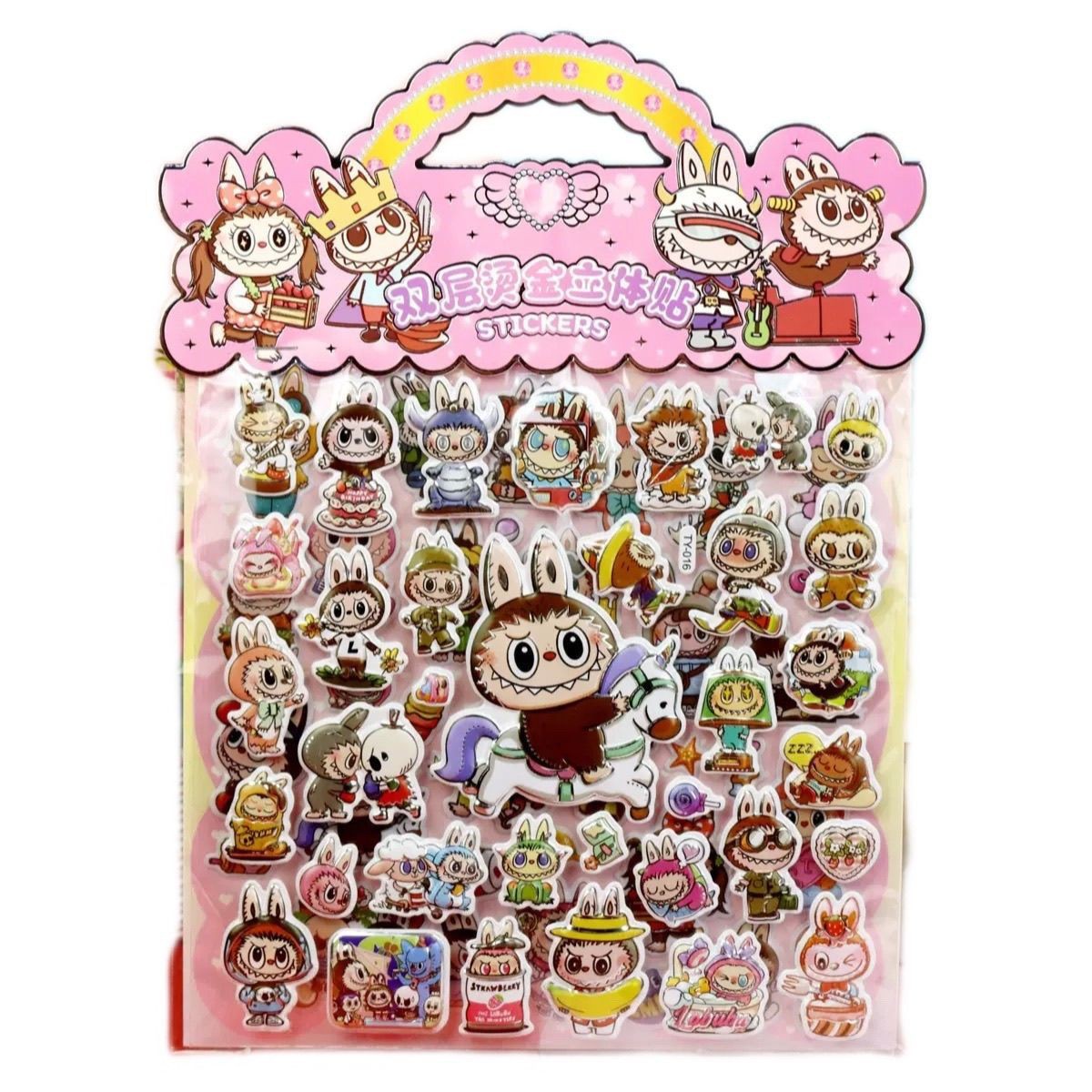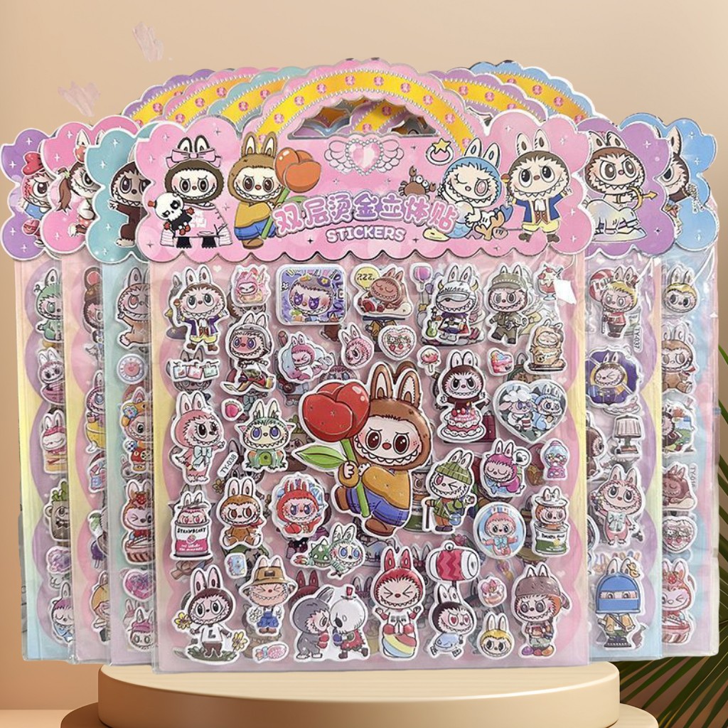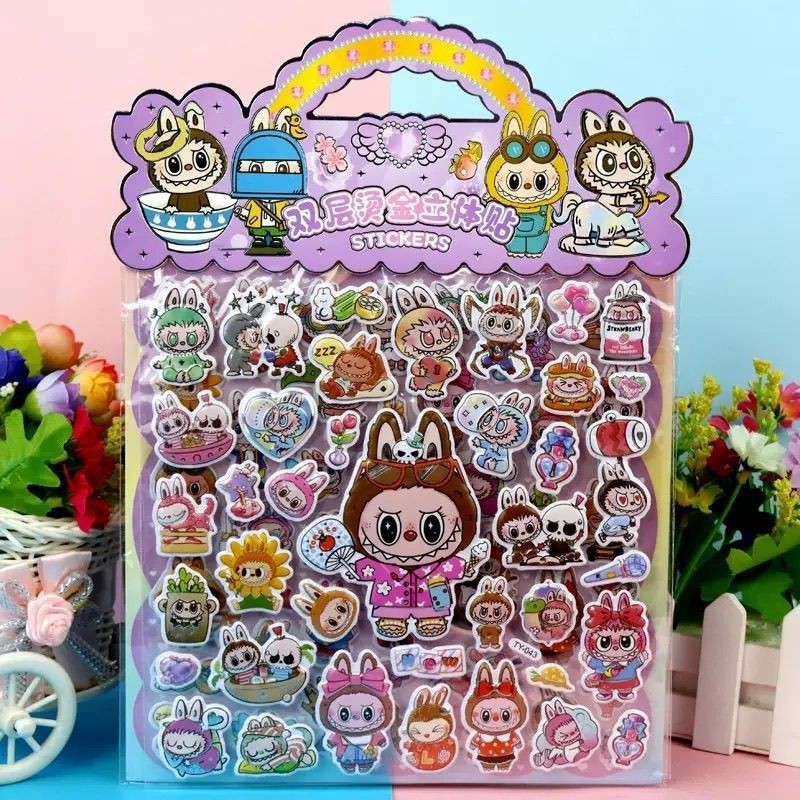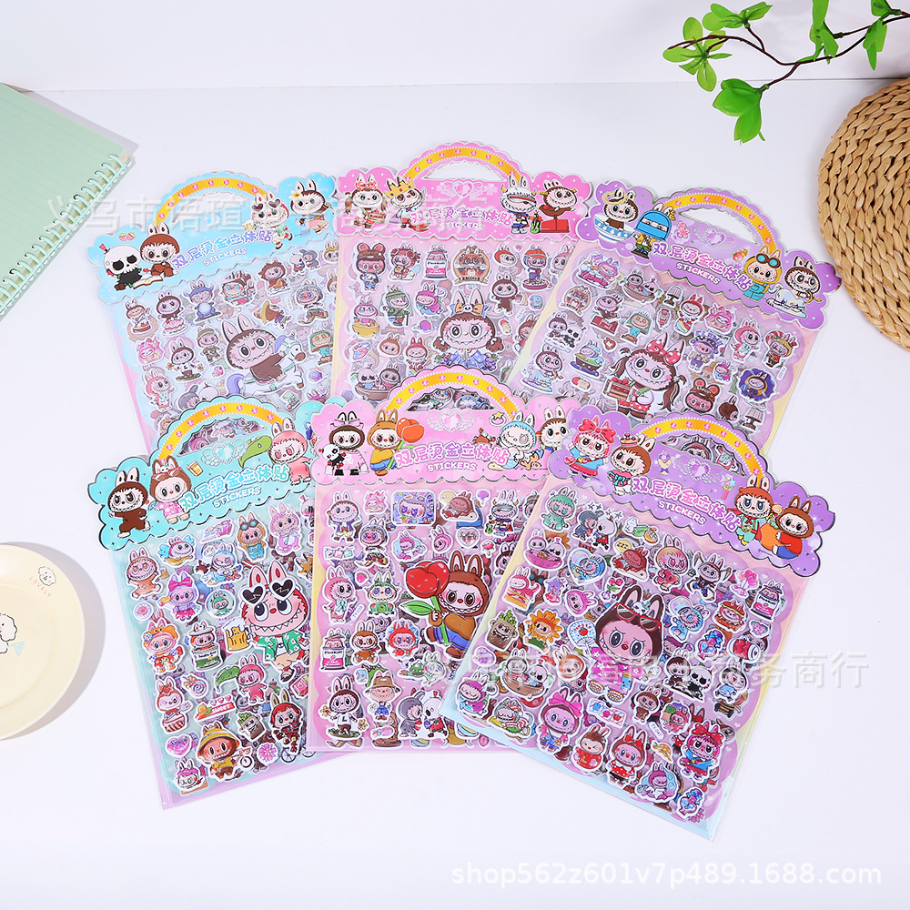 跨境热销卡通LABUBU双层烫金立体贴纸精灵天团3D立体泡泡贴粘贴画