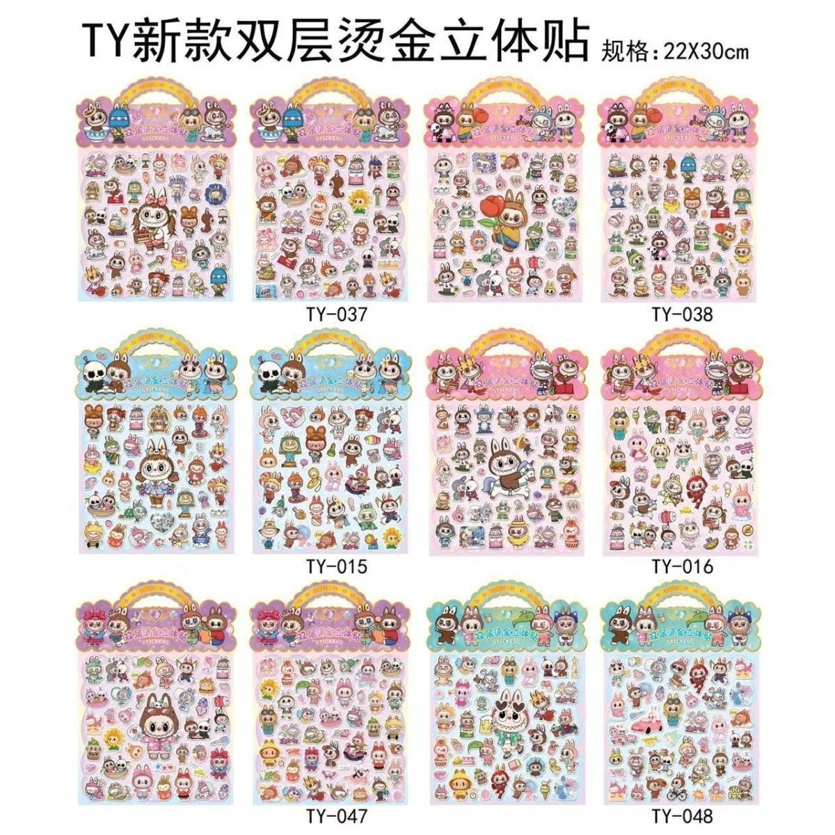 新款labubu双层泡泡贴画卡通拉布布3D立体烫金泡棉贴纸儿童奖励