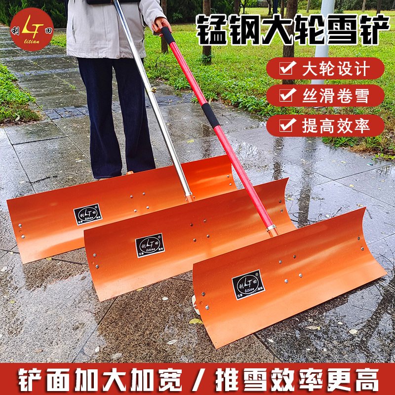 新型锰钢双轮推雪铲加厚雪铲畜牧养殖清粪铲粮冬季除冰铲雪特大号
