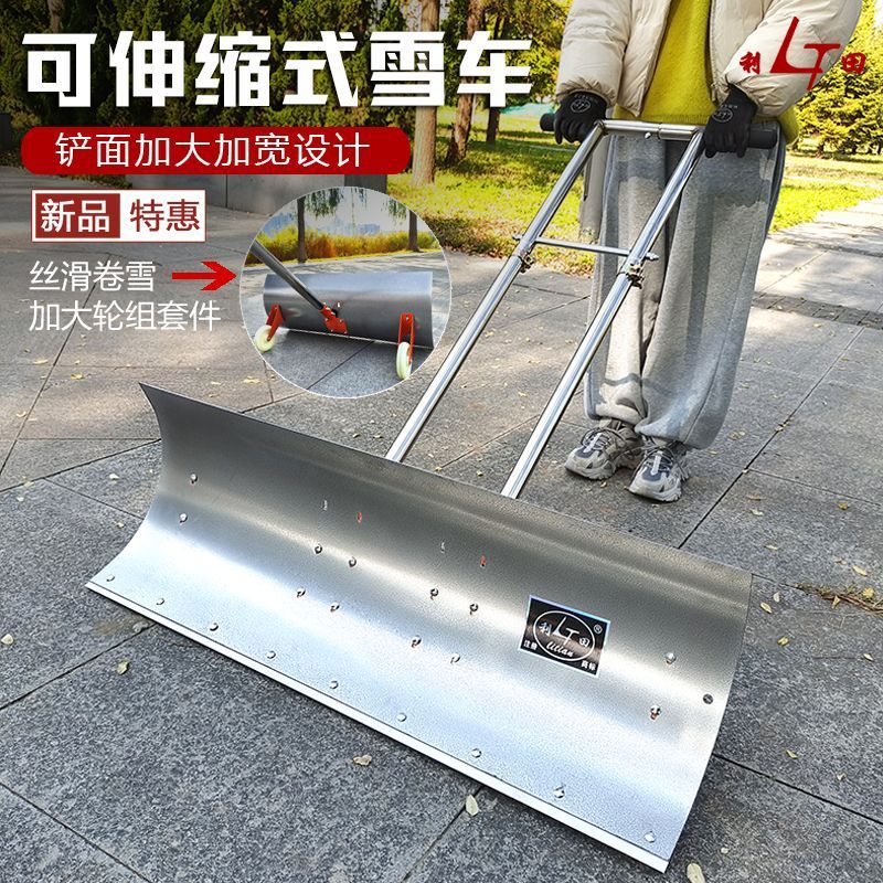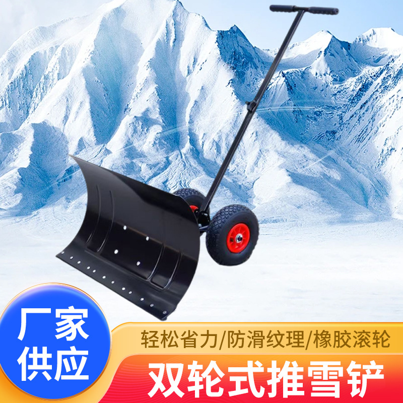 新款推雪铲带轮式推雪车地面推雪铲雪神器庭院清雪工具带轱辘助力