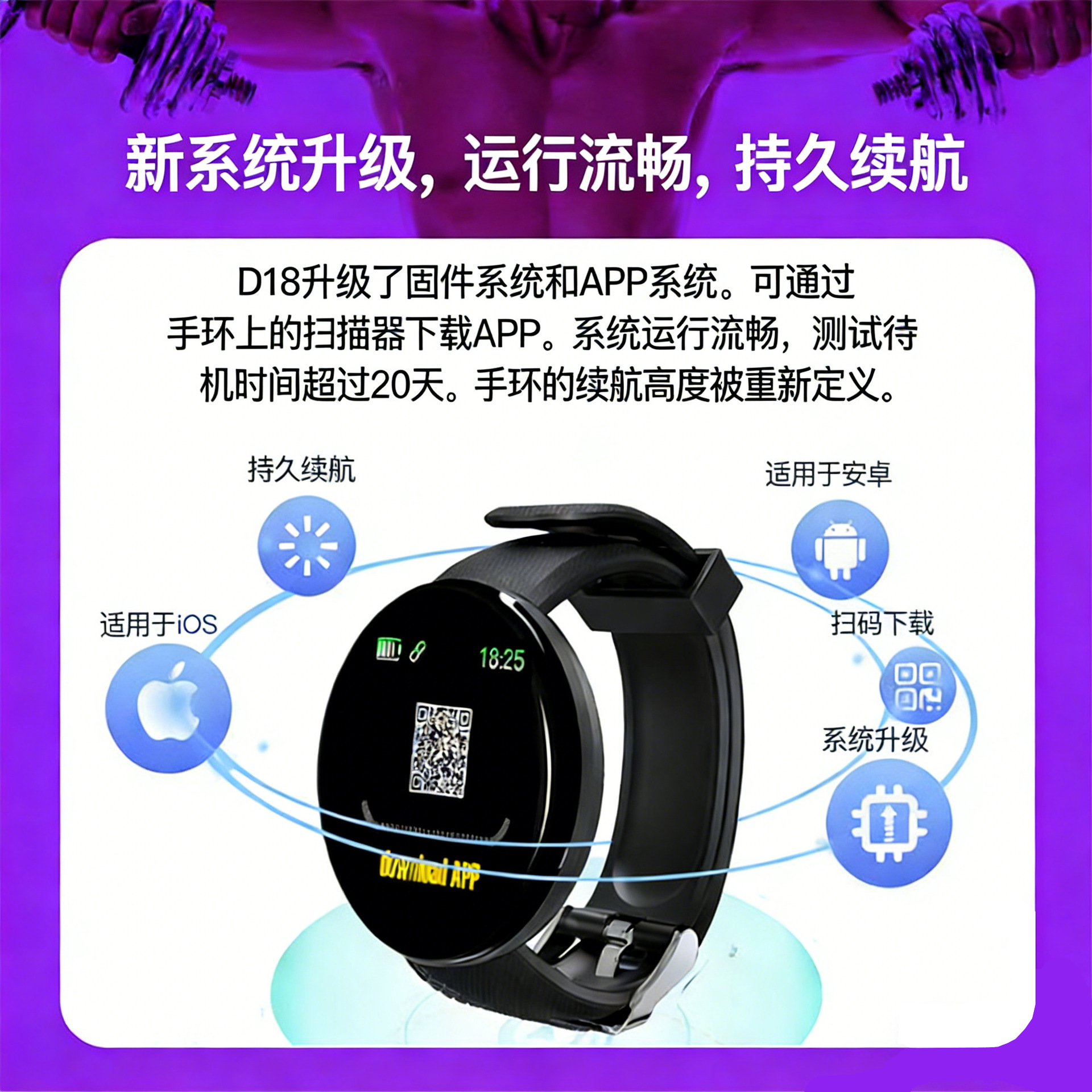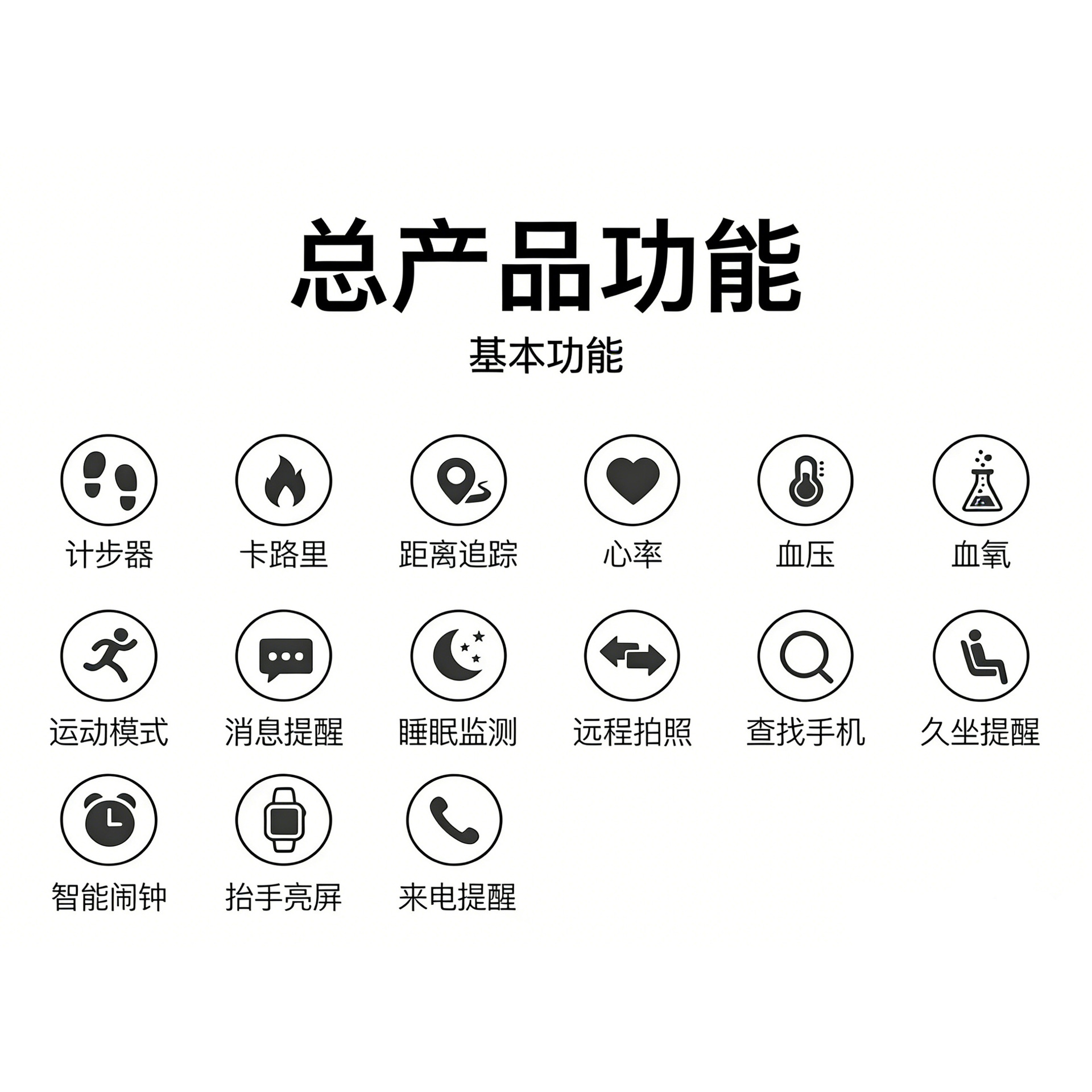 功能 计步,心率监测,睡眠监测,血氧检测,信息推送