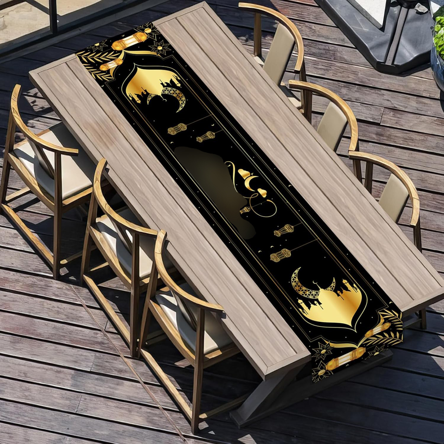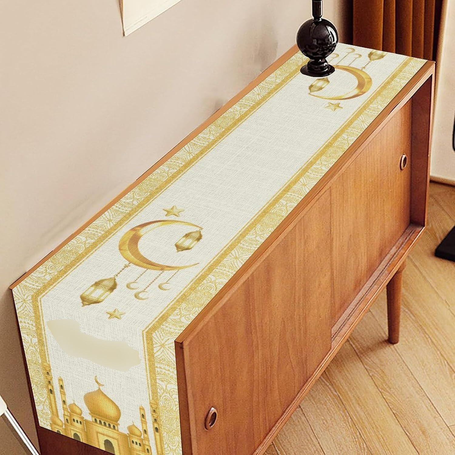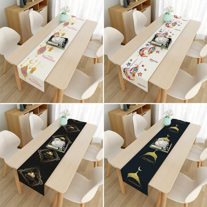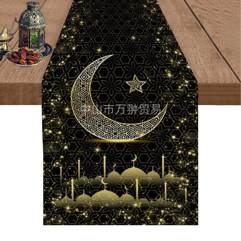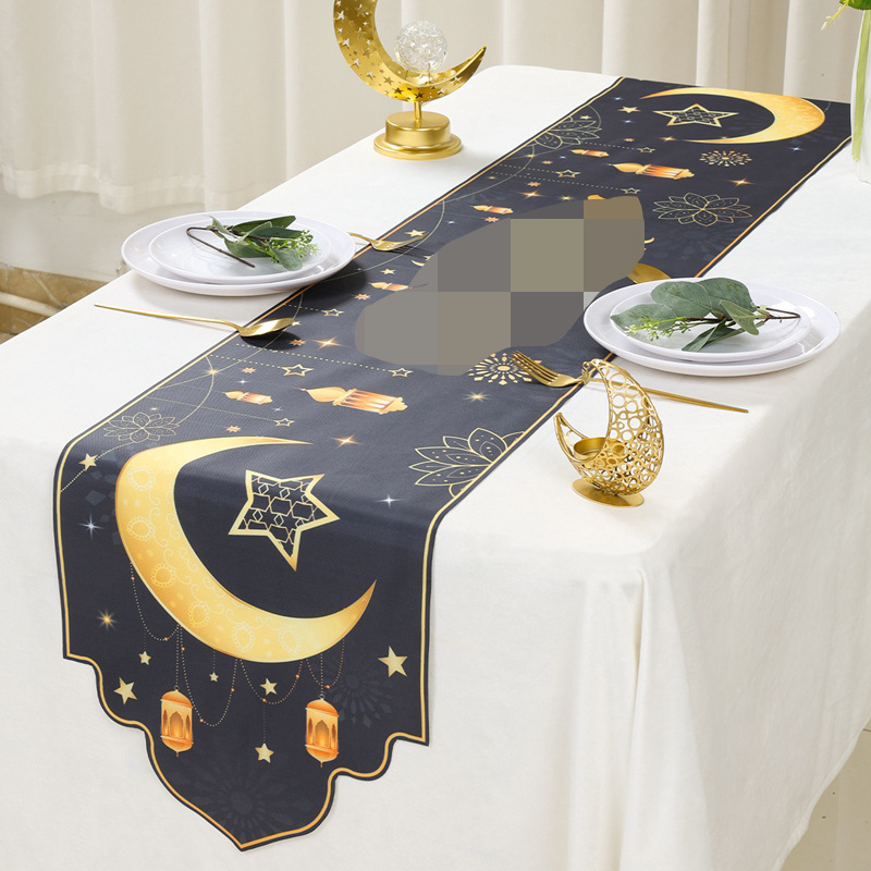 月亮节装饰桌旗中东节日月亮灯笼印花涤纶桌旗家居餐桌装饰品桌旗