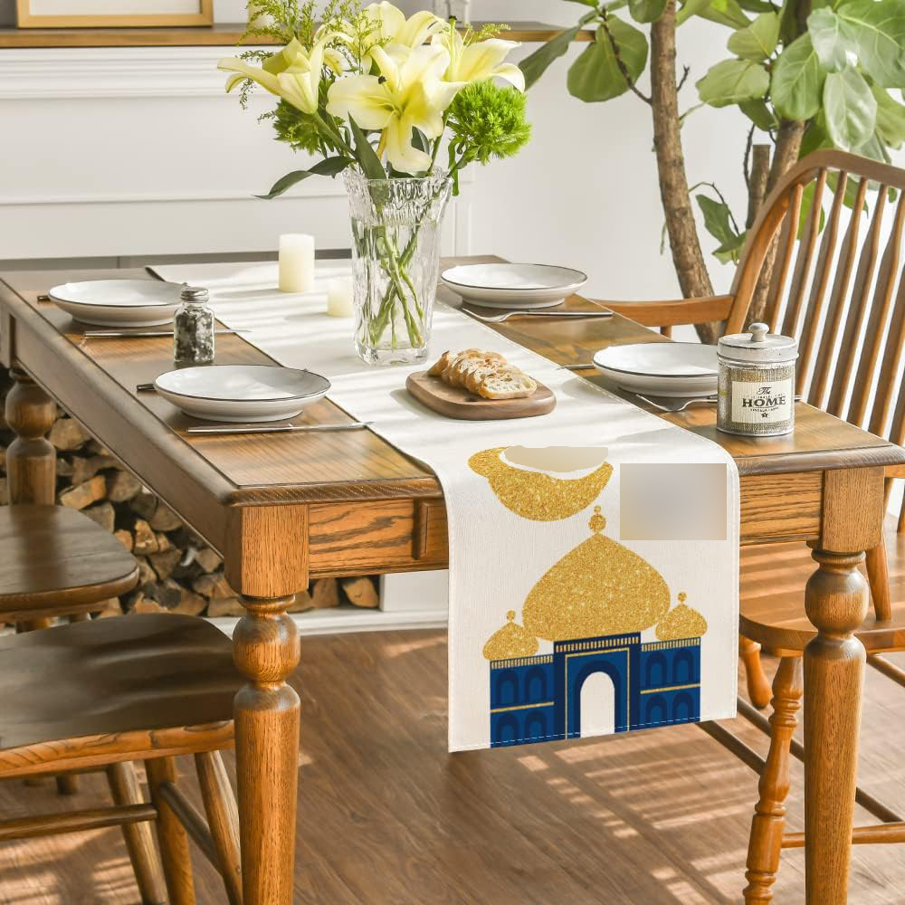 月亮节装饰桌旗中东节日月亮城堡印花涤纶桌布异型桌旗家居装饰品