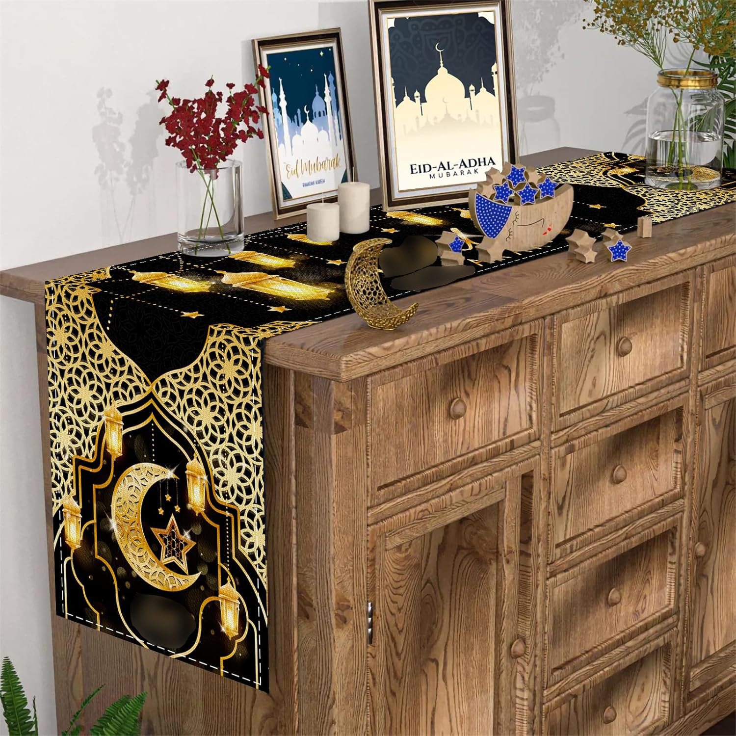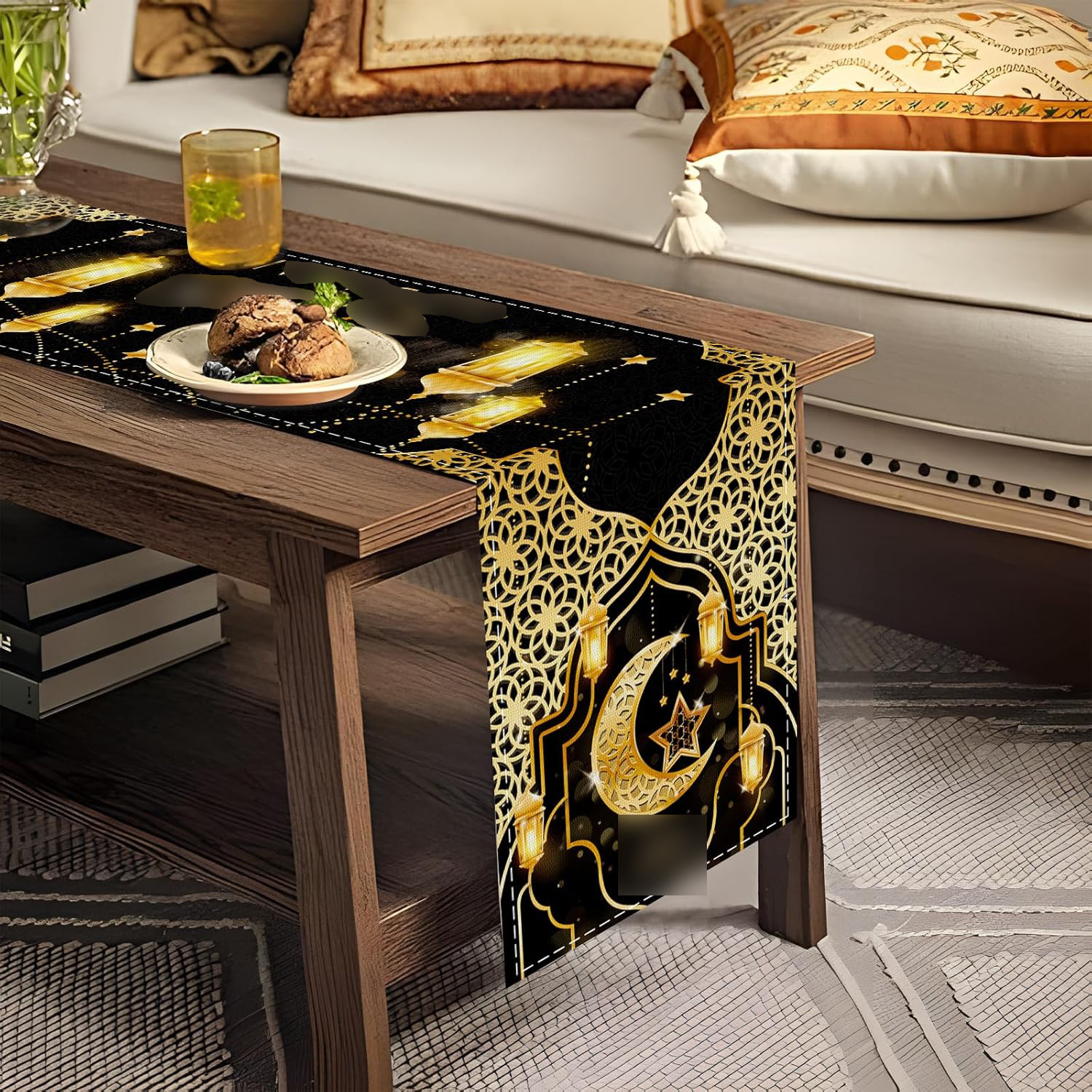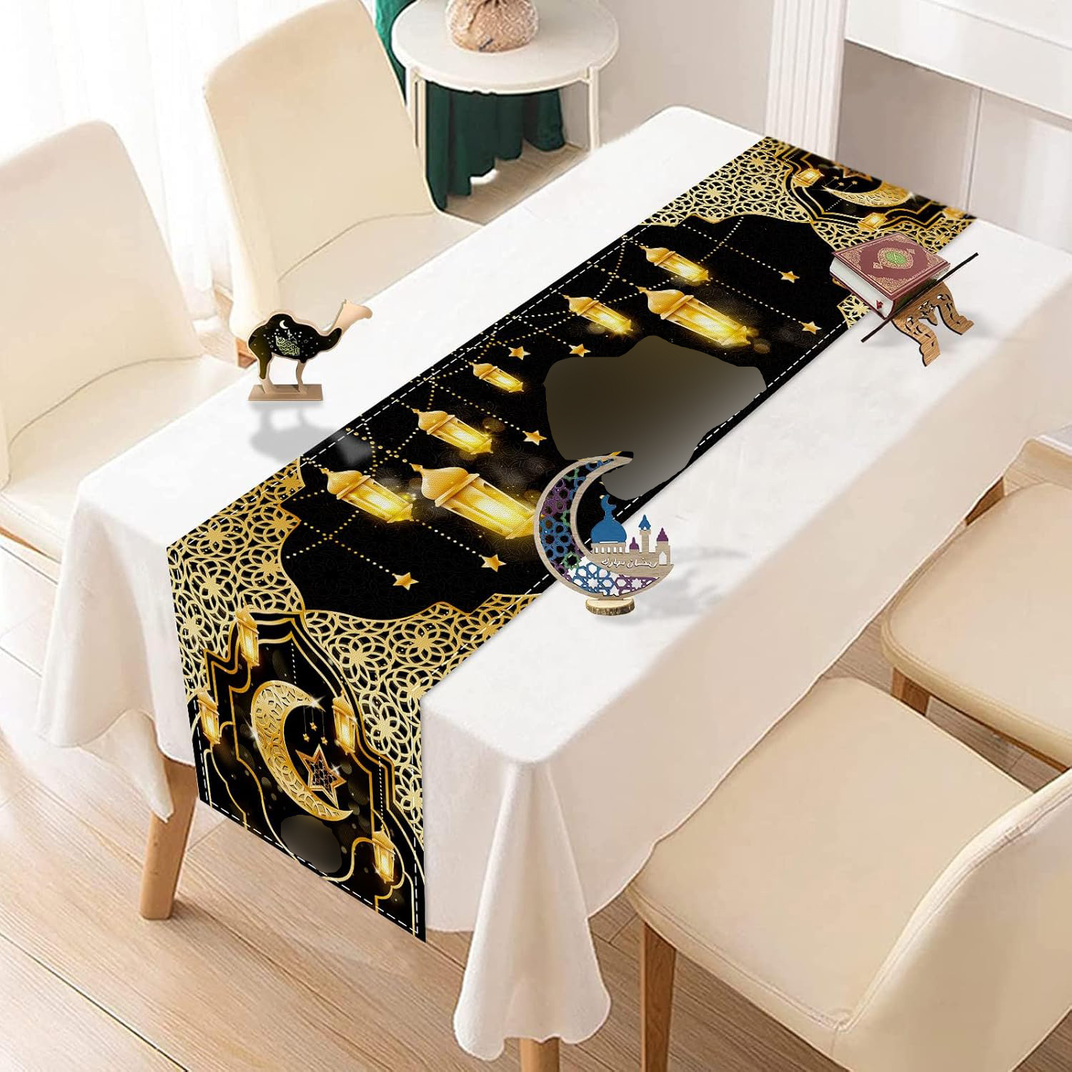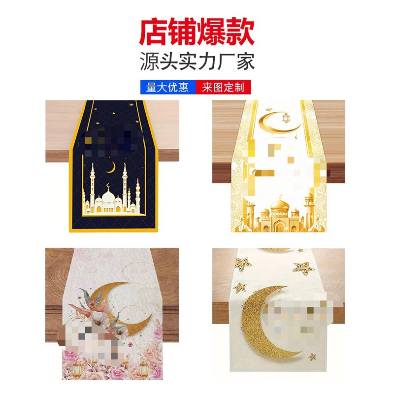 中东月亮节桌旗带月亮灯笼图案节日装饰桌布支持来图定 制
