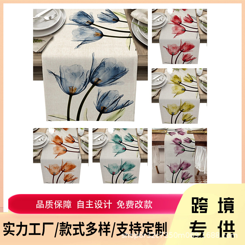 国境を越えた花チューリップ亜麻テーブルクロステーブルクロス家庭布芸食卓客間カウンターテーブル旗工場直供