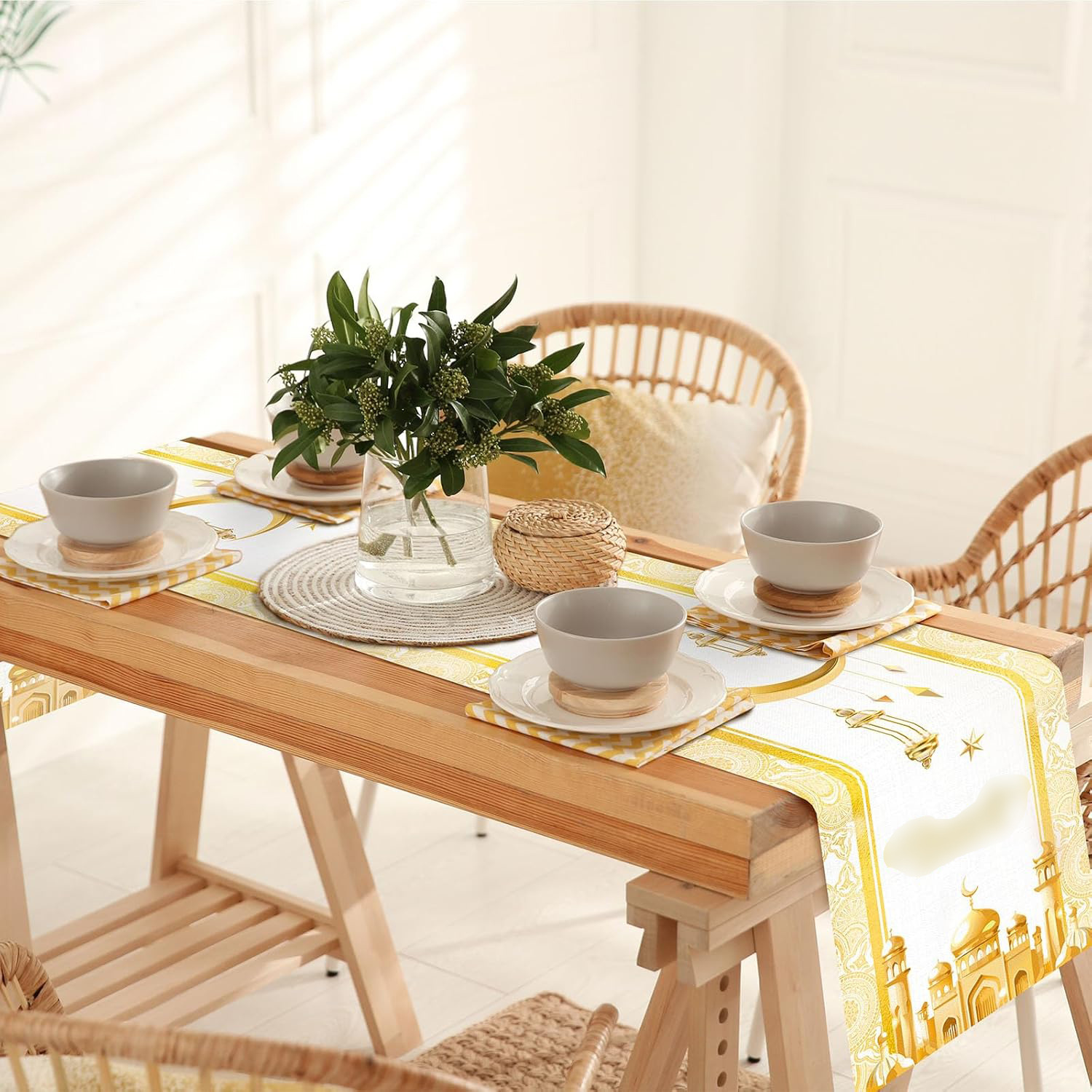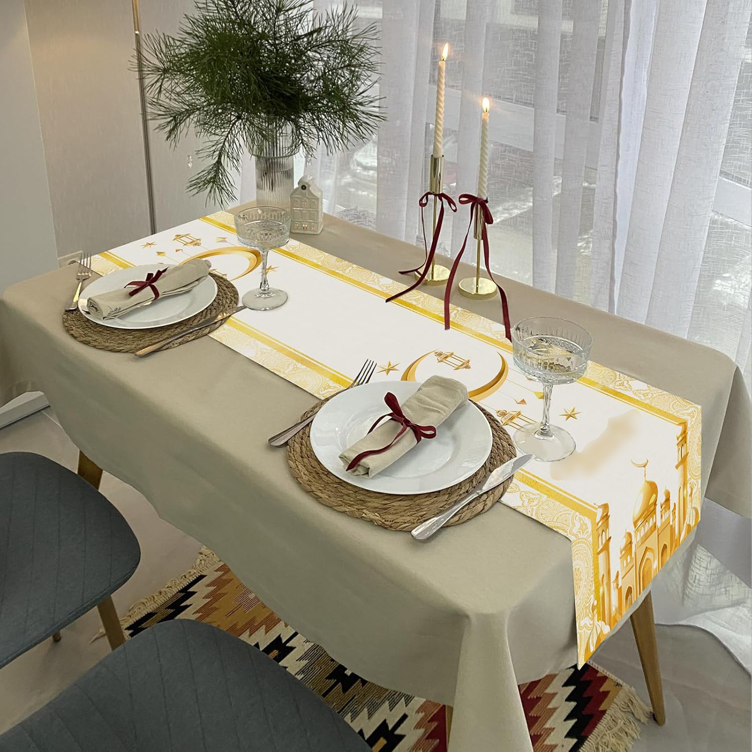 跨境新款桌旗创意梦幻月亮中东民族节日装饰餐厅节日氛围感餐桌桌