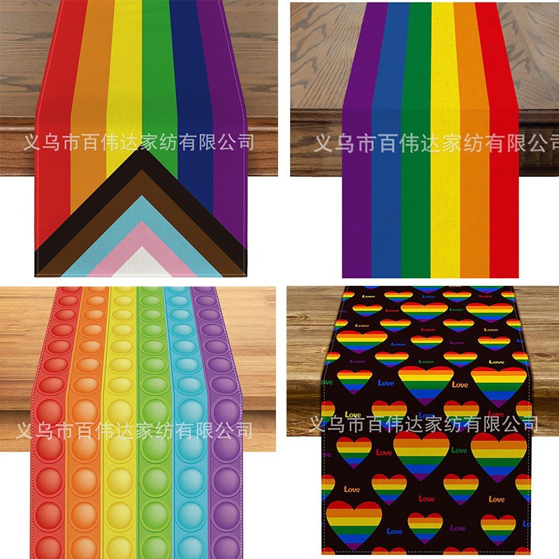 アマゾンクロスボーダーレインボーリネンテーブル旗ダイニングテーブル布テーブルマット茶旗テーブル布パーティー装飾