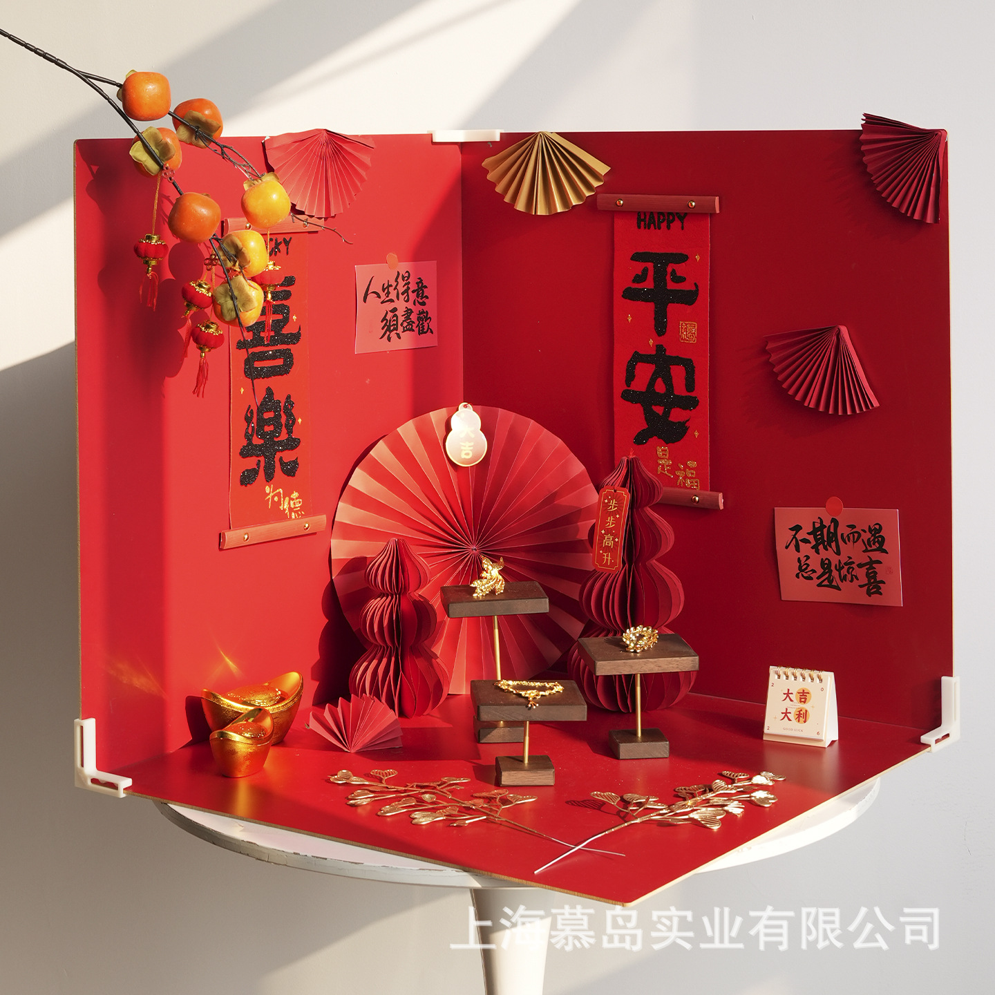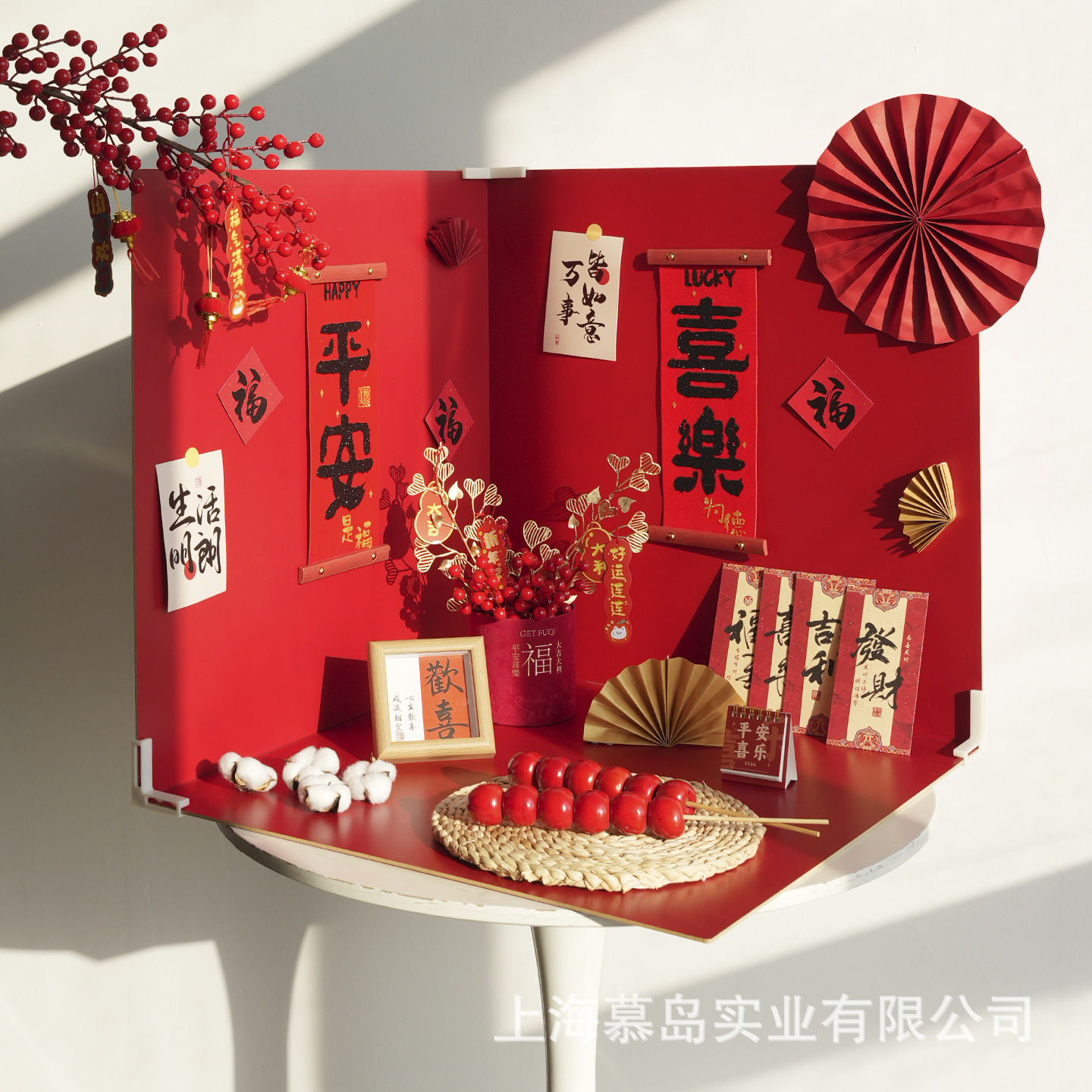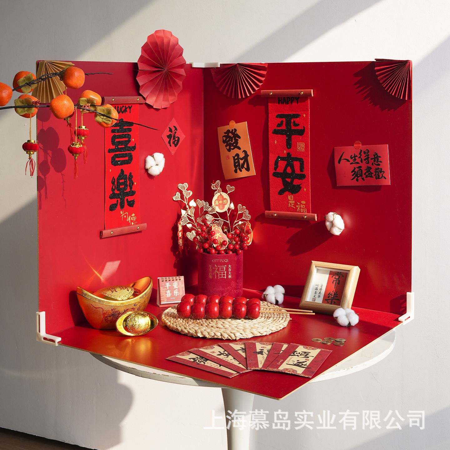 颜色 60*60正面中国红/反面米白三张装(不含任何摆件),60*60三张红白背景板+【平安喜乐】17件套,60*60三张红白背景板+【大吉大利】19件装,60*60三张红白背景板+【恭喜发财】17件装,60*60三张红白背景板+【柿柿如意】16件装,小福桶套餐,素坯花瓶配腊梅套餐,小福桶-12*12cm,素胚花瓶,大号新年折纸葫芦,中号新年折纸葫芦,金元宝2个,金色吉祥扇,七果柿柿如意,红色大号发财果,白色腊梅+红色腊梅,红色小发财果10支,金色爱心草2支,冰糖葫芦2个,平安喜乐对联,红金折扇6件装,红色扇花6件装,小福字6张,复古红包6张,知足常乐卡片30张,大红小灯笼10个,白色棉花头4朵,仿真五帝钱10枚,迷你日历(大吉大利),迷你日历(平安喜乐),四寸相框(常乐),四寸相框(欢喜),玉米皮垫子-30cm,挂件吊牌40件