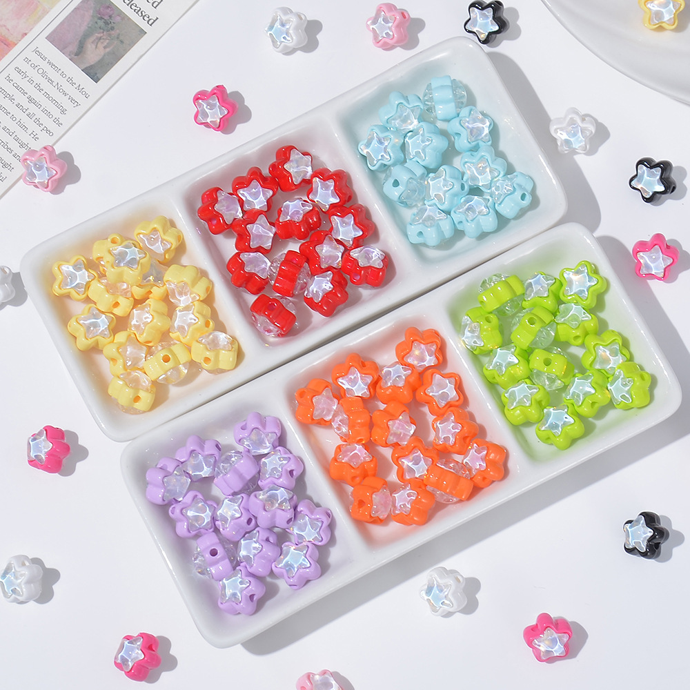 彩色烤漆幸运星印花五角星串珠 手工diy材料手机链包挂散珠子配件
