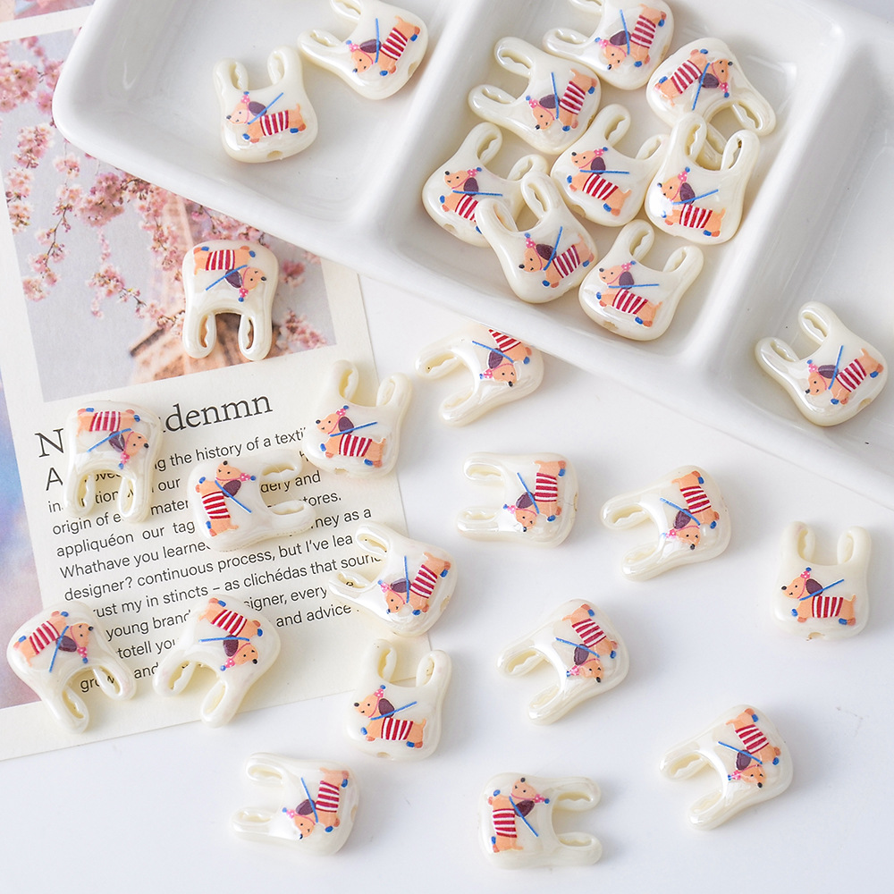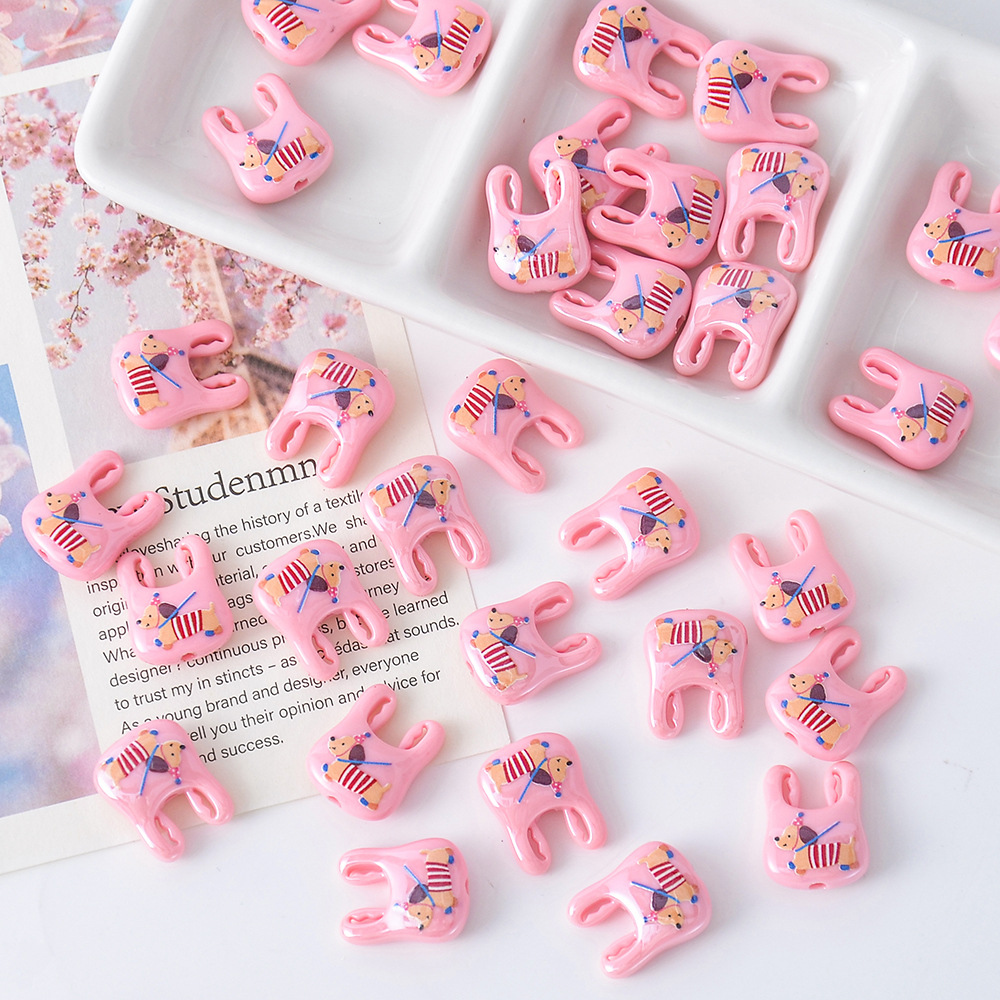 亚克力卡通小熊胖星星通孔五角星串珠 diy手机链头绳包挂饰品配件
