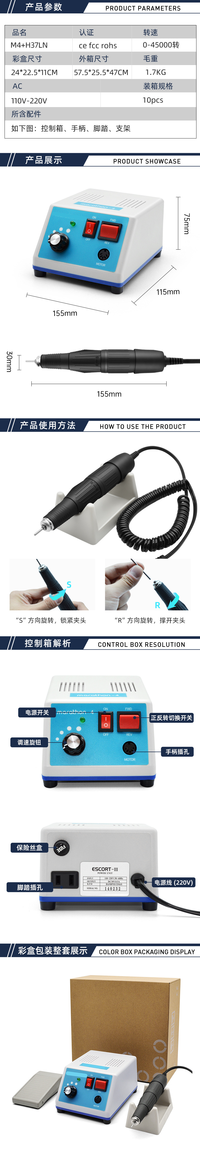 跨境专供MARATHON美甲打磨机专业卸指甲M4牙机雕刻机专用跨境热销