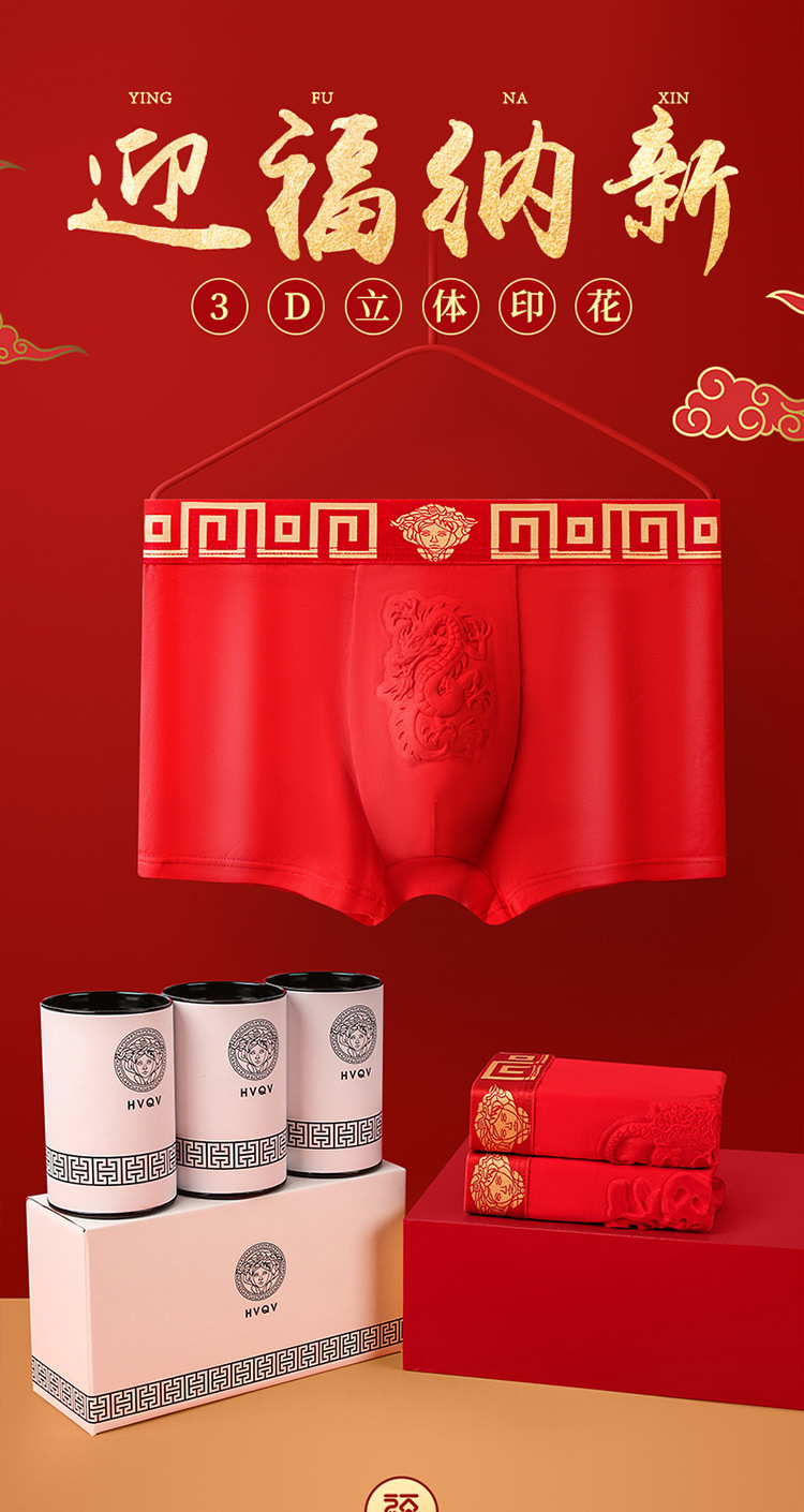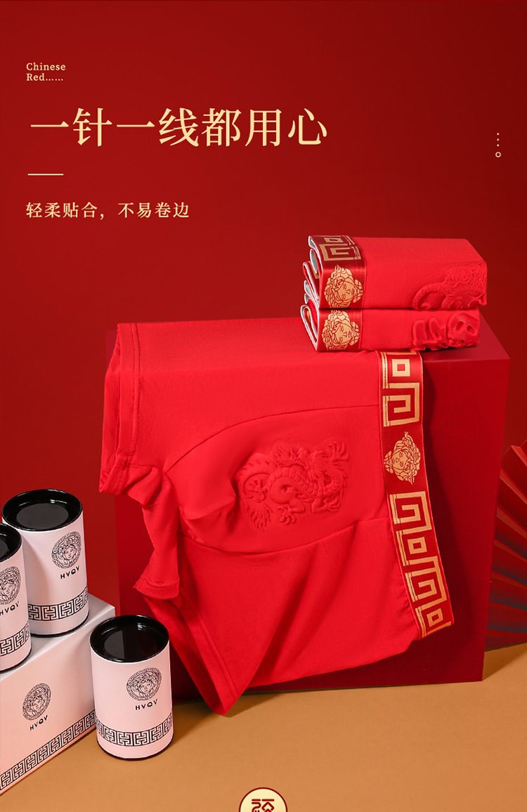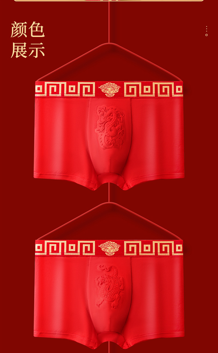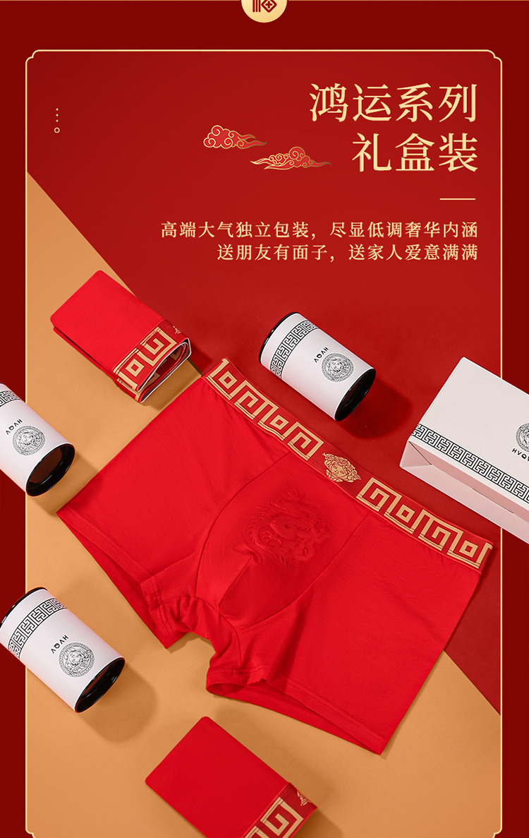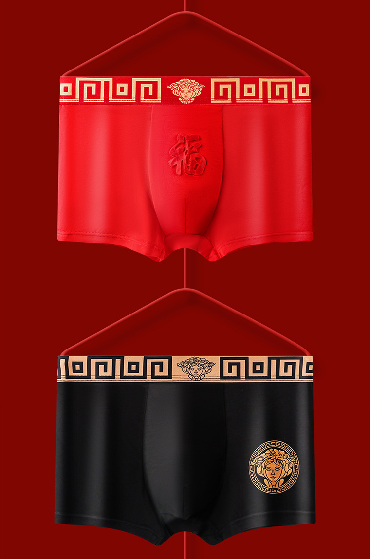 磁石温变本命年男士内裤大红色结婚平角裤纯棉莫代尔四角裤男款