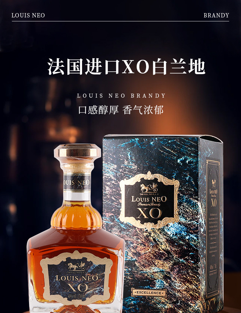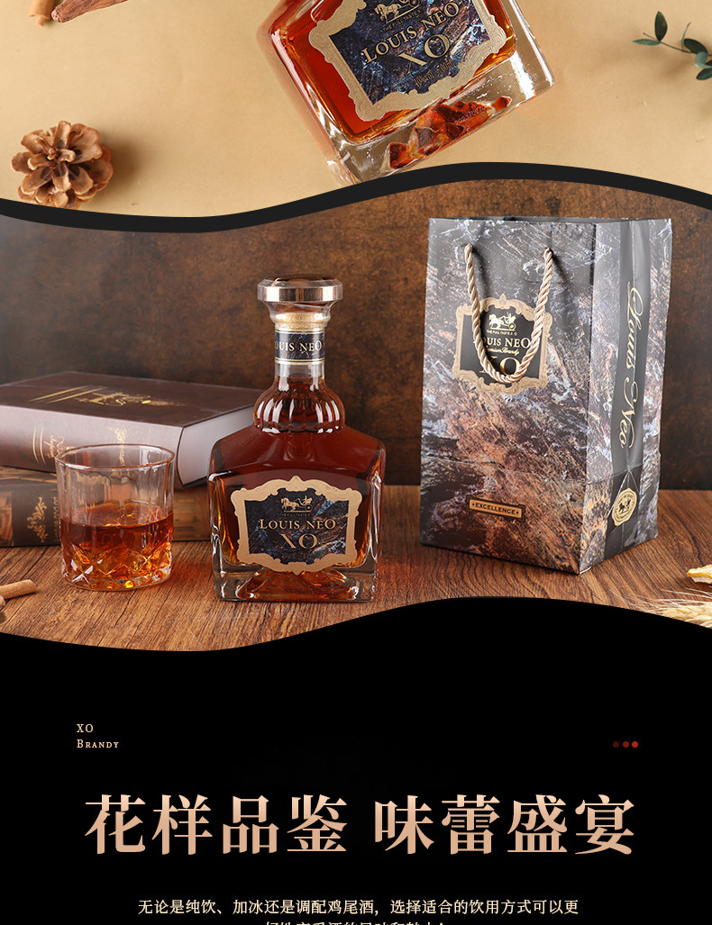 法国进口洋酒XO白兰地礼盒套装厂家货源酒吧夜场包邮批发一件代发