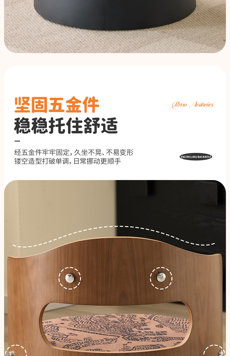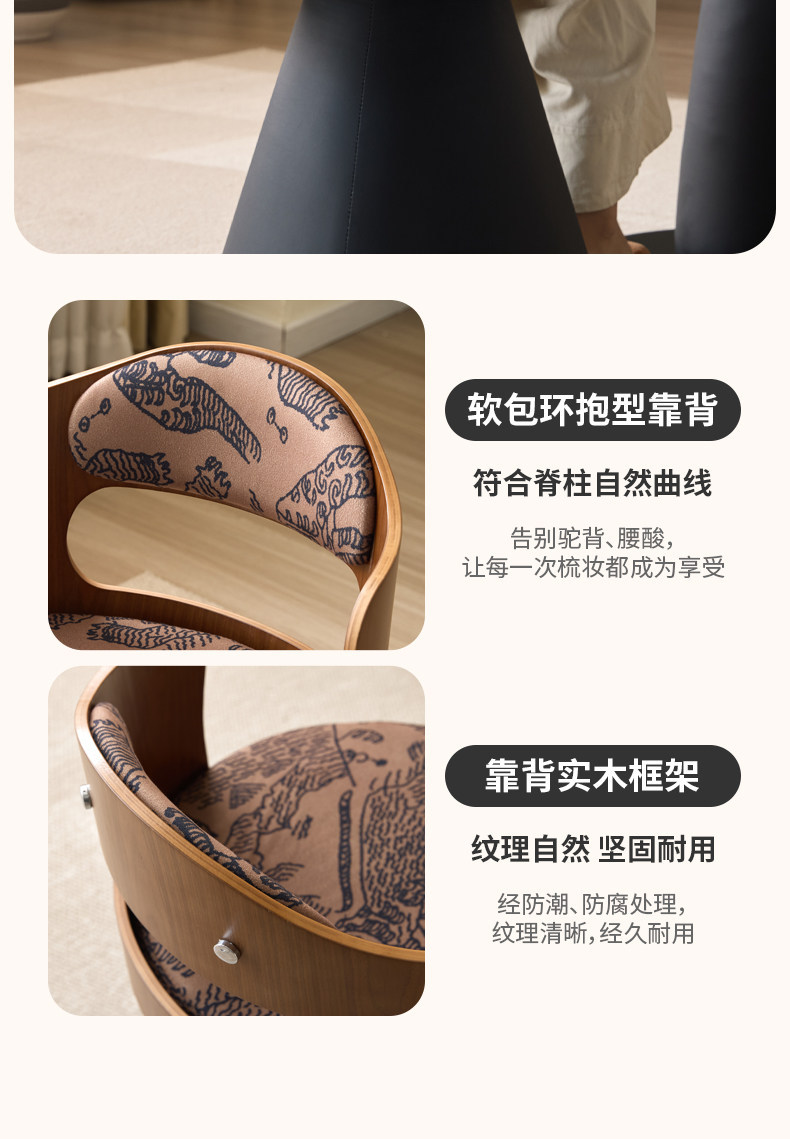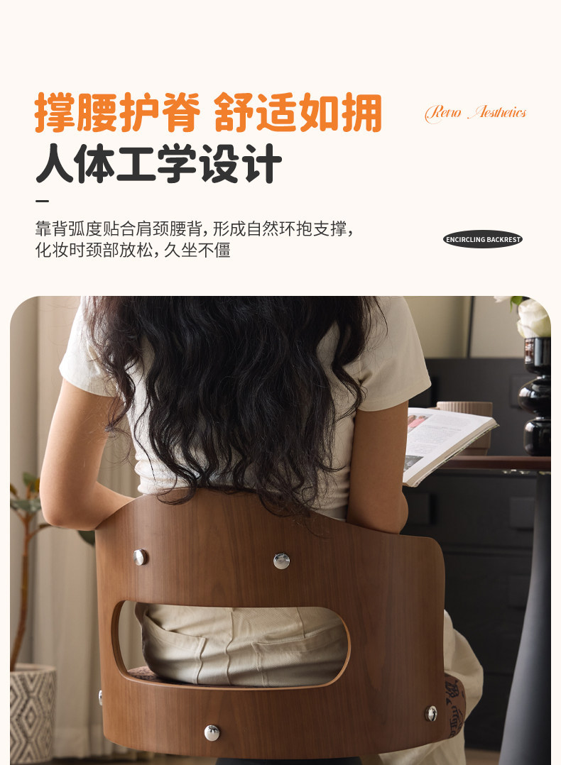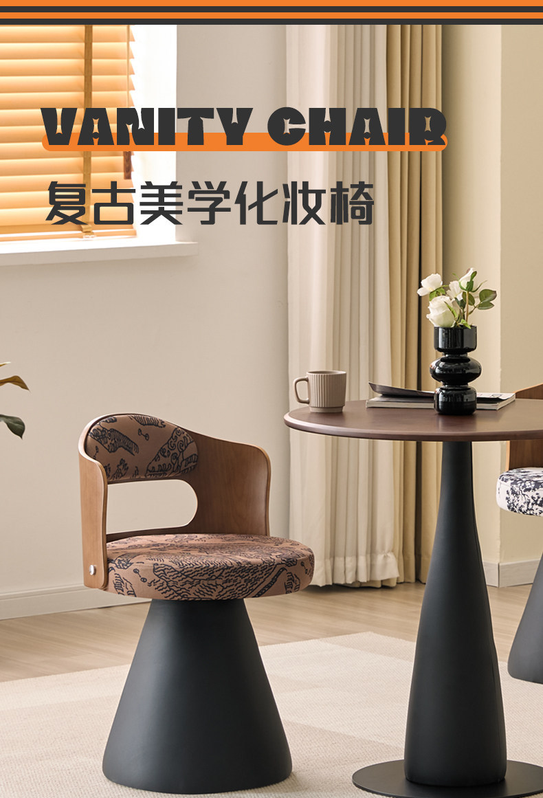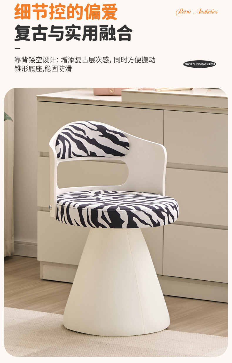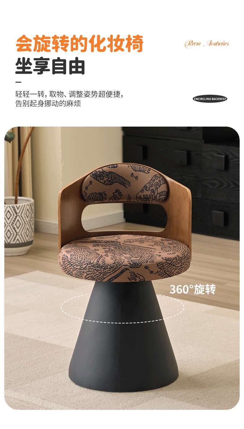 复古风梳妆台椅子可旋转化妆椅女生卧室家用梳妆凳中古休闲靠背椅